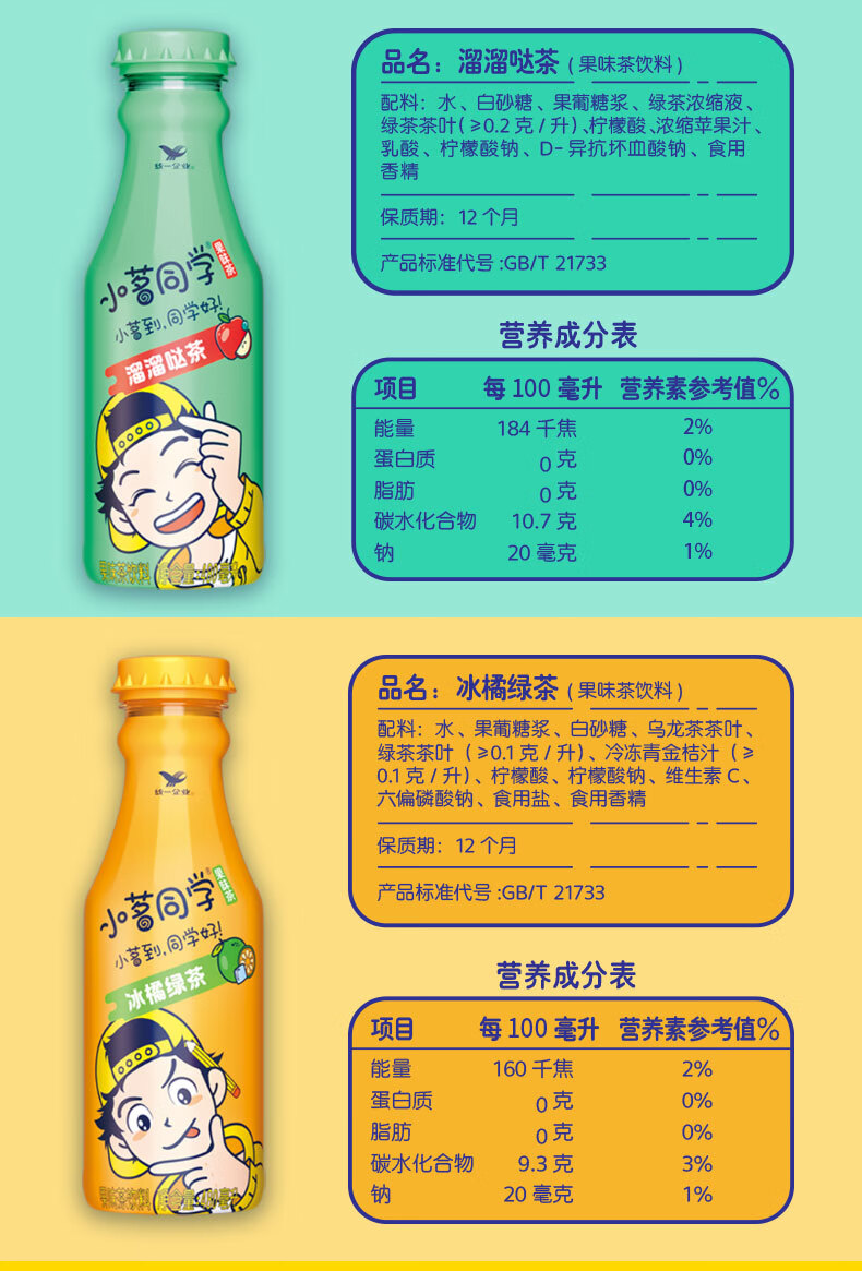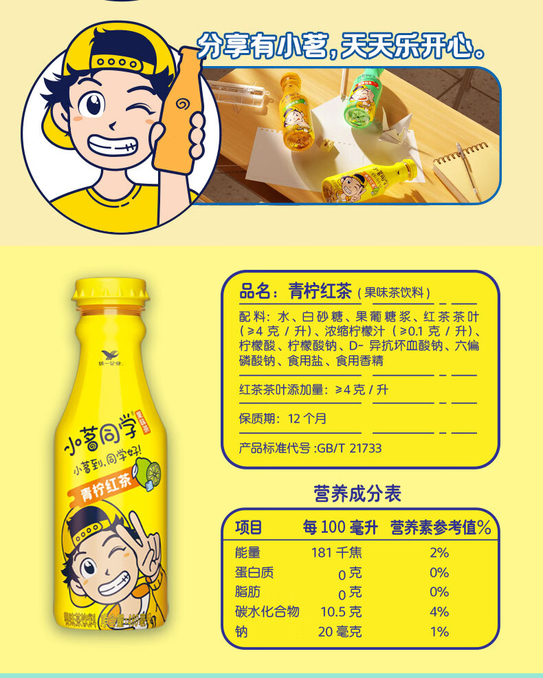 【统一】小茗同学茶饮料(青柠/冰橘/溜溜哒) 480ml/瓶 15瓶/箱(12个月)