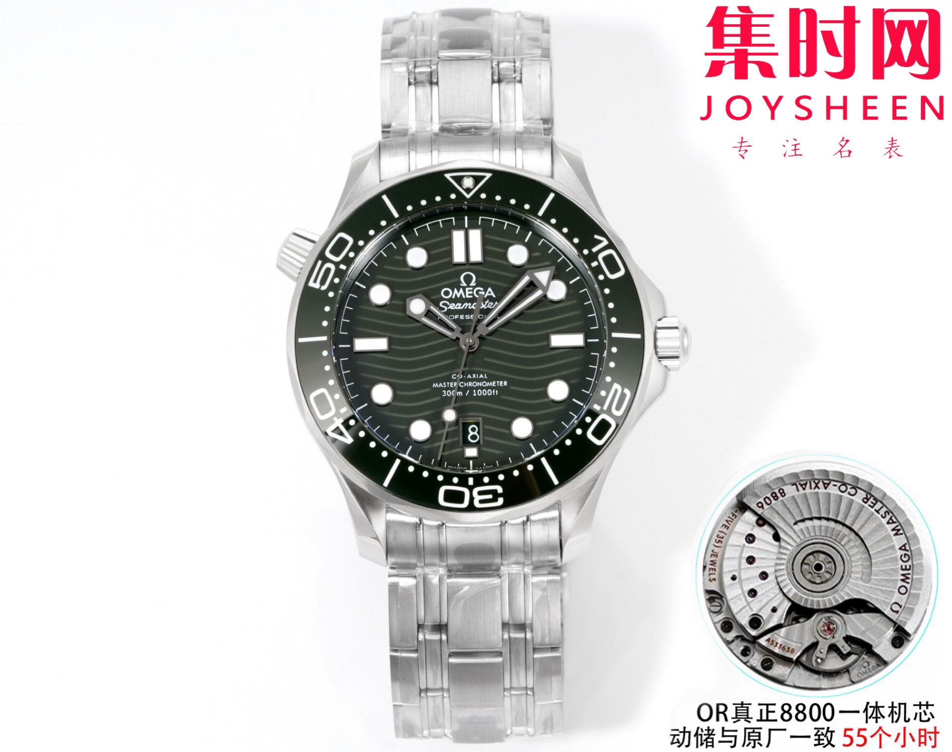 OR欧米茄海马300米系列 绿海马 墨绿海马 8800一体机 男士腕表 表径42mm 让您有更好的选择,唯一原装开模对版的全新海马300米潜水表系列,每个配件几乎全新开模对版zui新专柜的设计,耗时三年半研究开发出真正的OR定制Cal.8800一体自动上链机械机芯。