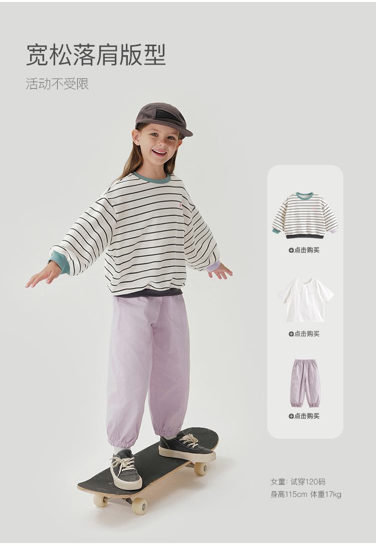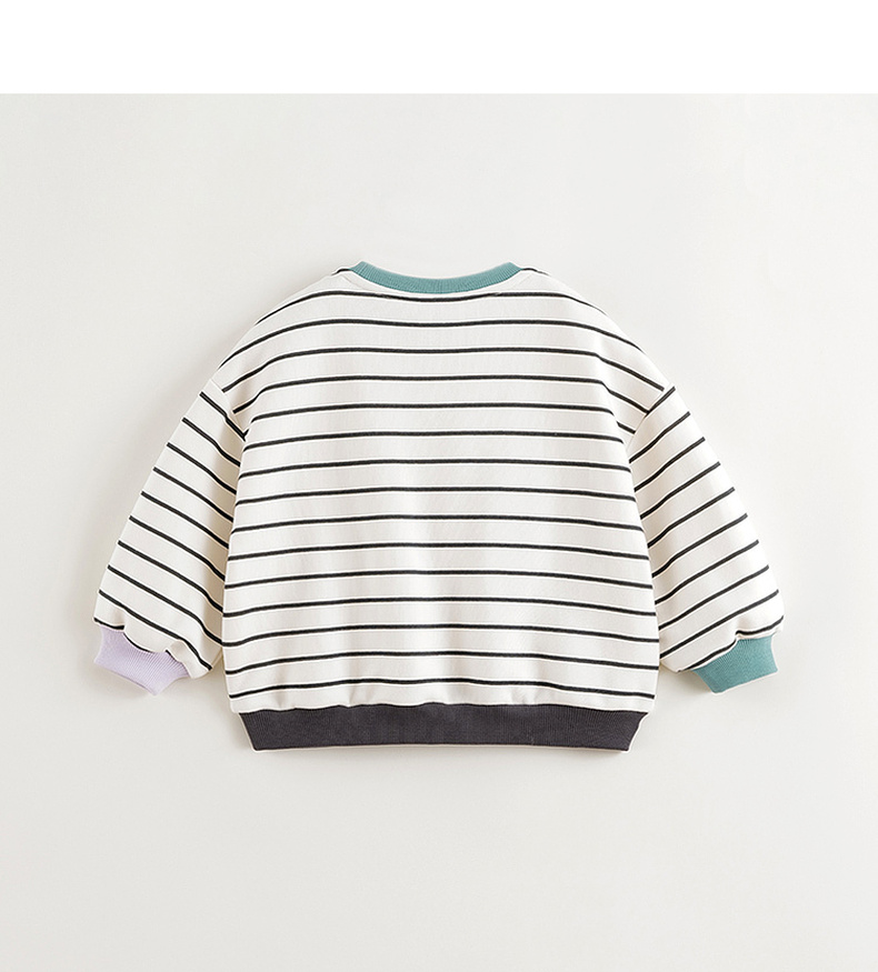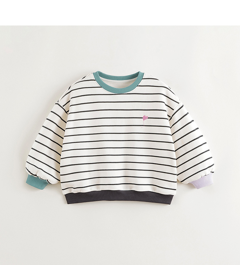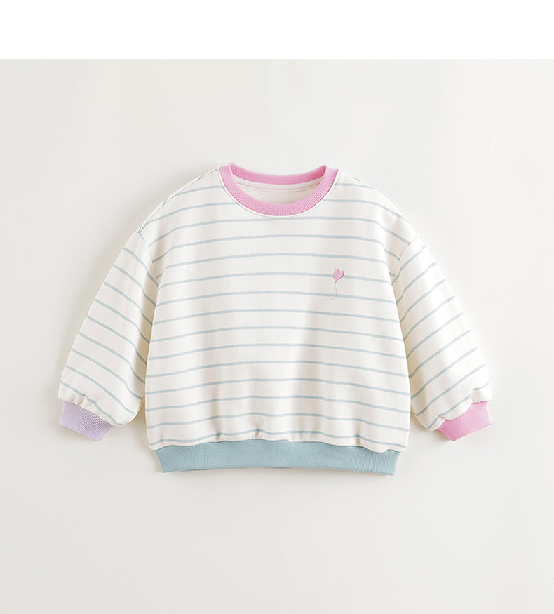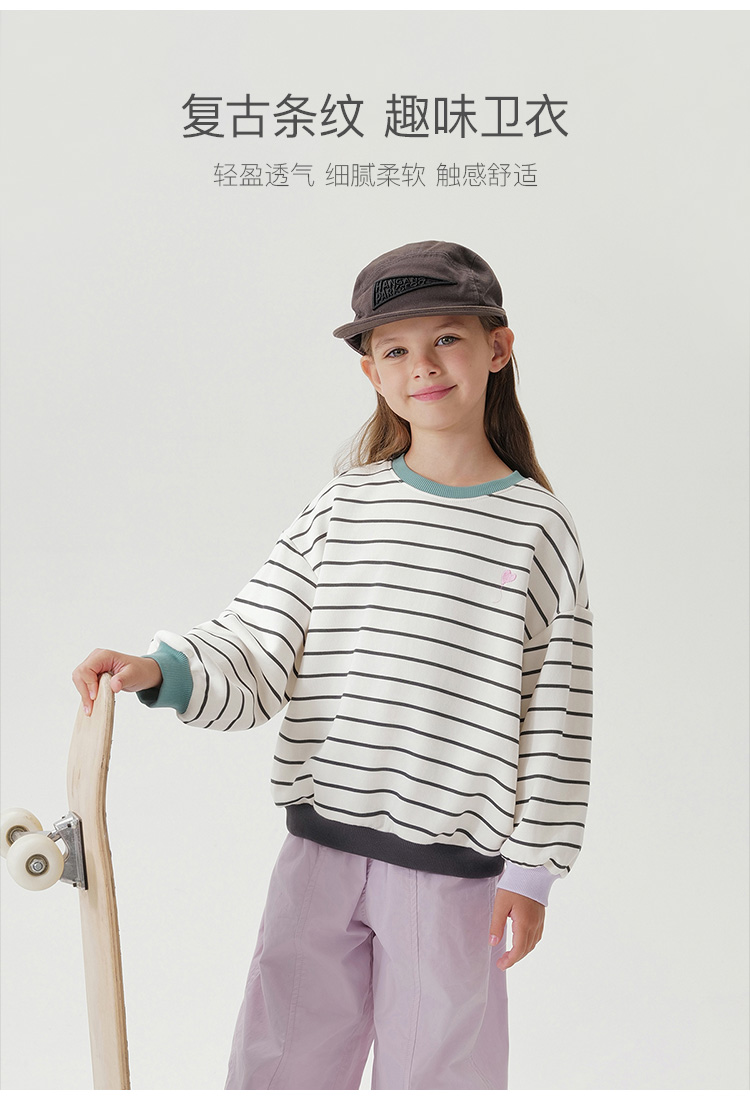 马克珍妮女童复古撞色宽松条纹卫衣2025年春装新款250155