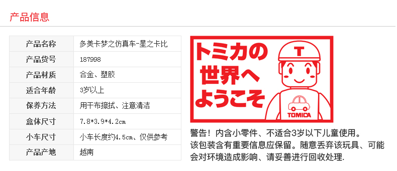 多美卡 Tomica梦之仿真车一星之卡比TMSC187998