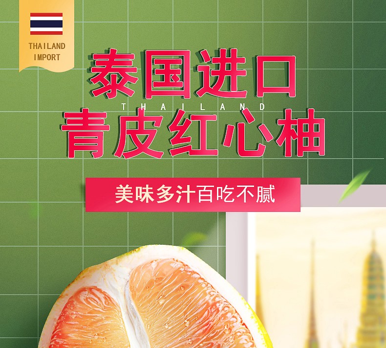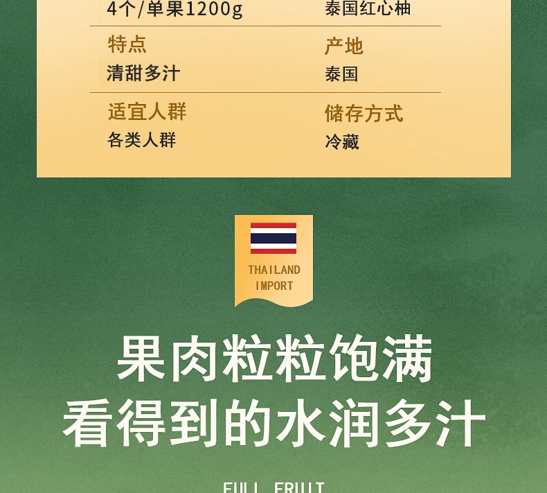 精选水果泰国红宝石钻石级青柚4个装 单果约2500g9-10斤