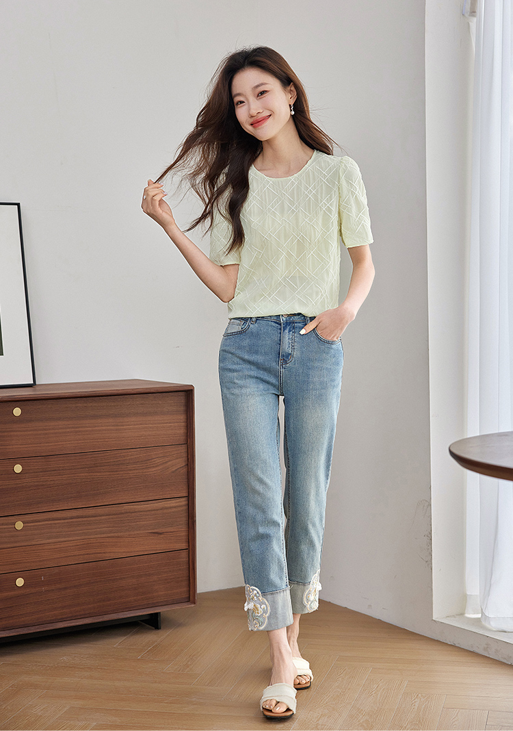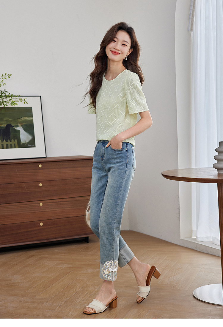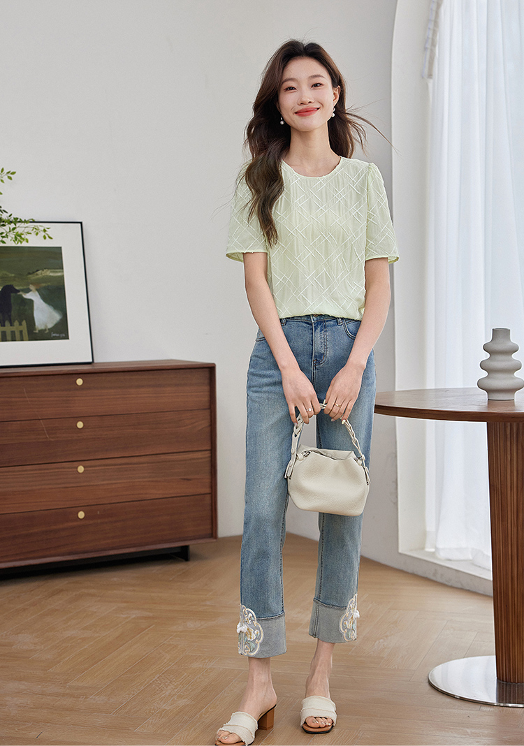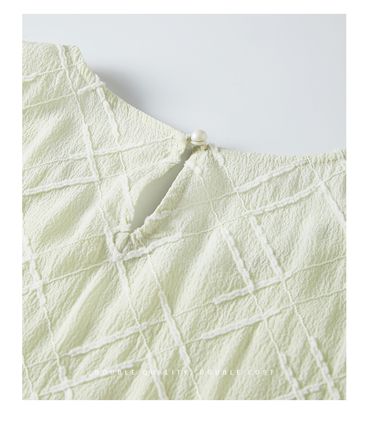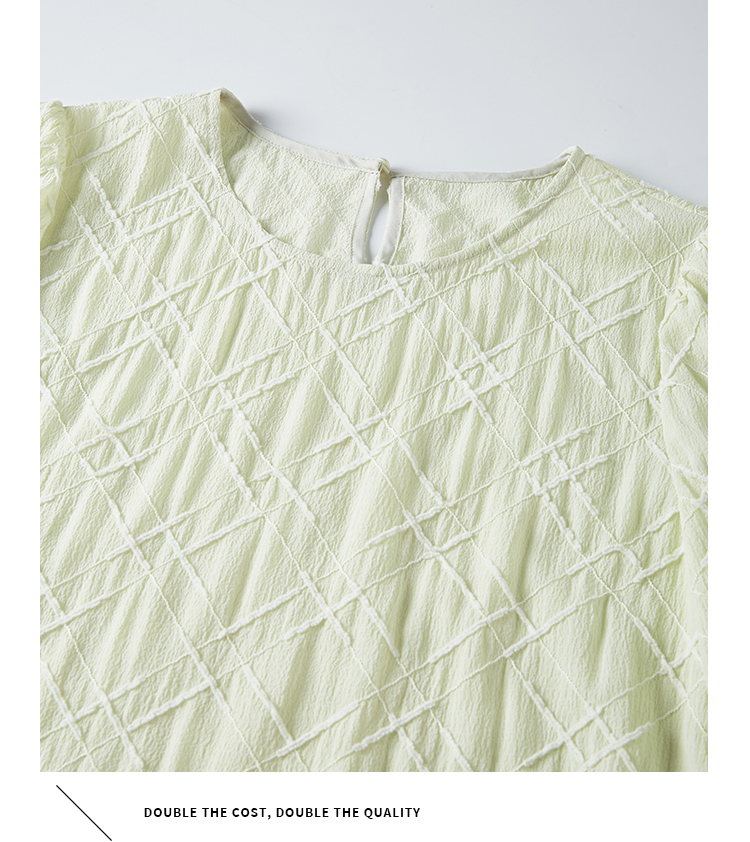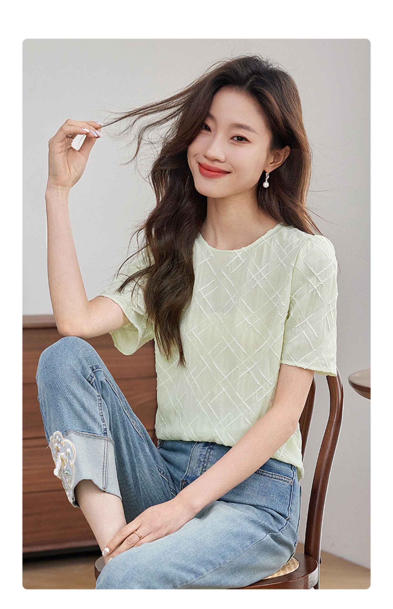 【39元福袋不支持退换】熙世界法式肌理菱格提花雪纺衫2025夏季新款别致小衫泡泡袖上衣