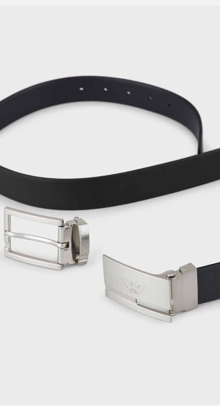 EMPORIO ARMANI 阿玛尼 男士 Saffiano 皮革双面腰带和可更换搭扣配有礼品盒 黑色 Y4S498 YLP4E 81519