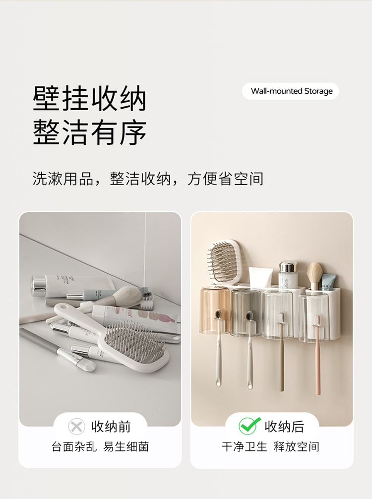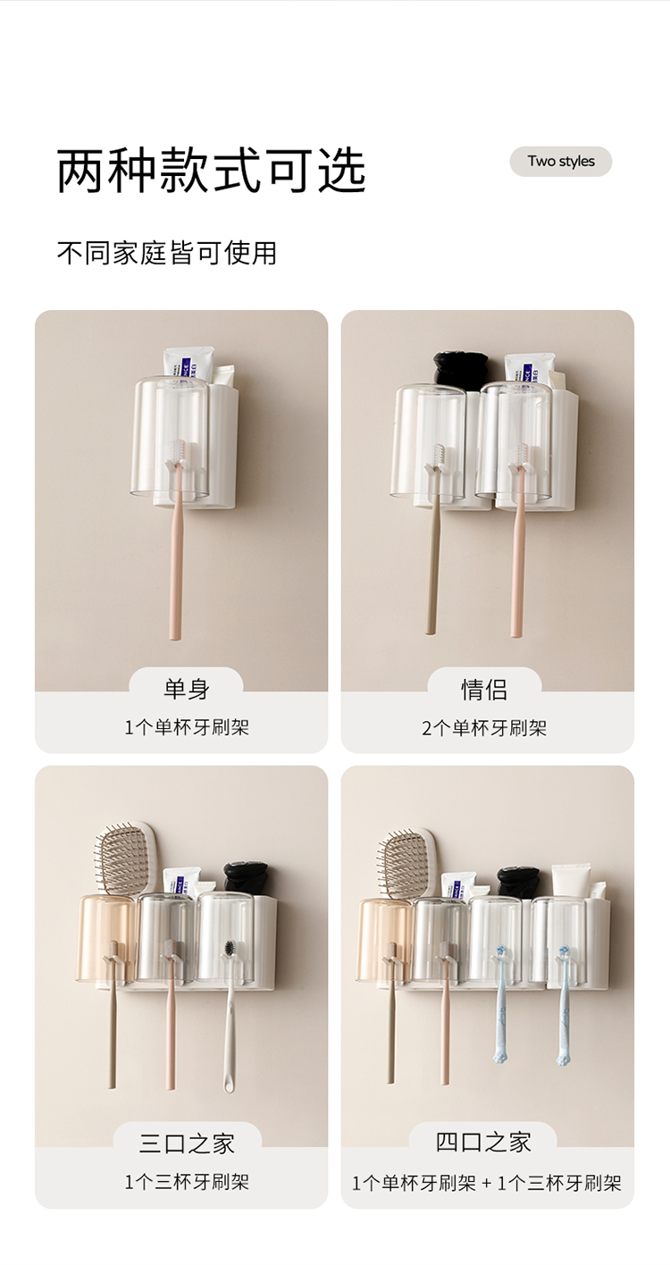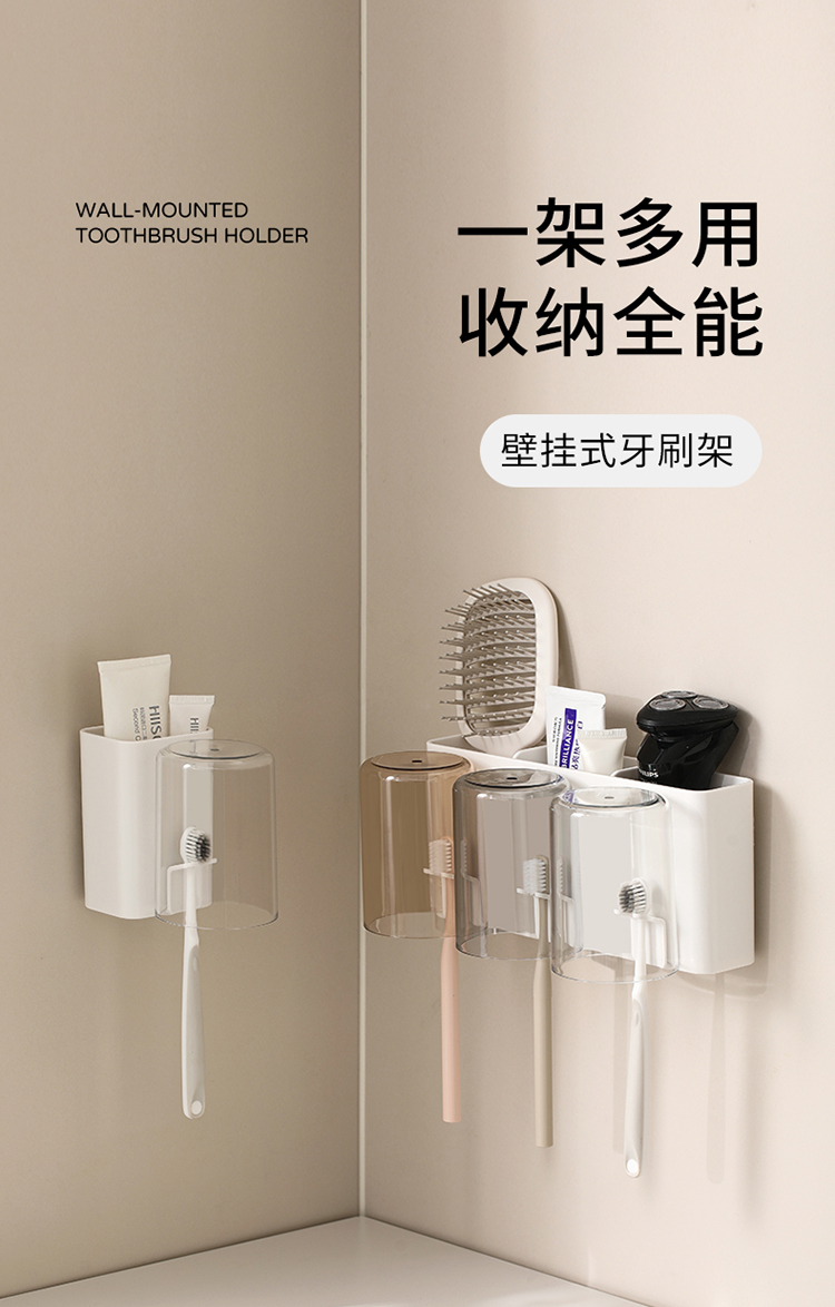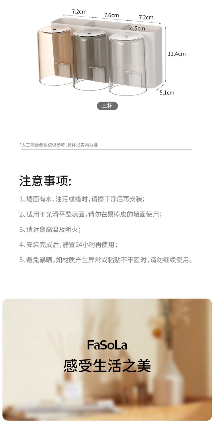 FaSoLa牙刷置物架牙杯壁挂式免打孔漱口杯子牙膏电动卫生间收纳
