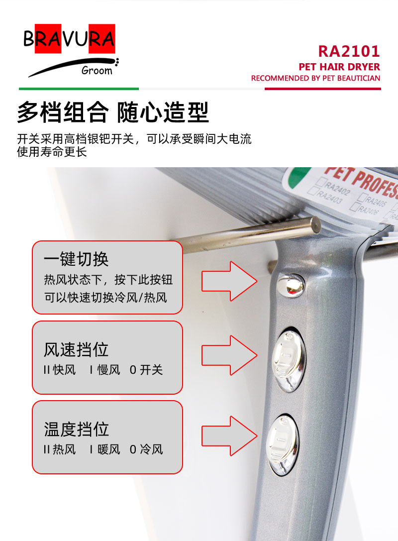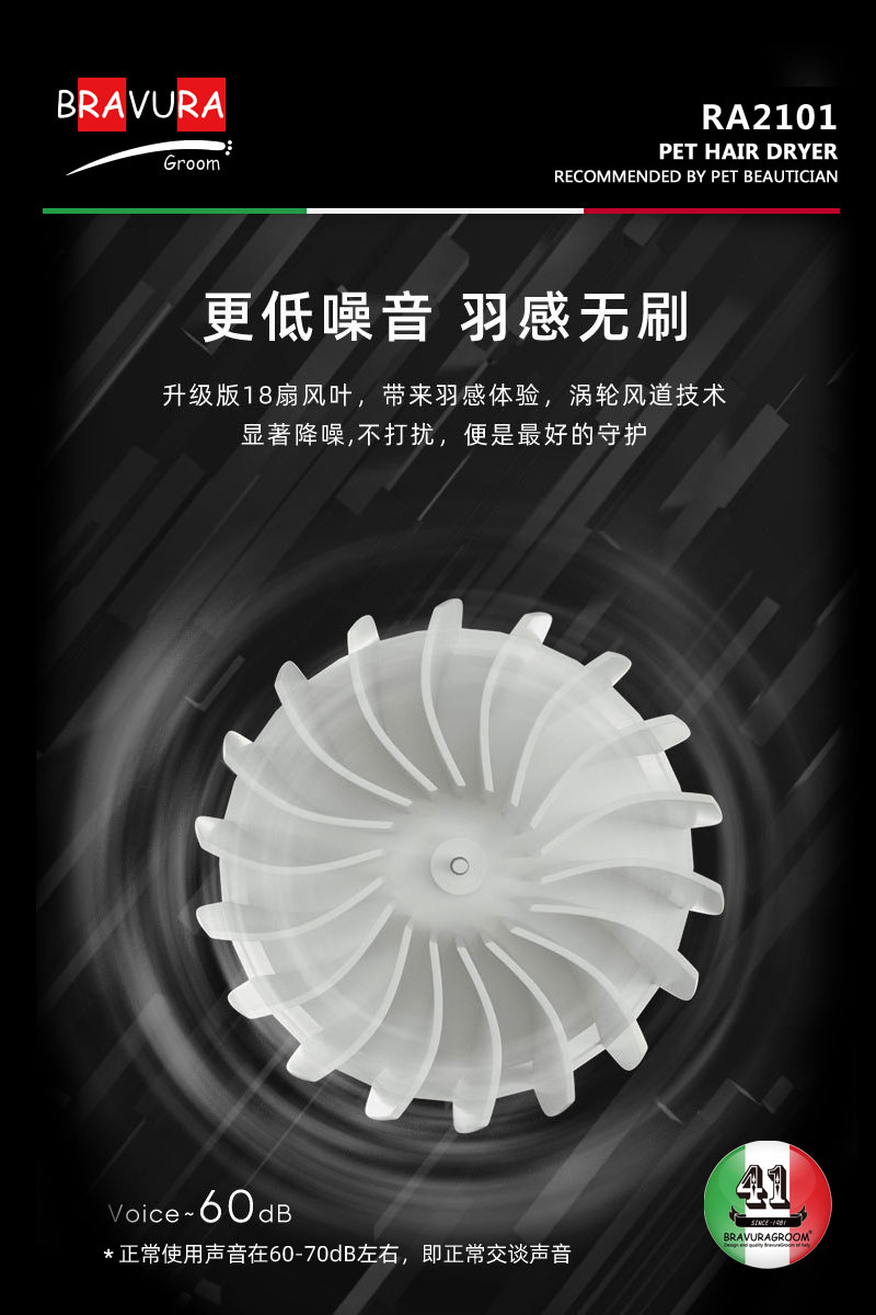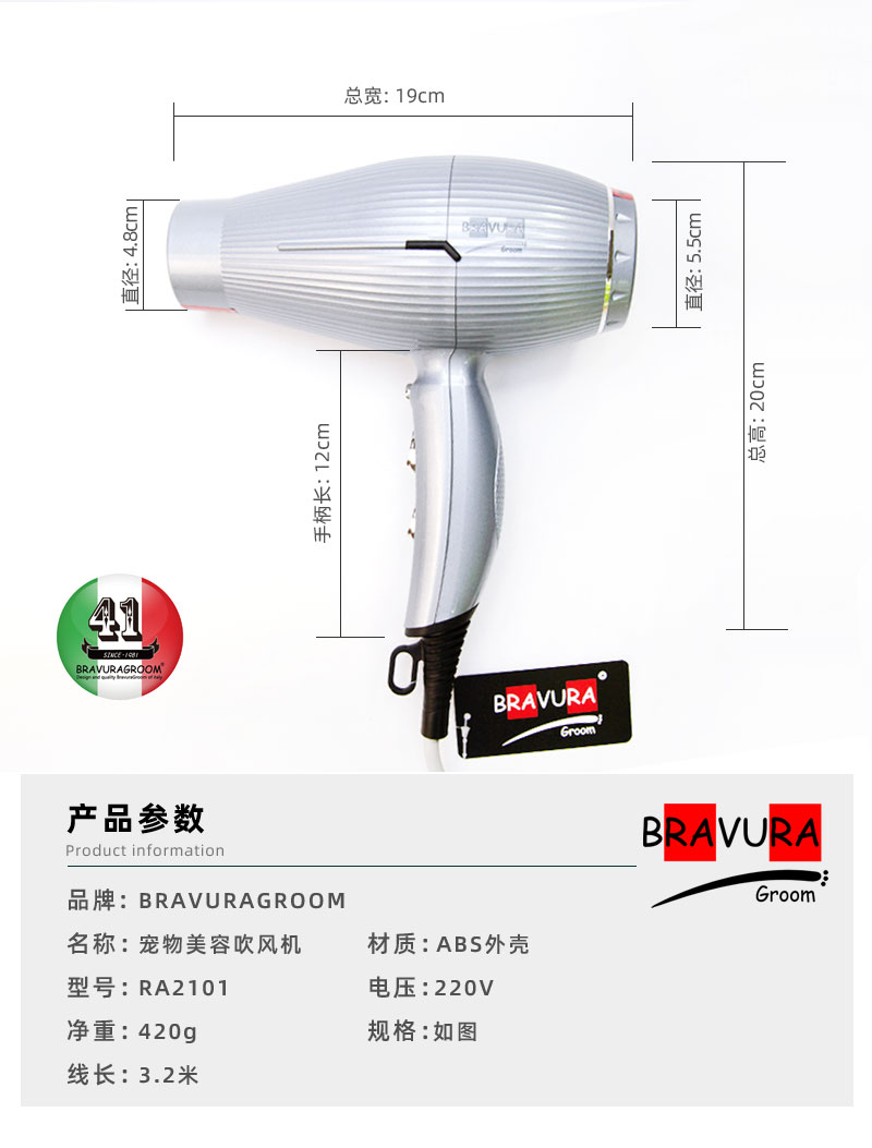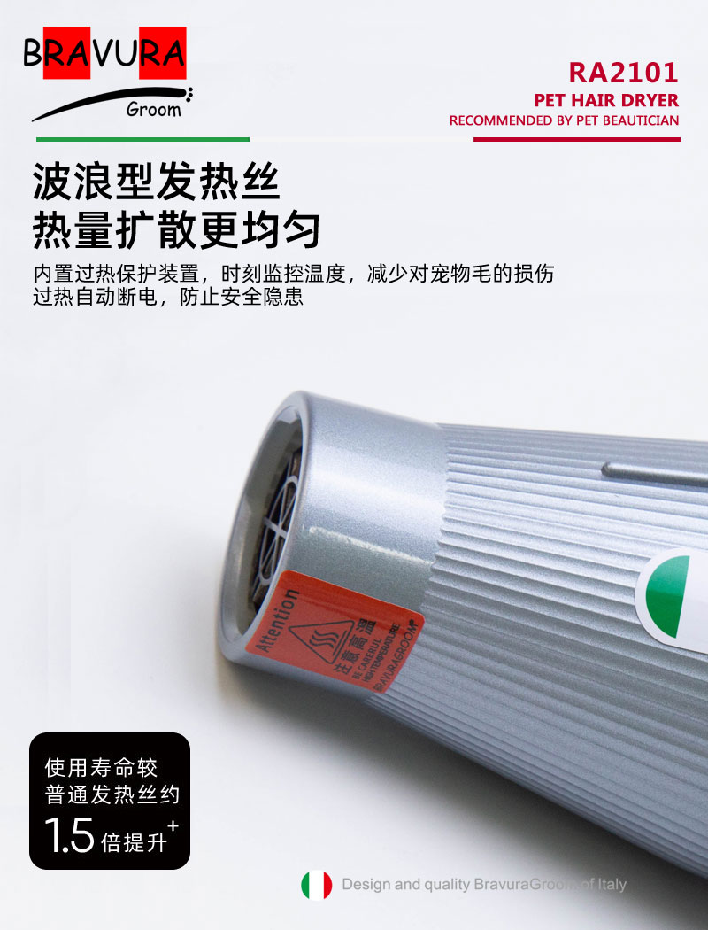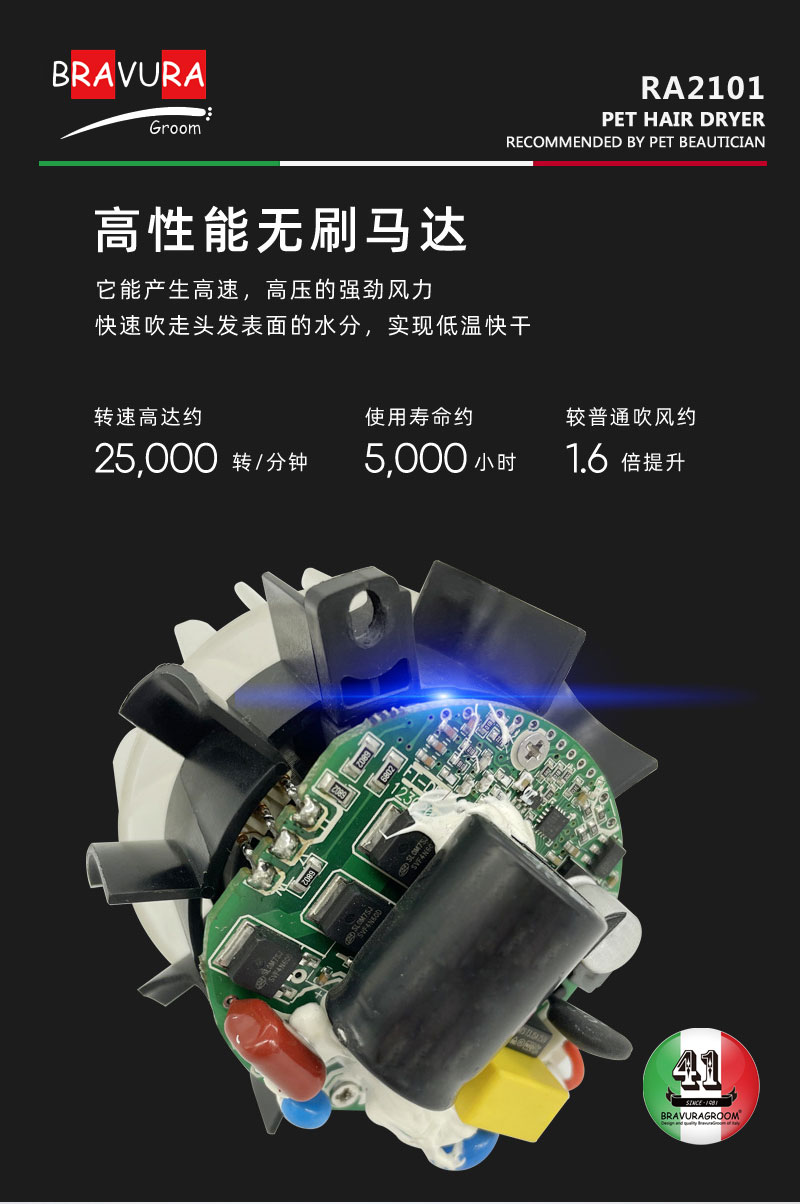 宠物吹风机 无刷大功率吹风机 噪音低 猫咪&大中小犬用 RA2101意大利BRAVURAGROOM