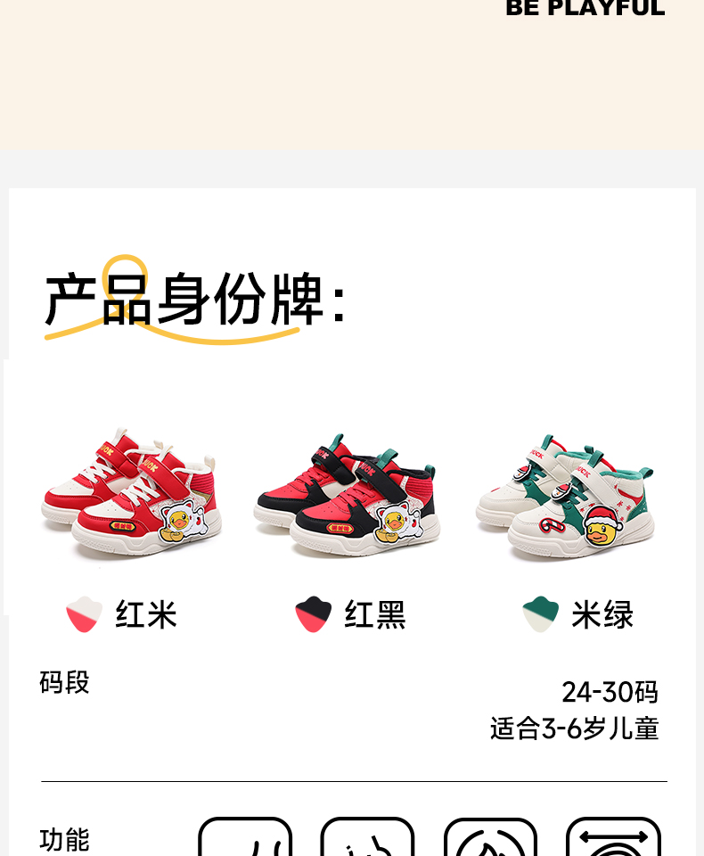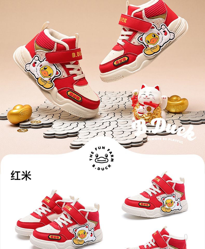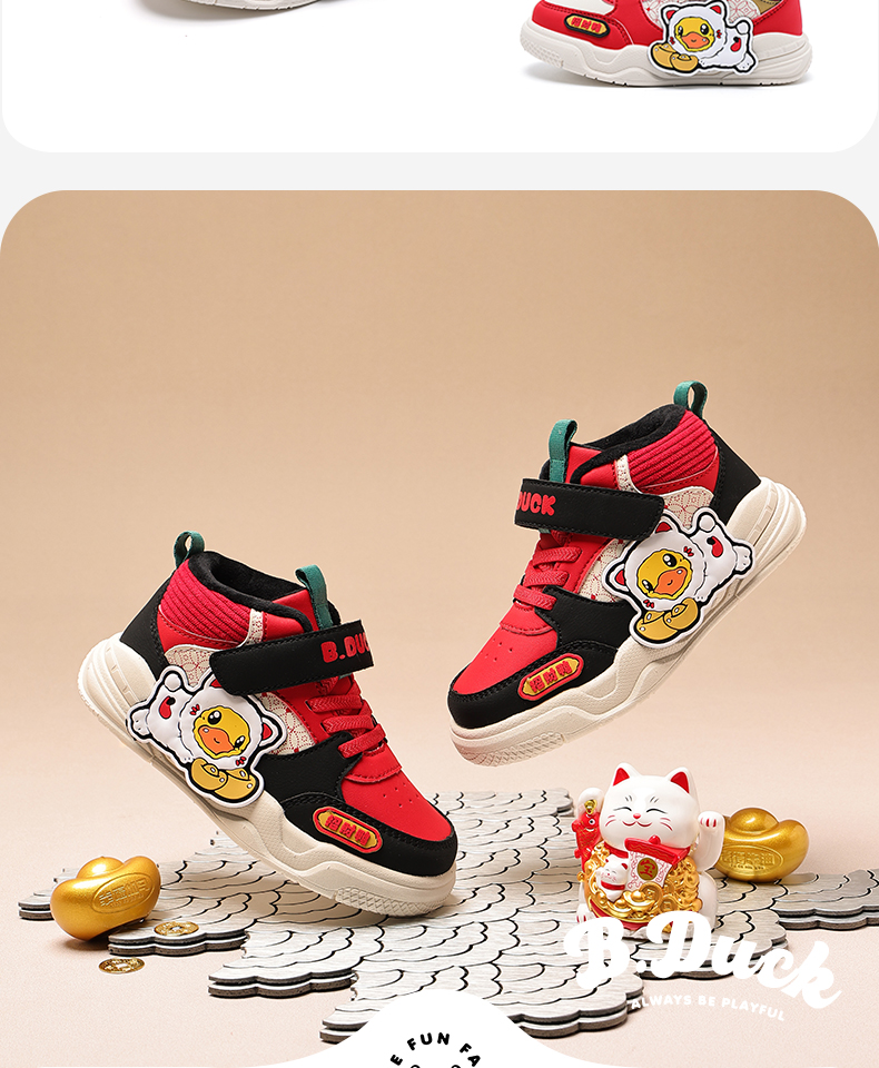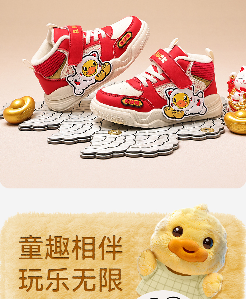 B.Duck小黄鸭童鞋冬季高帮板鞋24-30 B5686806