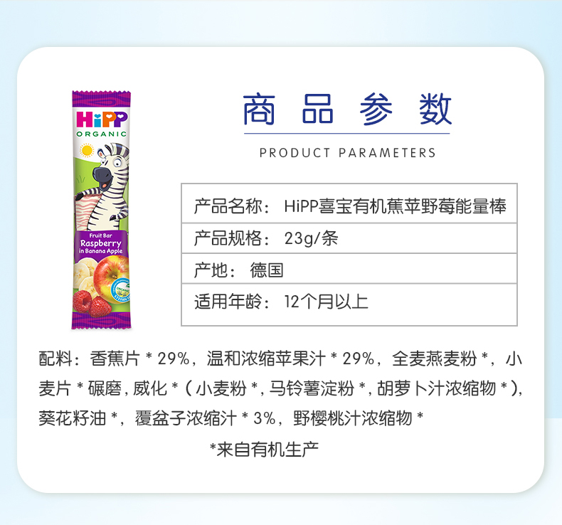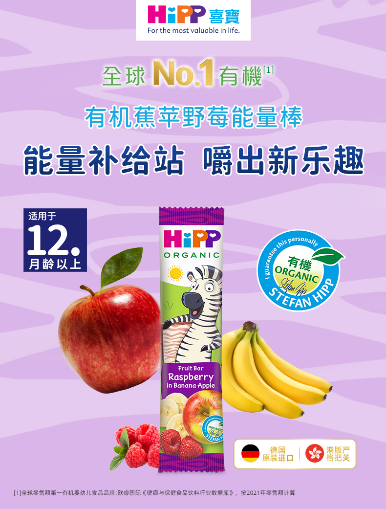 (新品)【香港直邮】喜寶HiPP 有機水果能量棒6条/箱