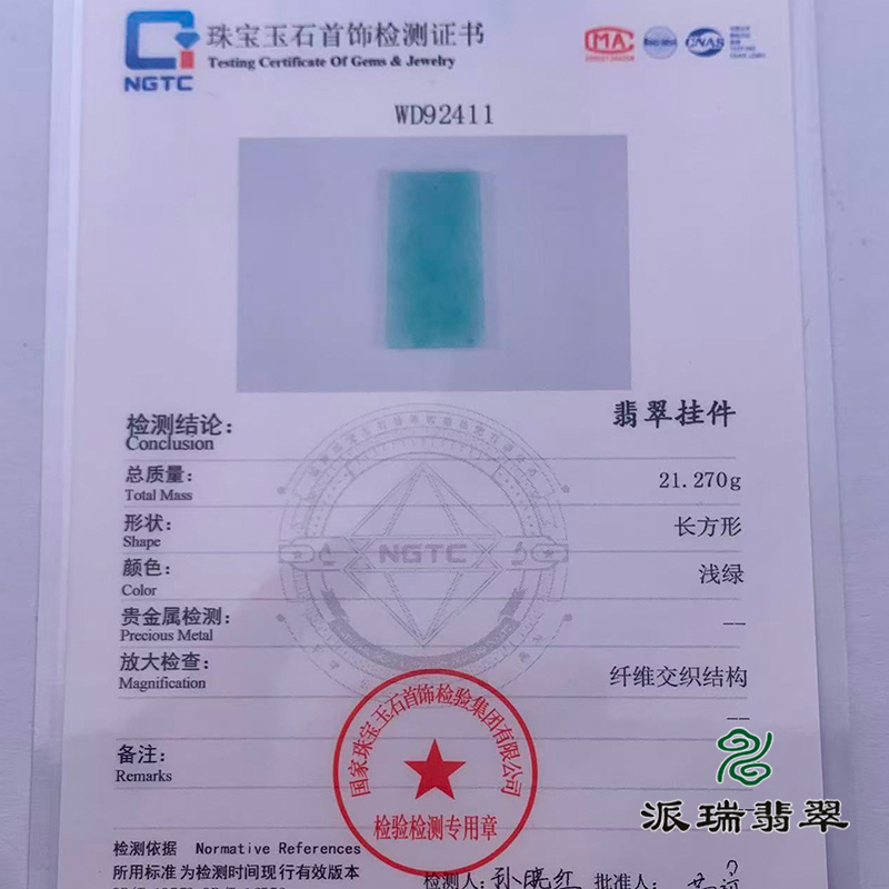 派瑞翡翠 翡翠挂件 糯种 绿色