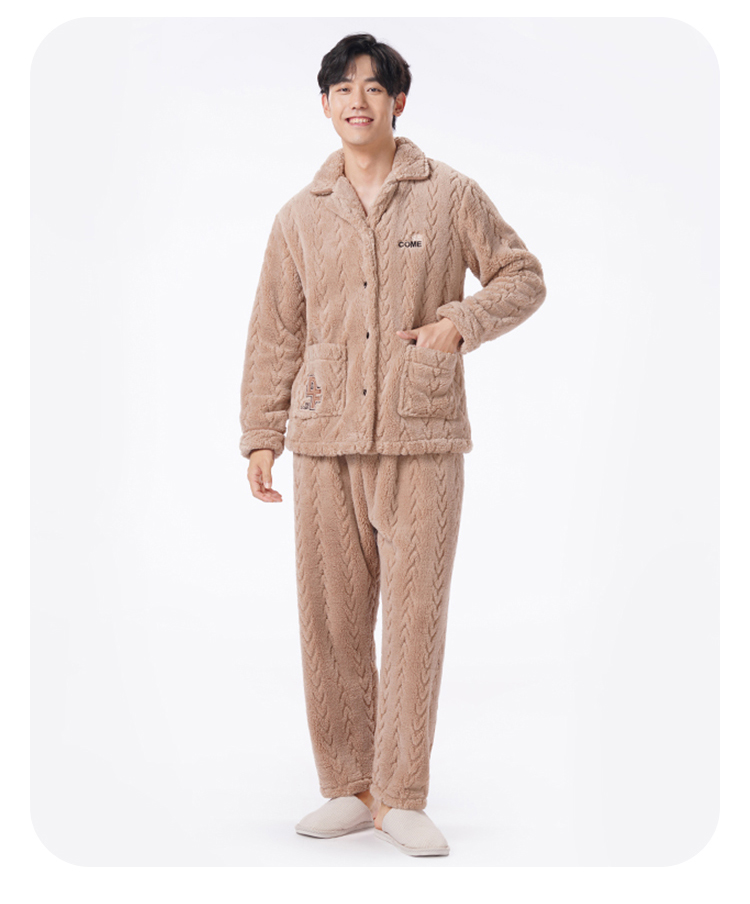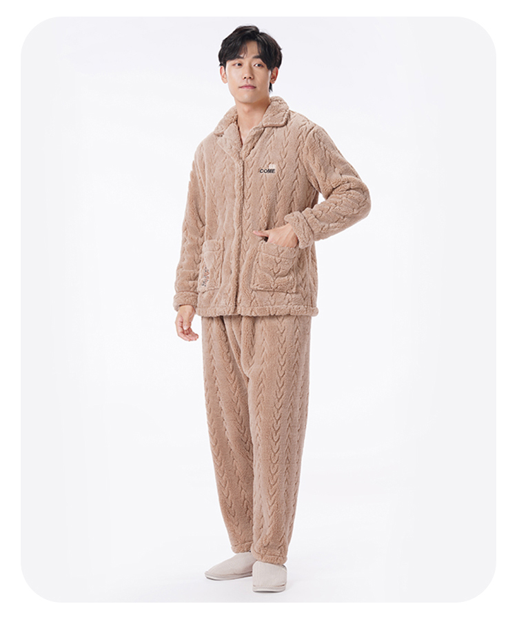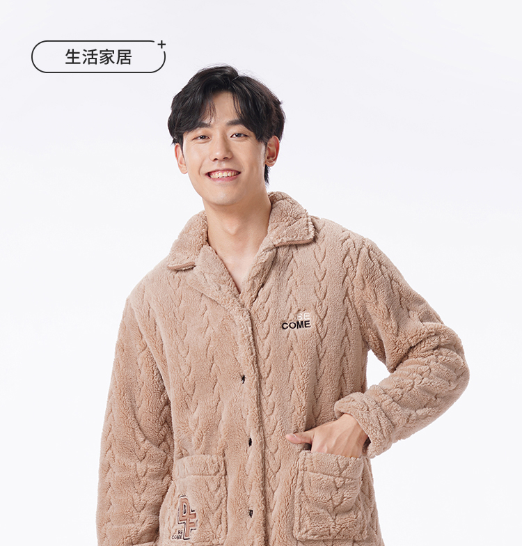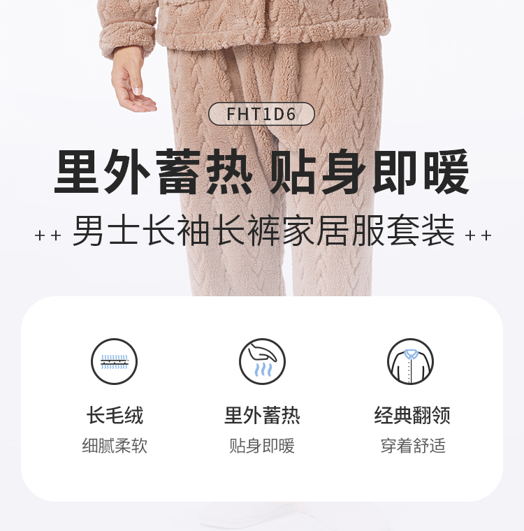 都市丽人都市锋尚睡衣生活家居长袖长毛绒提花厚男士法兰绒套装FHT1D6