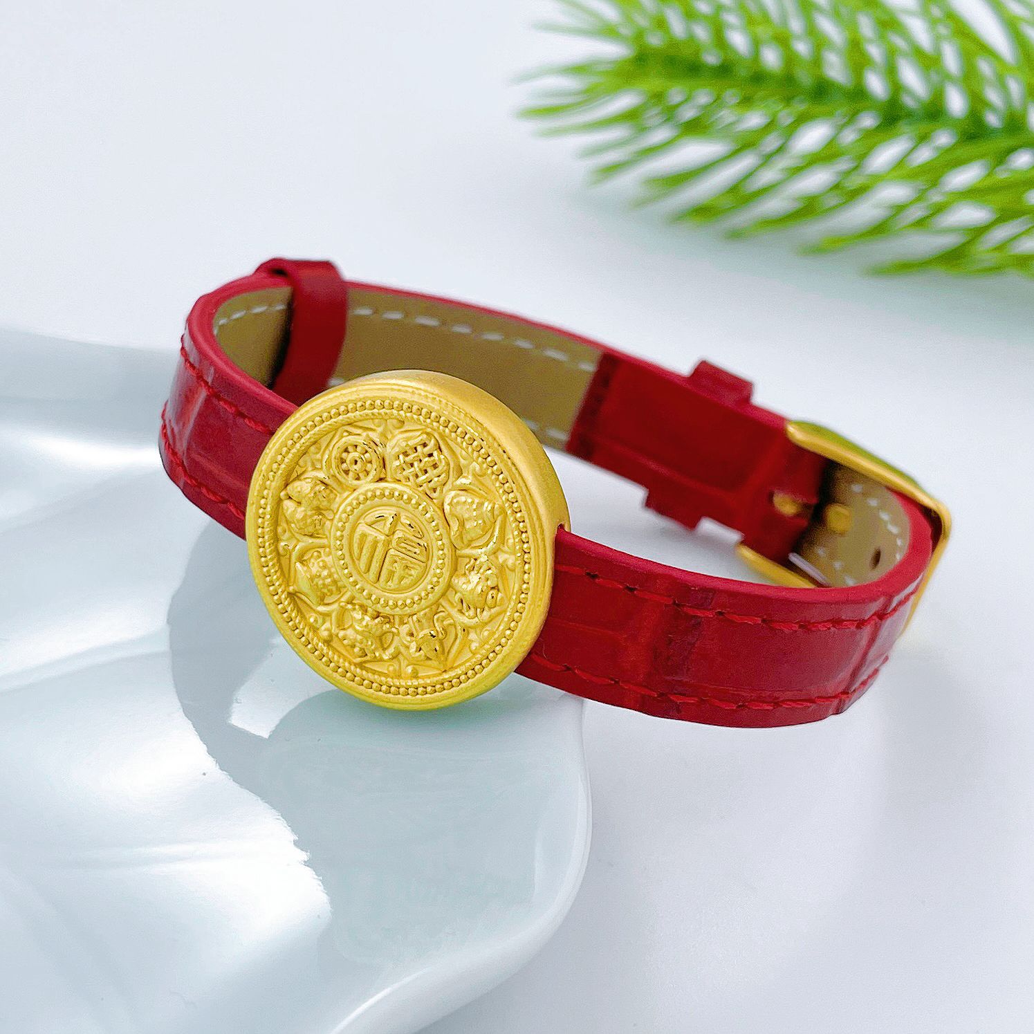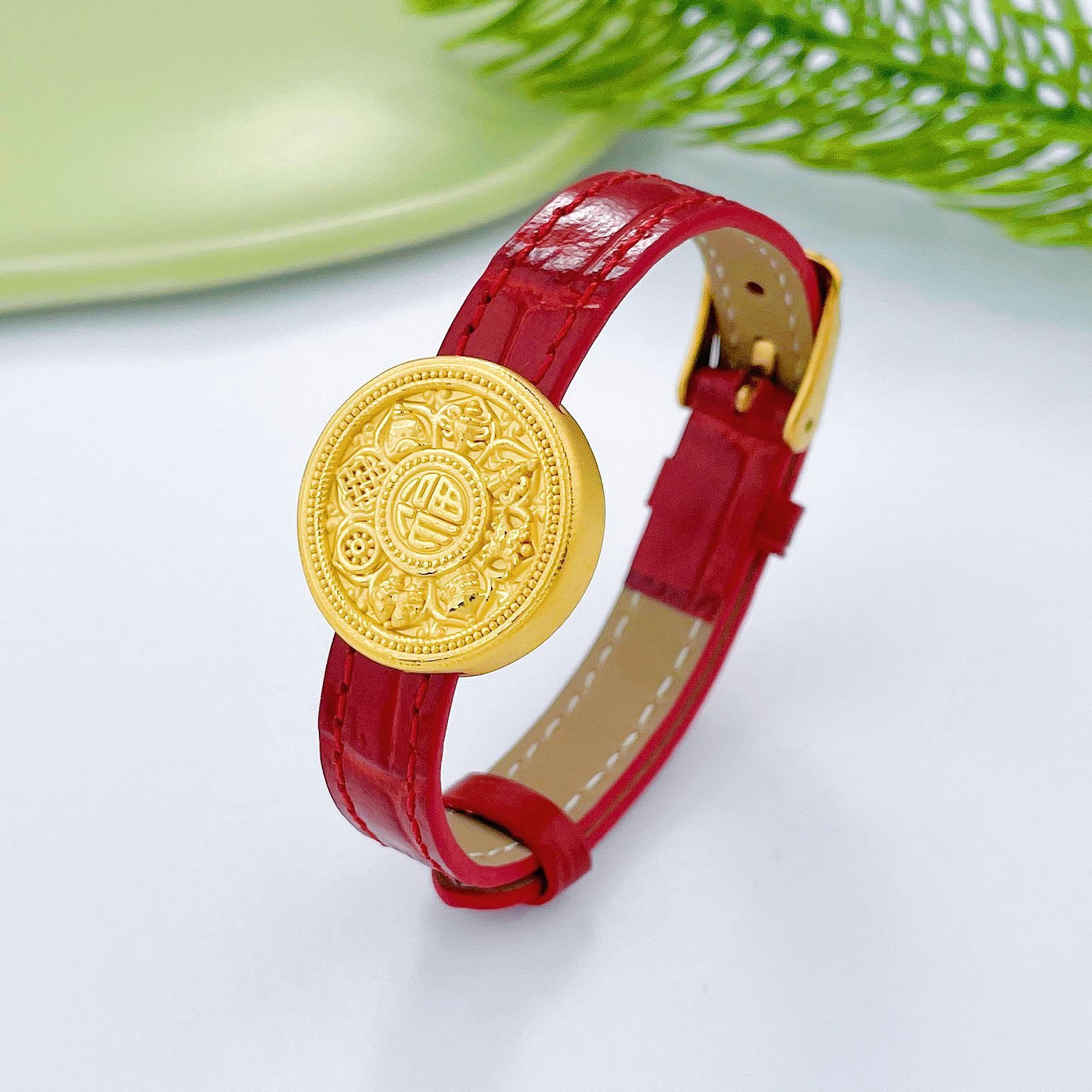 【限时克减150元】足金 #八宝罗盘 #小红书 3D硬金八方祥瑞福字八宝表盘红色人造皮表带手表成品手串(AJ3DSC00052-4)预售产品下单后不退款不退货不换货不补差价