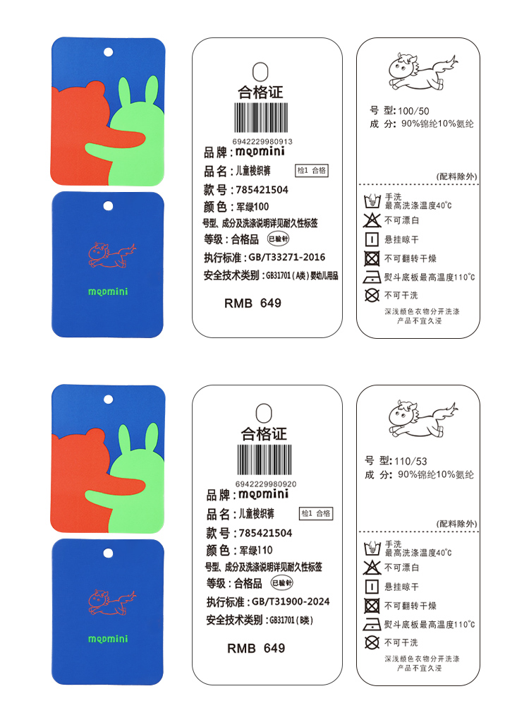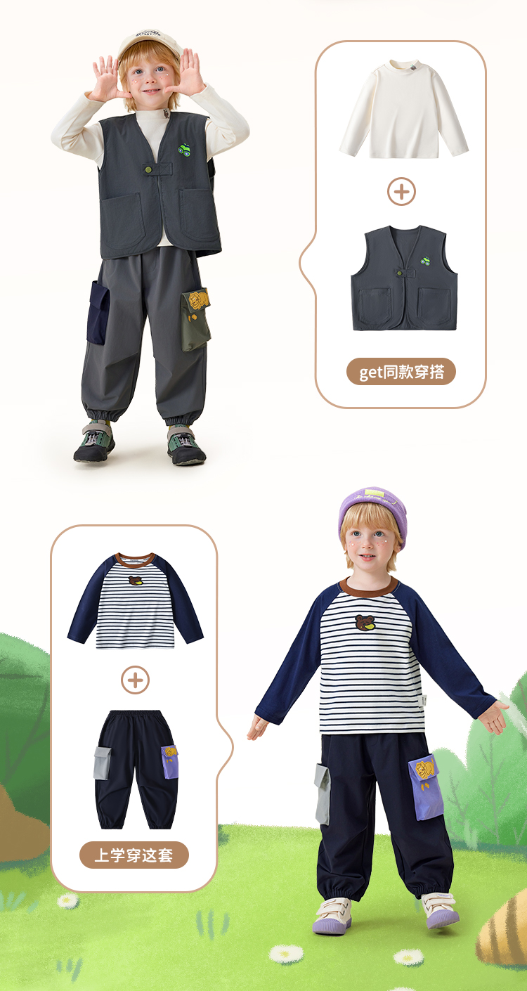 【90-140】【MQDmini】男童春秋工装裤梭织长裤