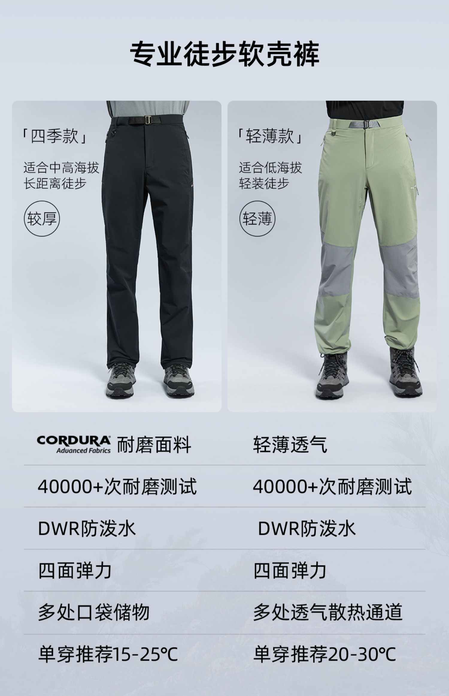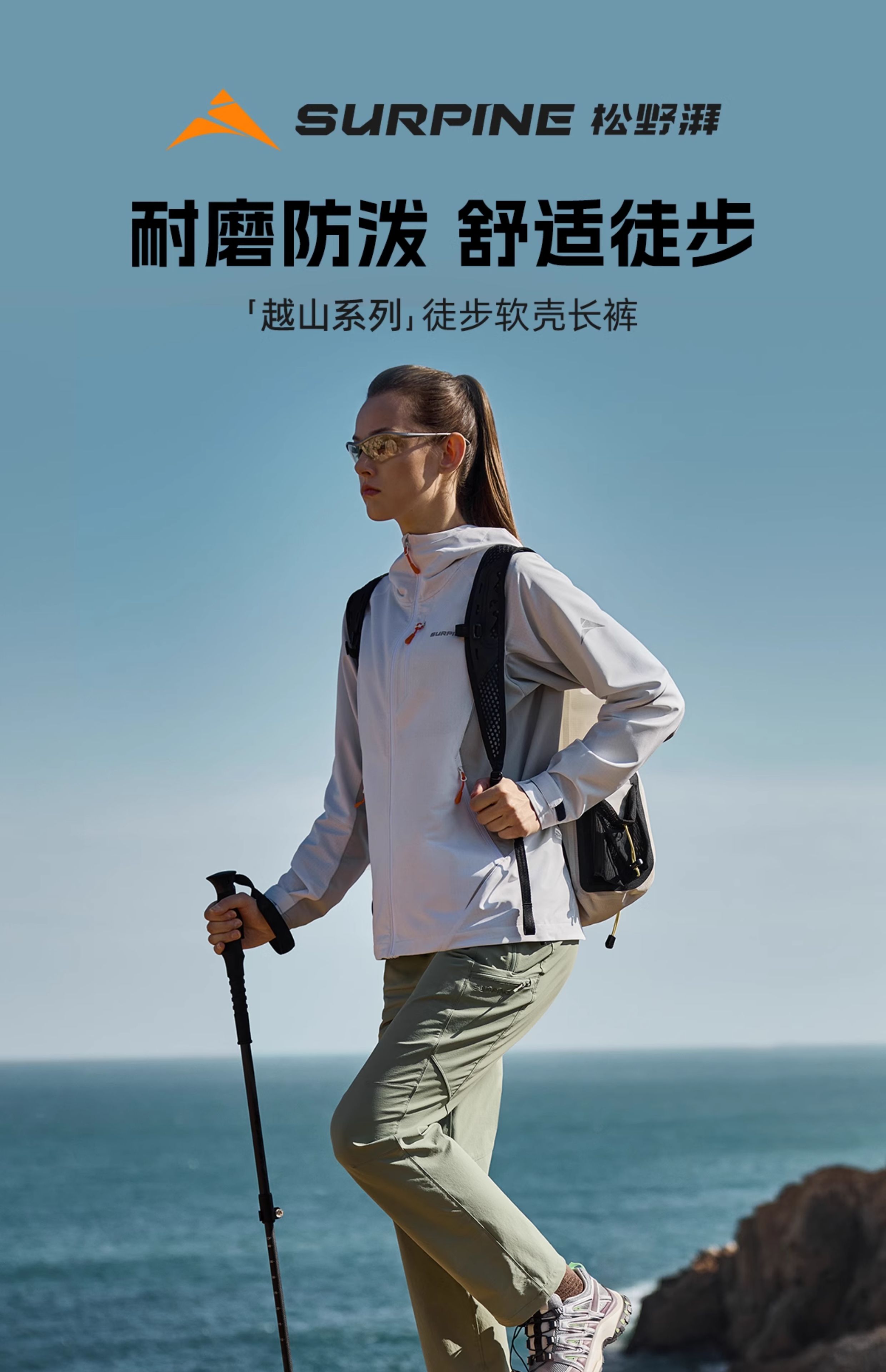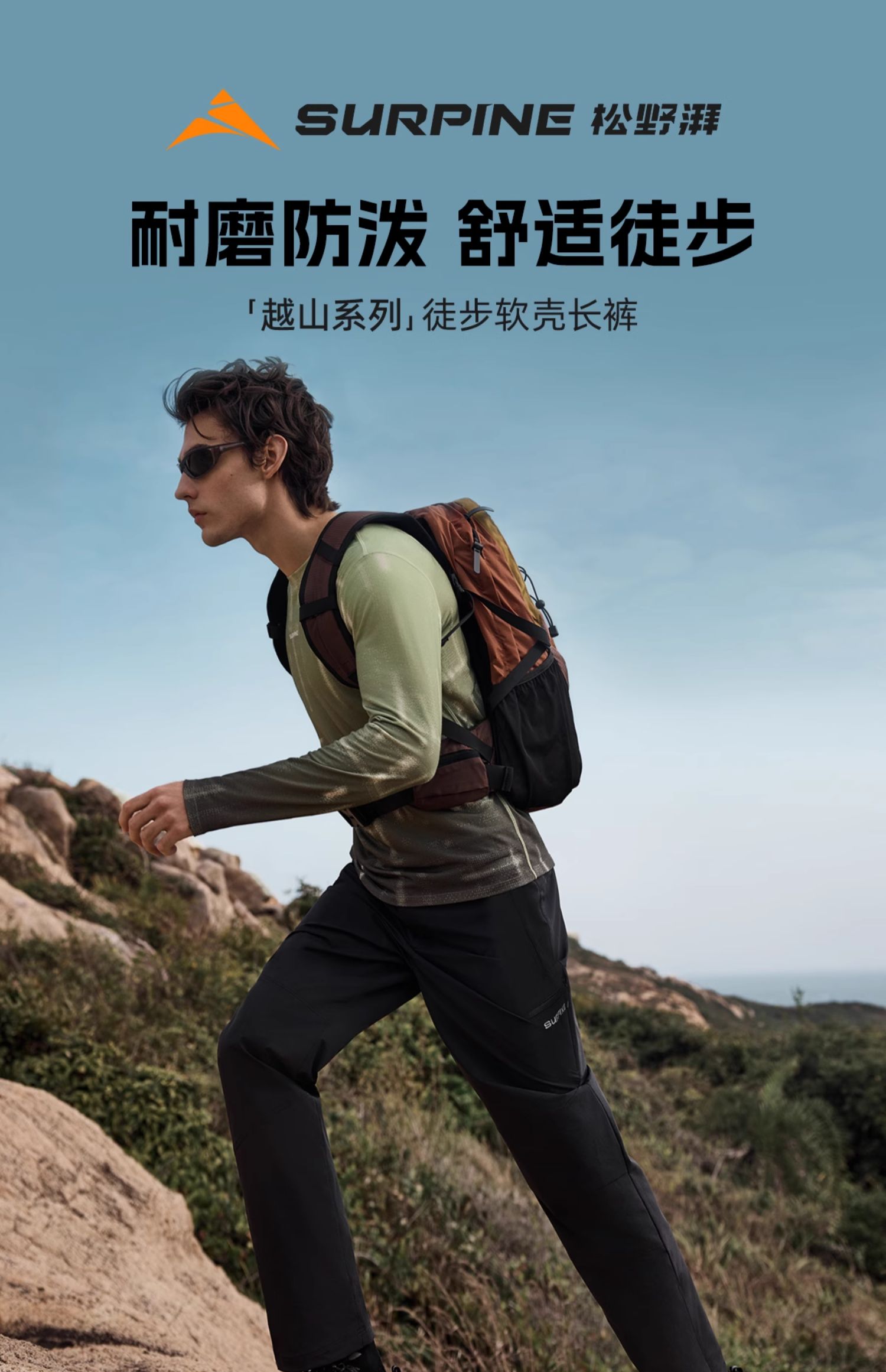 【599秒杀!大牌现货】SURPINE松野湃 男女款越山防泼水Cordura耐磨徒步软壳裤攀岩长裤