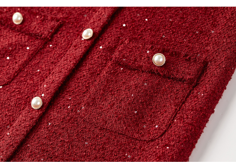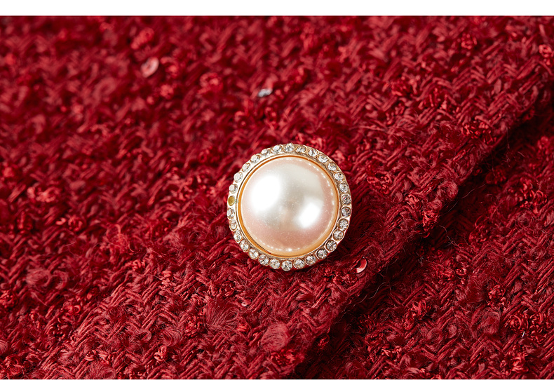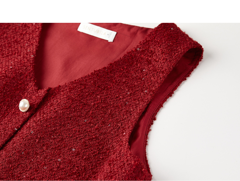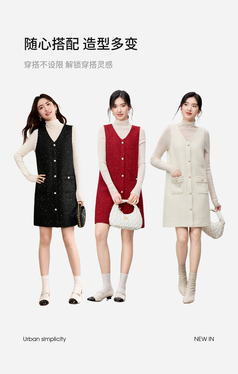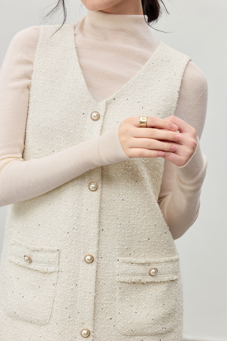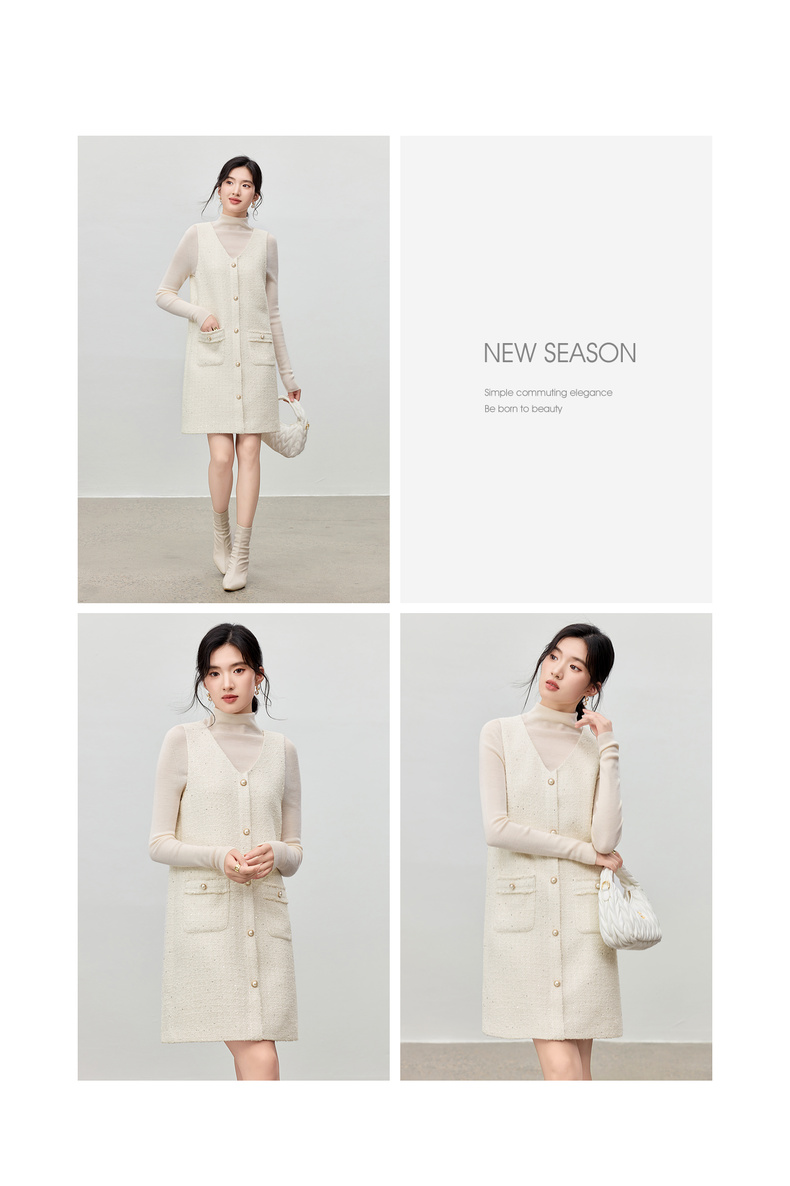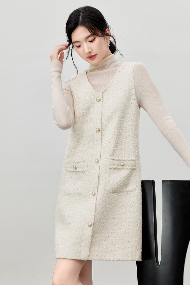 【内购】【璀璨亮片】优雅V领金属珍珠扣假门襟粗花呢小香风背心裙连衣裙-153LB3340