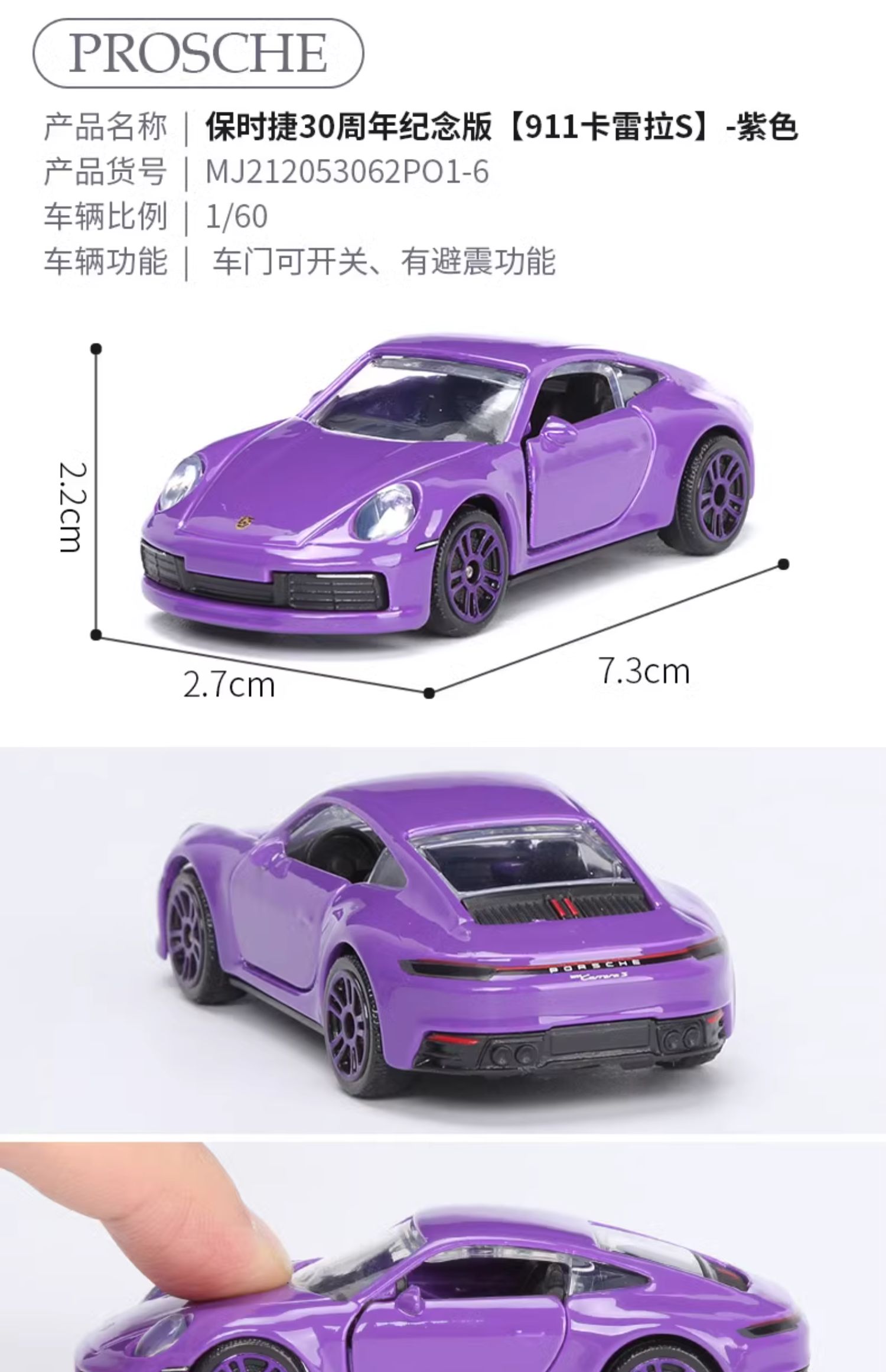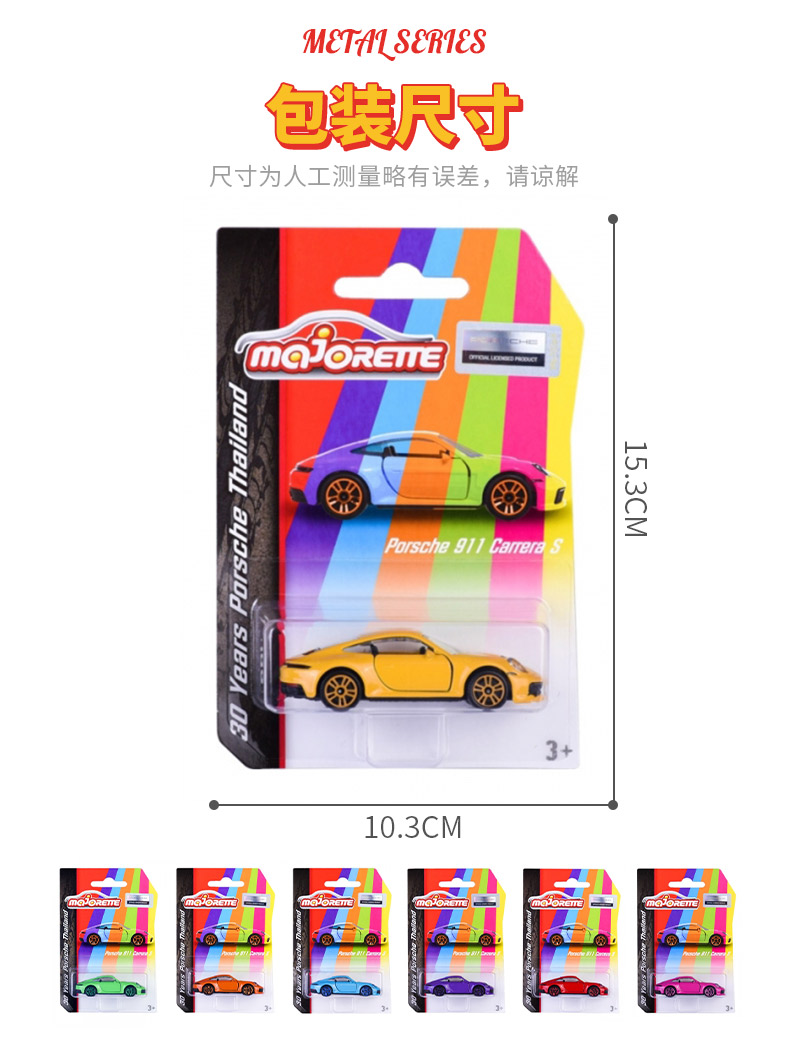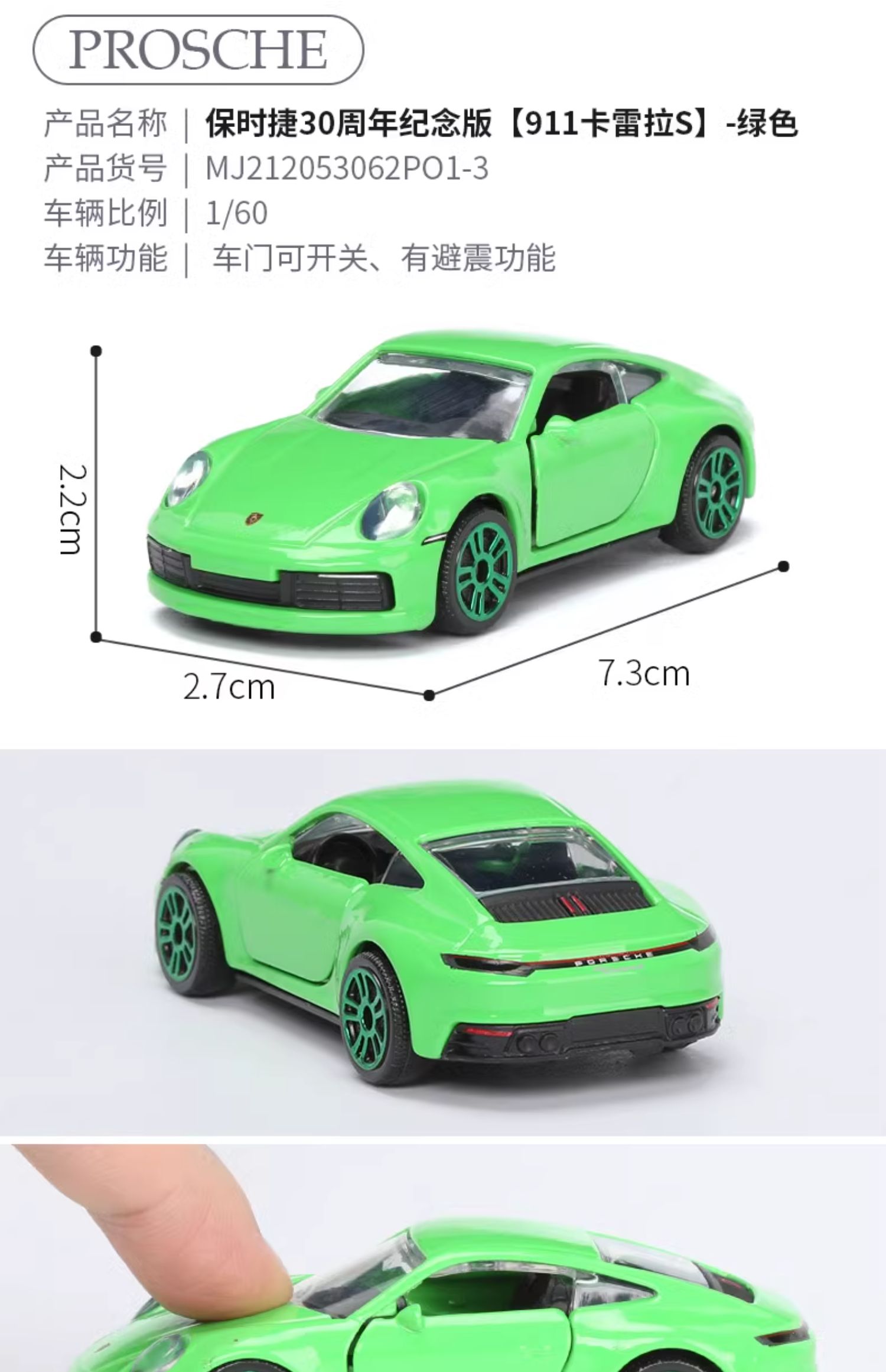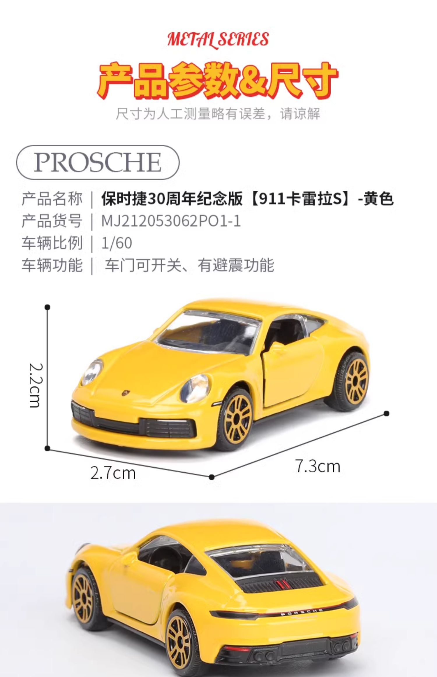 Majorette 美捷轮-保时捷30周年纪念版 | 美捷轮保时捷30周年纪念版911Carrera S卡雷拉合金车模 | 盲盒 3岁+ 颜色随机 介意慎拍!