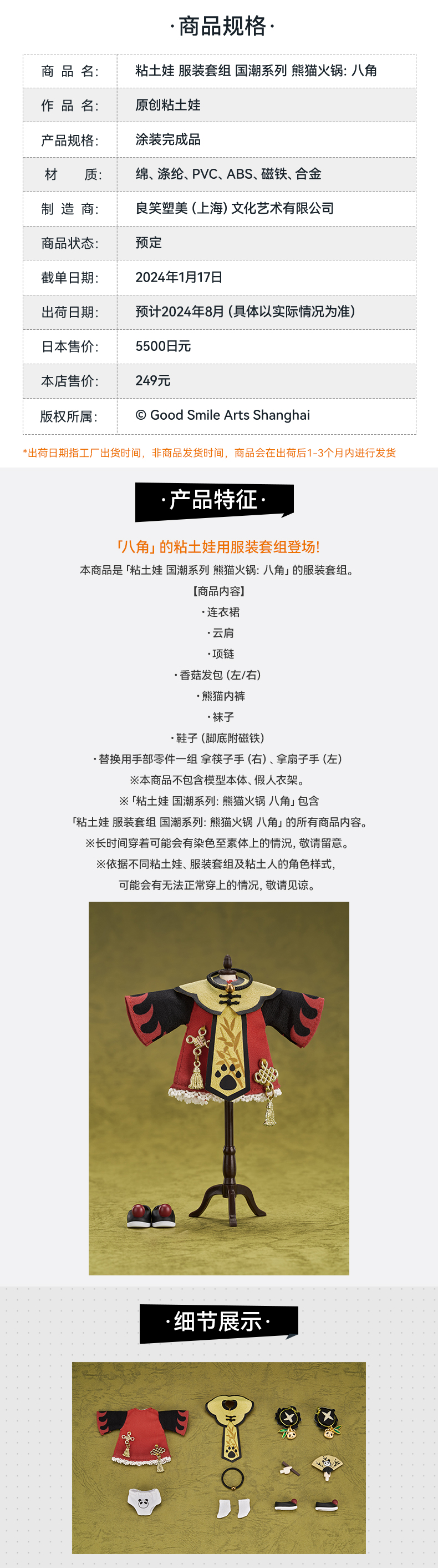 【GSC现货】粘土娃 国潮系列/服装套组 熊猫火锅:八角