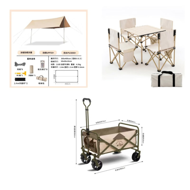 飞图乐户外露营车 折叠推车便携小推车营地车野餐露营尊享三件套 LYTC05 XHR