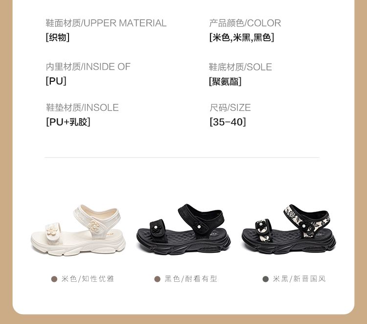 ZHR则则沙滩凉鞋女2024新款夏季外穿百搭软底凉拖魔术贴运动凉鞋