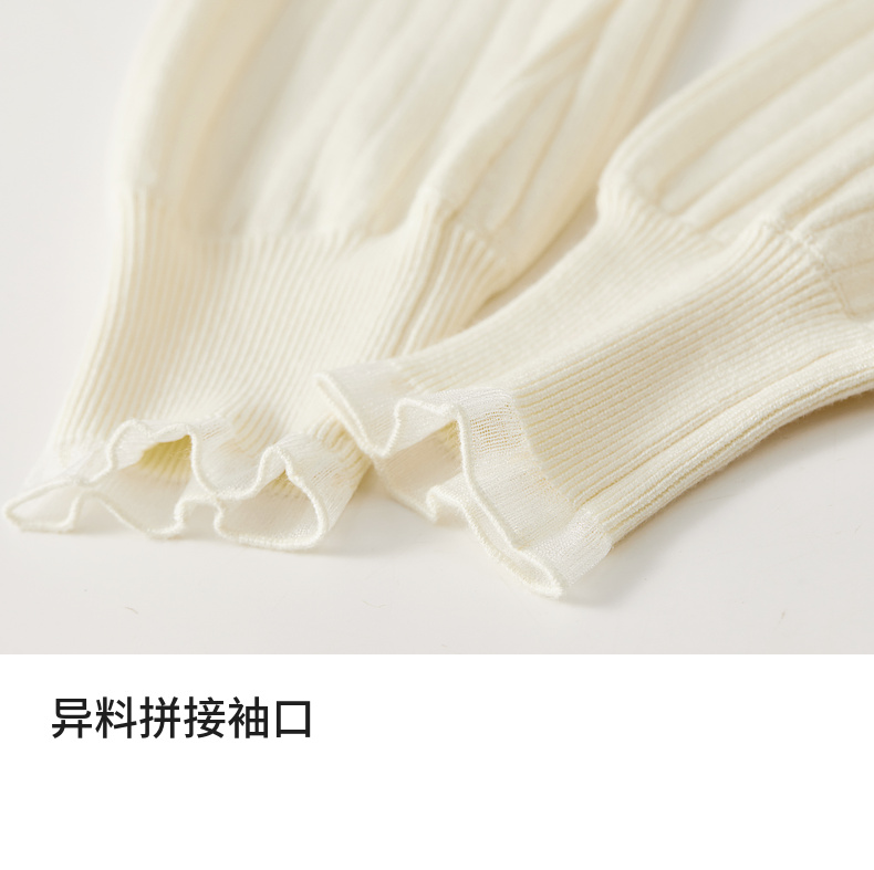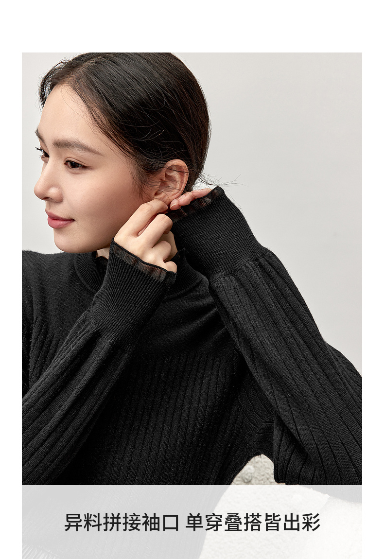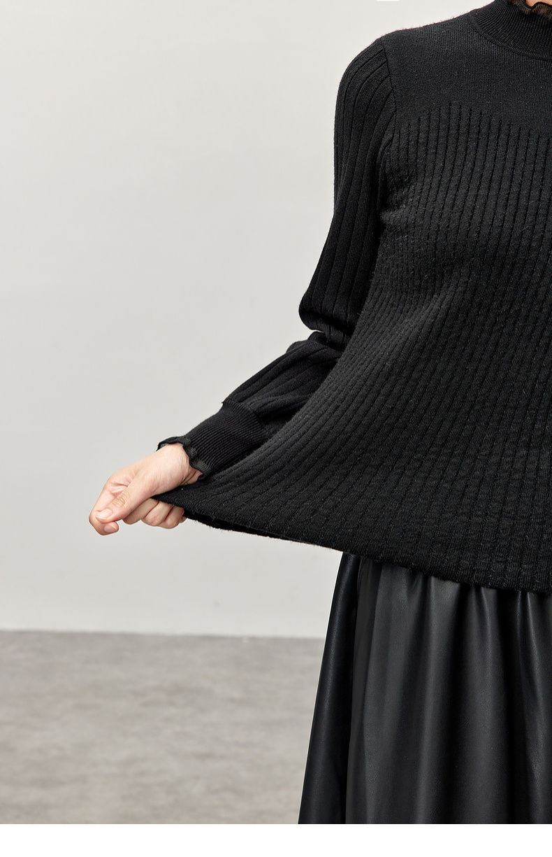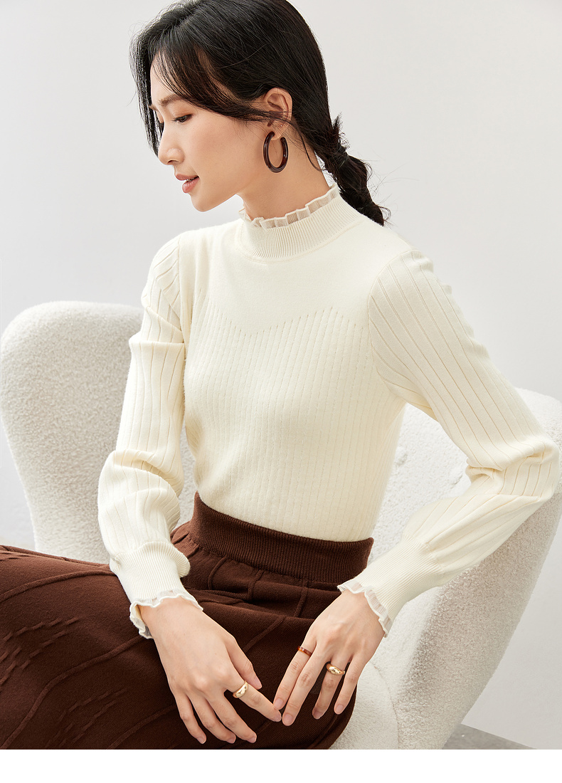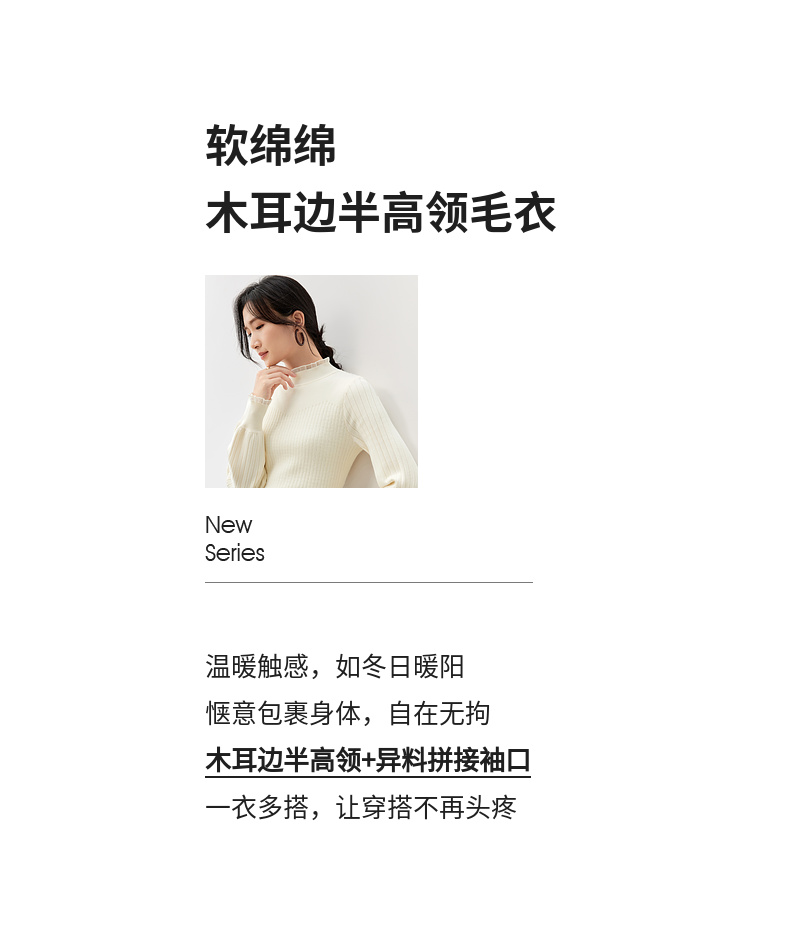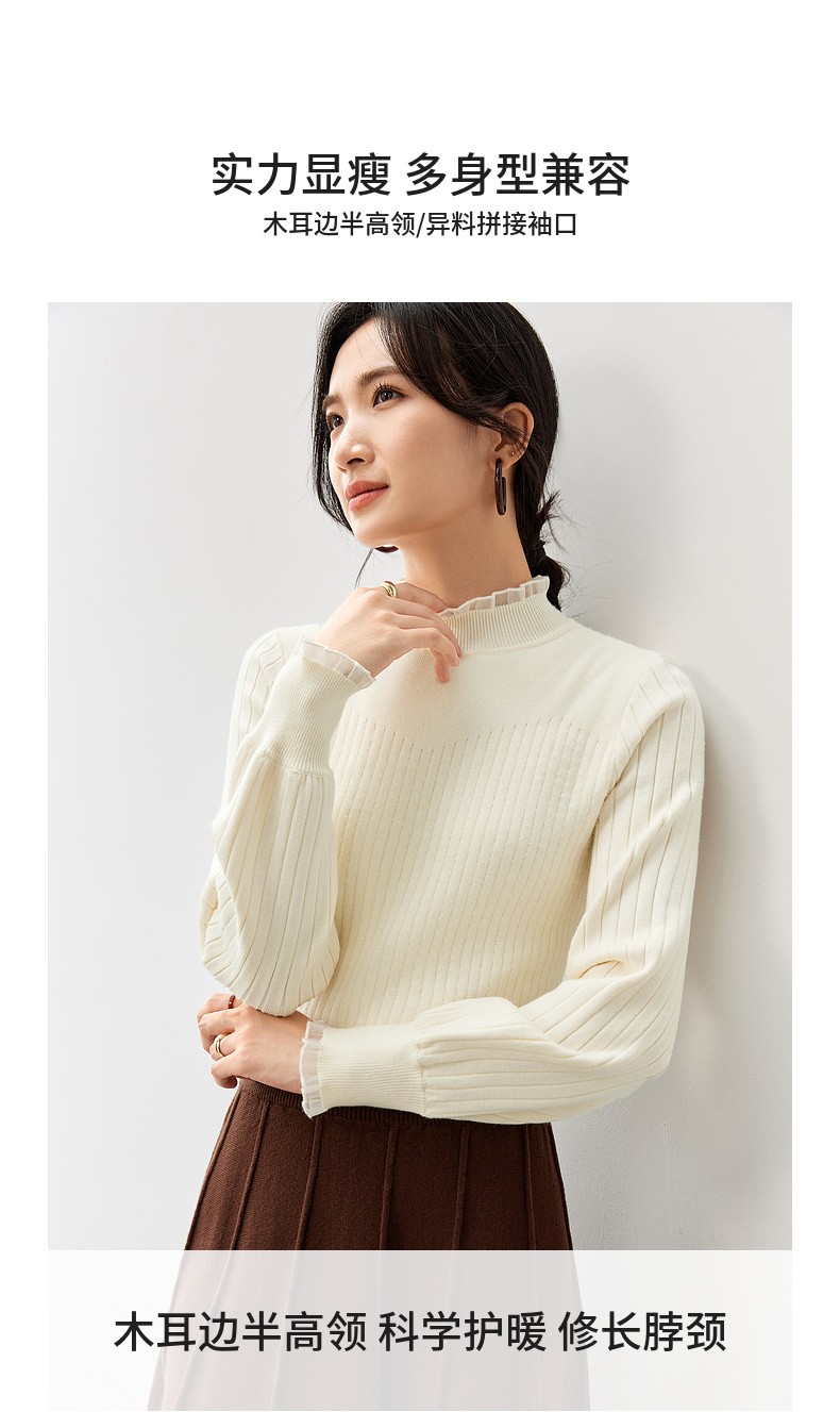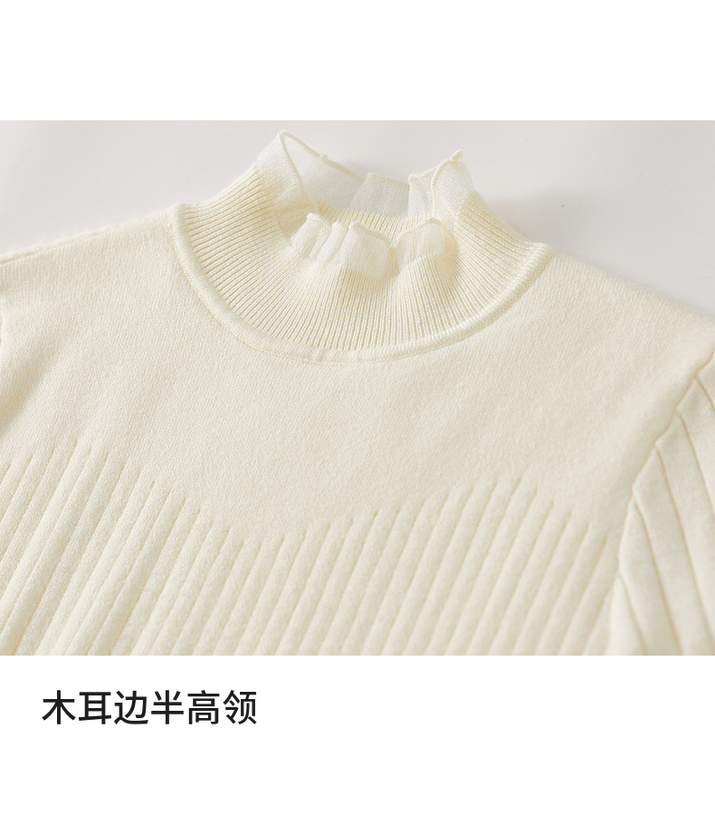 【内购】气质舒适优雅打底衫异料拼接木耳领修身显瘦长袖毛衣-W44E56588