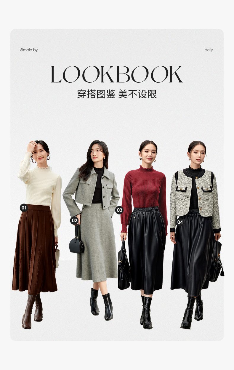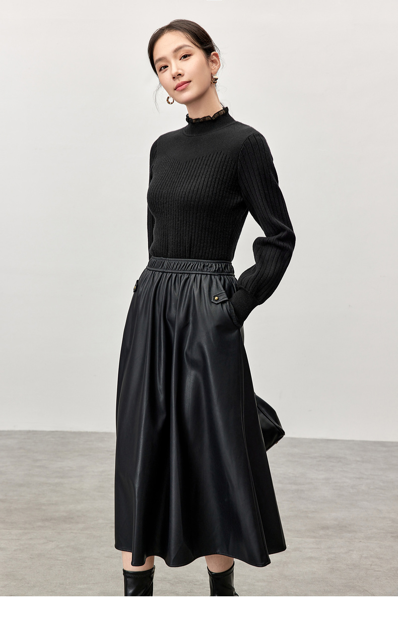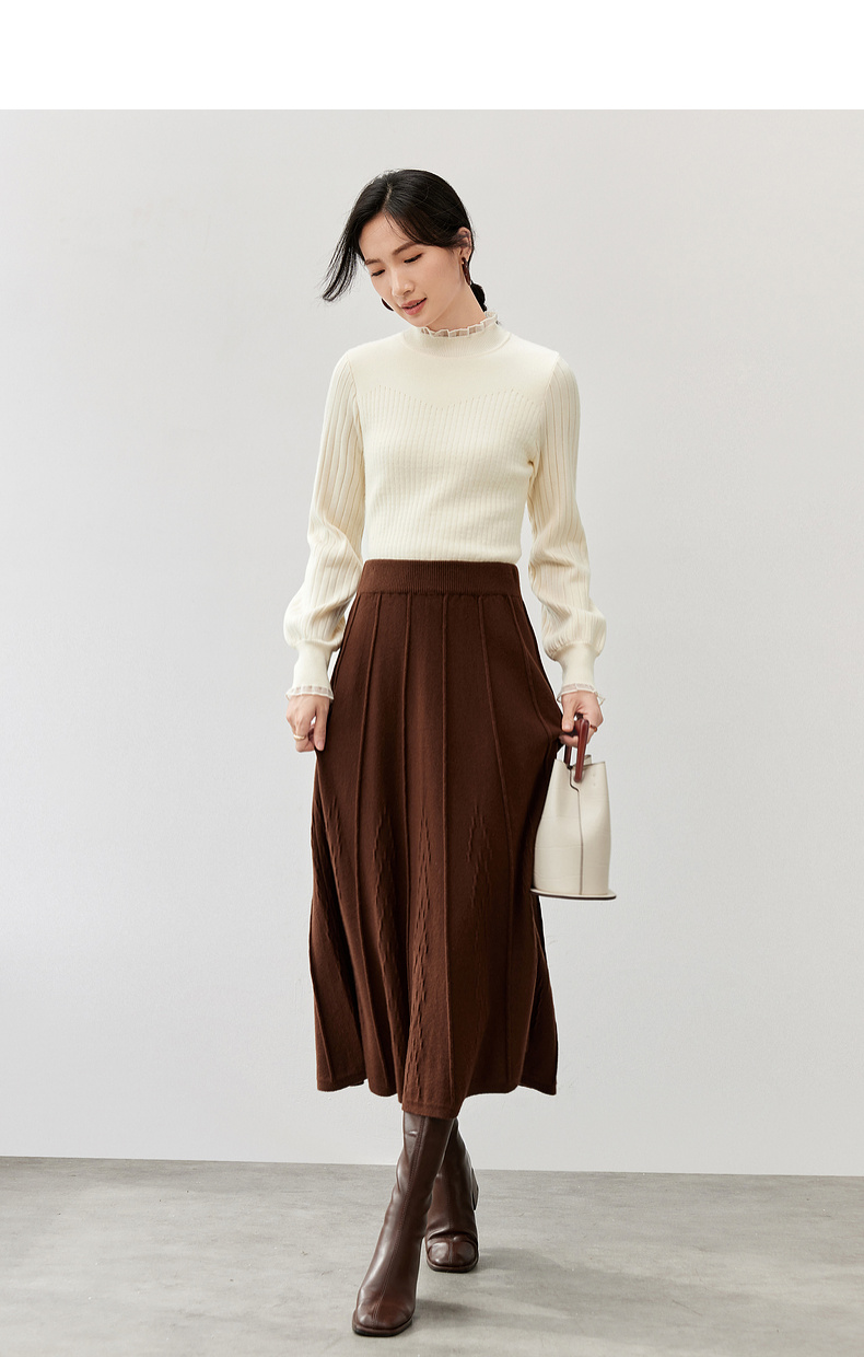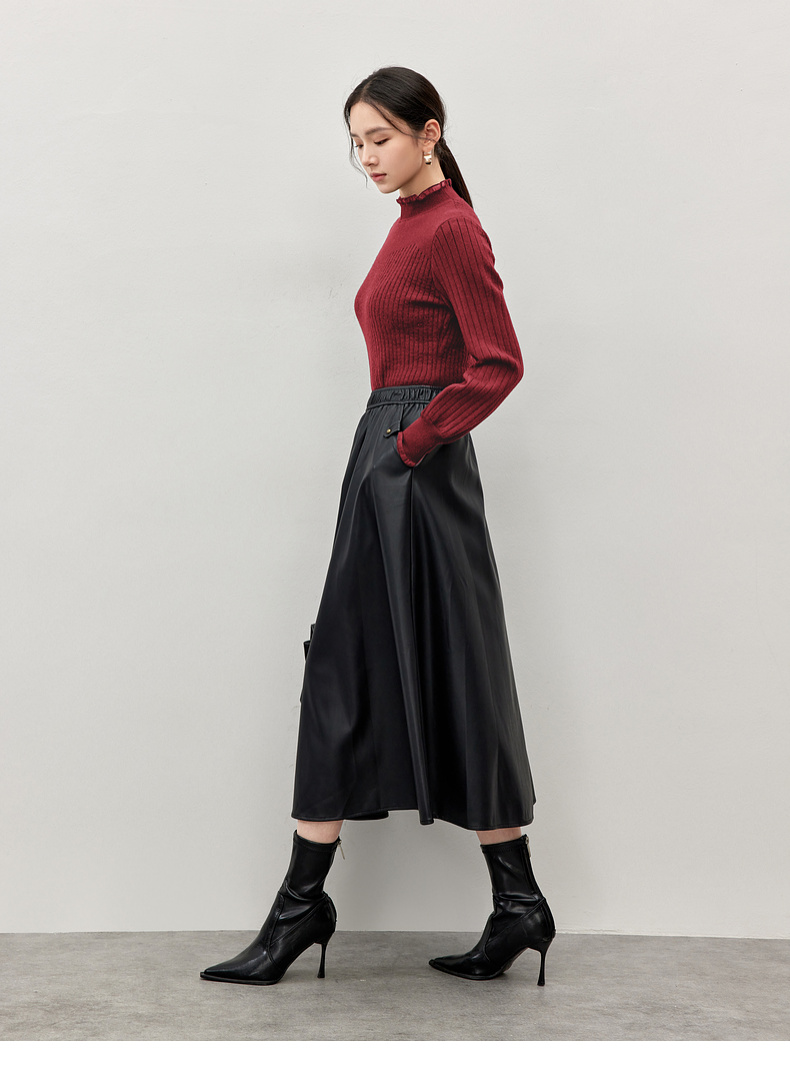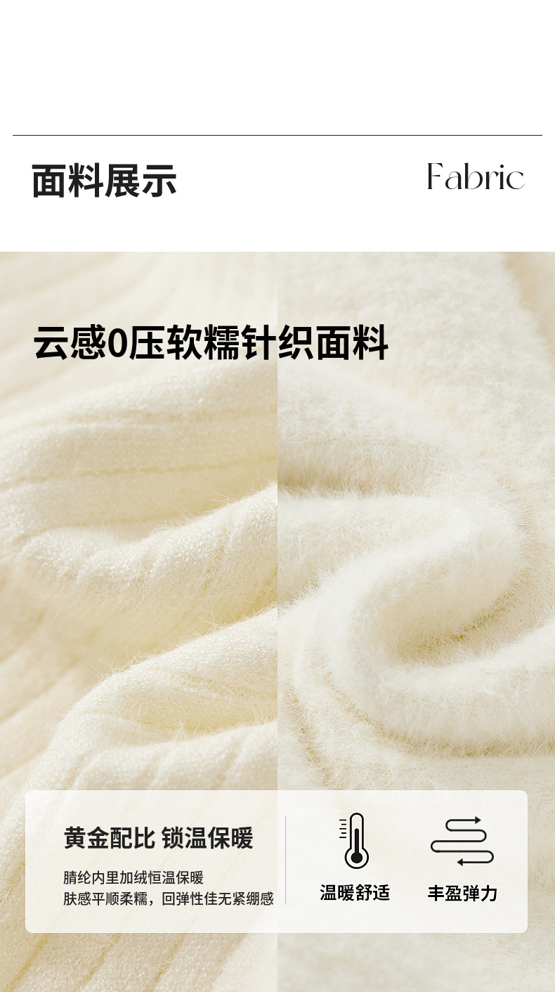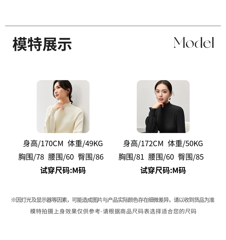 【内购】气质舒适优雅打底衫异料拼接木耳领修身显瘦长袖毛衣-W44E56588