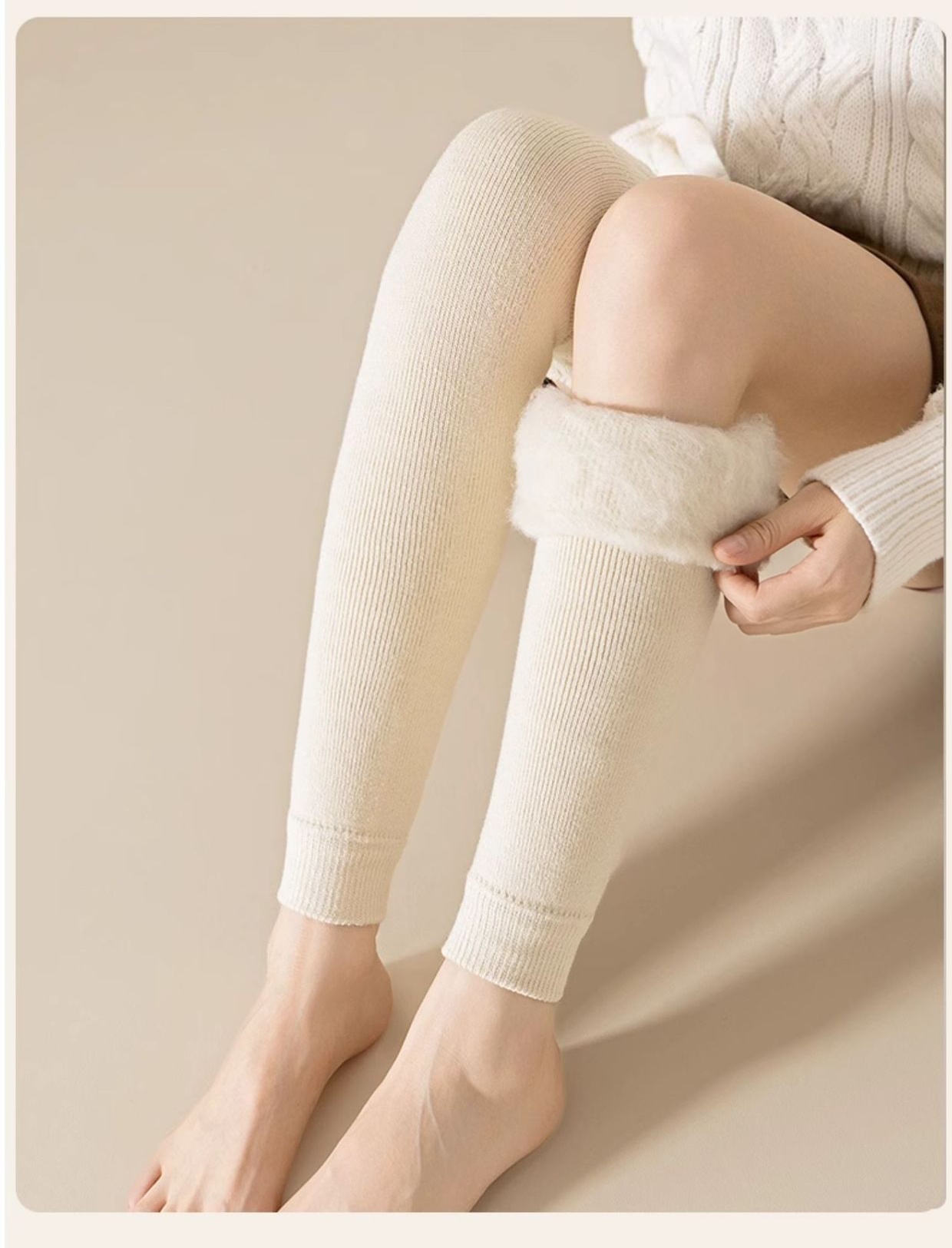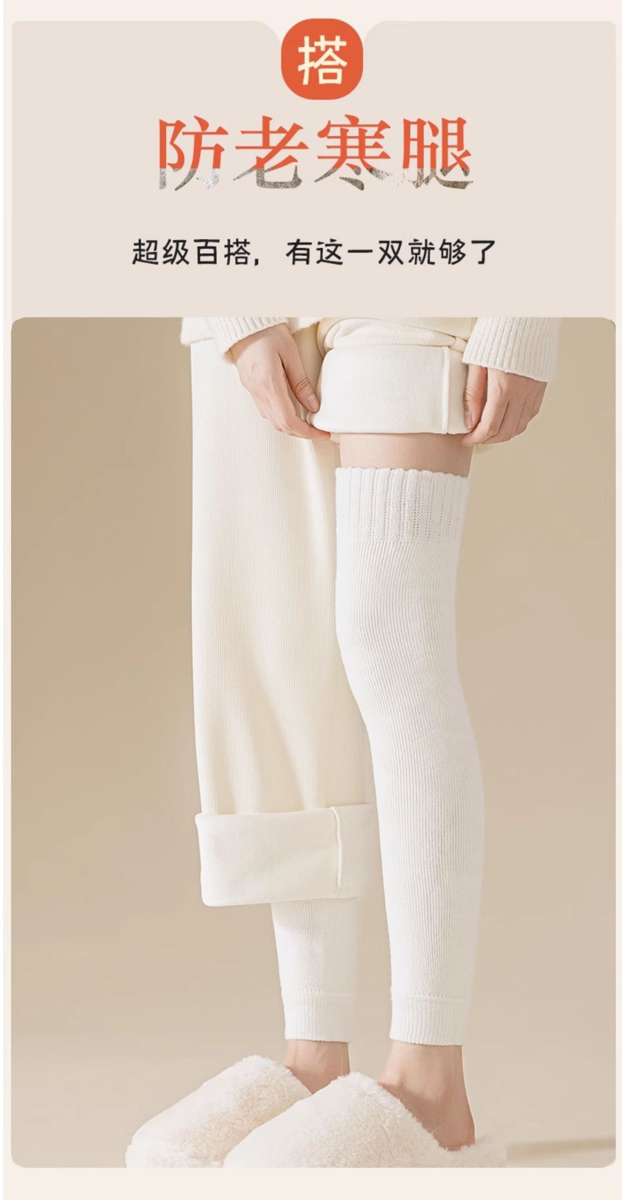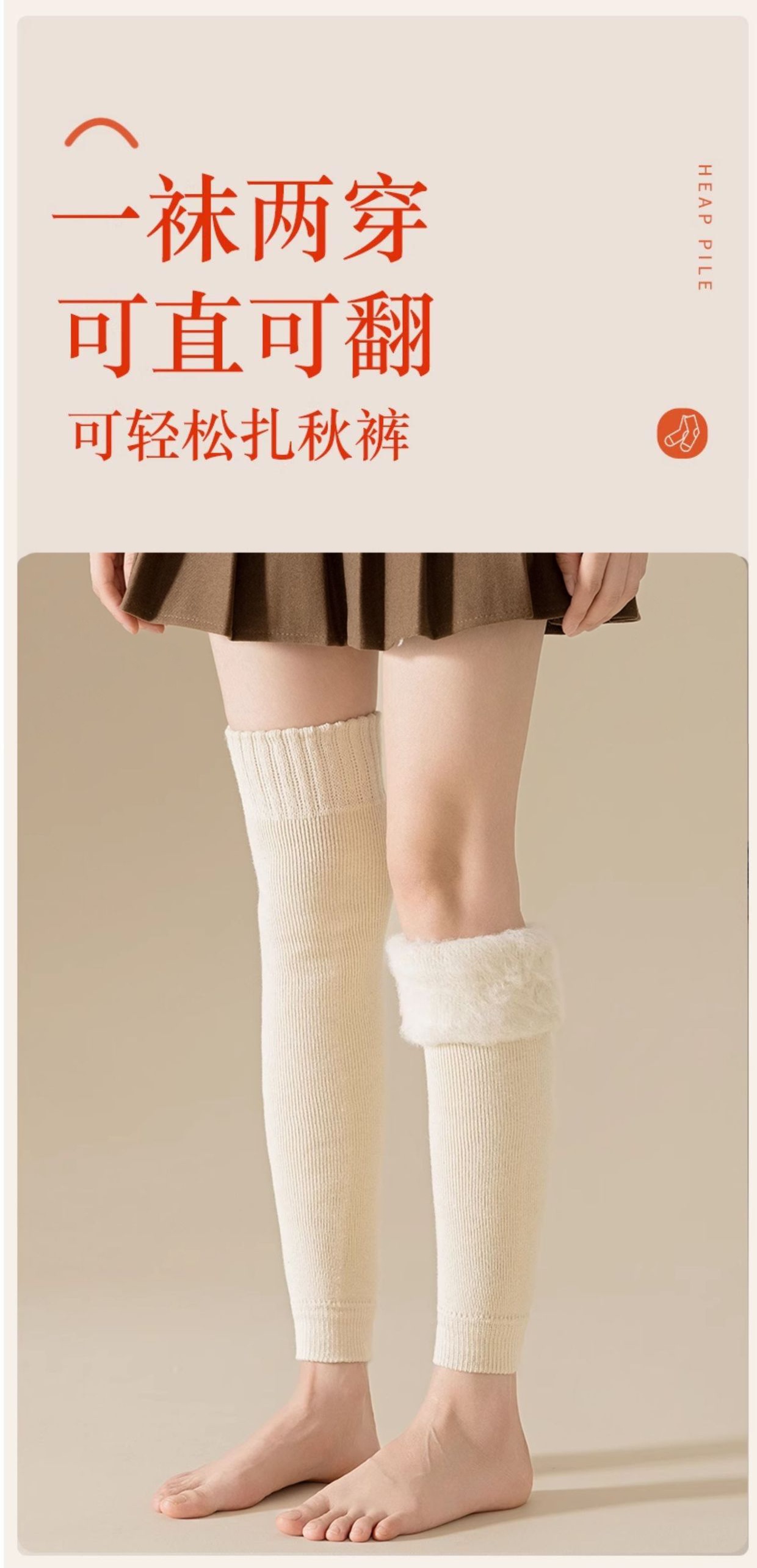 「DANMO加绒护膝袜」厚实锁温恒温保暖 加绒加厚保暖毛绒 一袜两穿 可直可翻 弹力袜筒 不易下滑