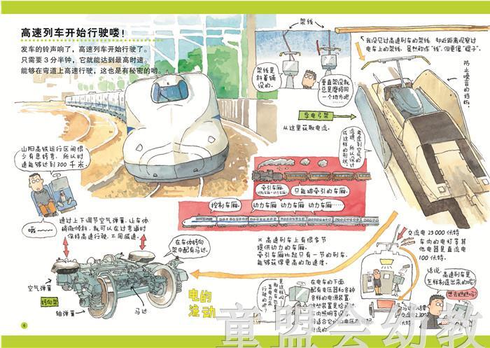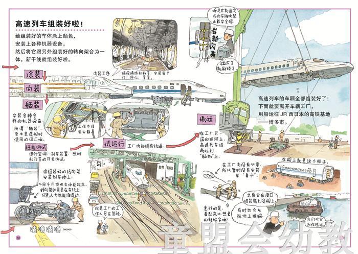 《高速列车的秘密》是我社出版的儿童职业教育启蒙绘本,适合3岁以上儿童阅读。森永队长和机器人罗宝为了满足高铁亲子爱好者的愿望,深入高铁第一线,对大受孩子们欢迎和好奇的高速列车从性能的秘密、车辆工场的流程,以至铁轨线路的构造进行了生动有趣的描绘。最吸引人的,要数中间两张大拉页的子弹头高速列车的车辆基地——博多综合车辆所,由两侧拉开,子弹头高铁基地一览无余,颇为壮观,为该绘本的一个亮点。这本绘本除了让我们对交通工具更加产生亲近感之外,汽车爱好者的亲子们还可以把这本绘本当做交通工具的知识图鉴来看,可以收获长久的快乐。本书获日本全国学校图书馆协会选定图书和日本图书馆协会选定图书。