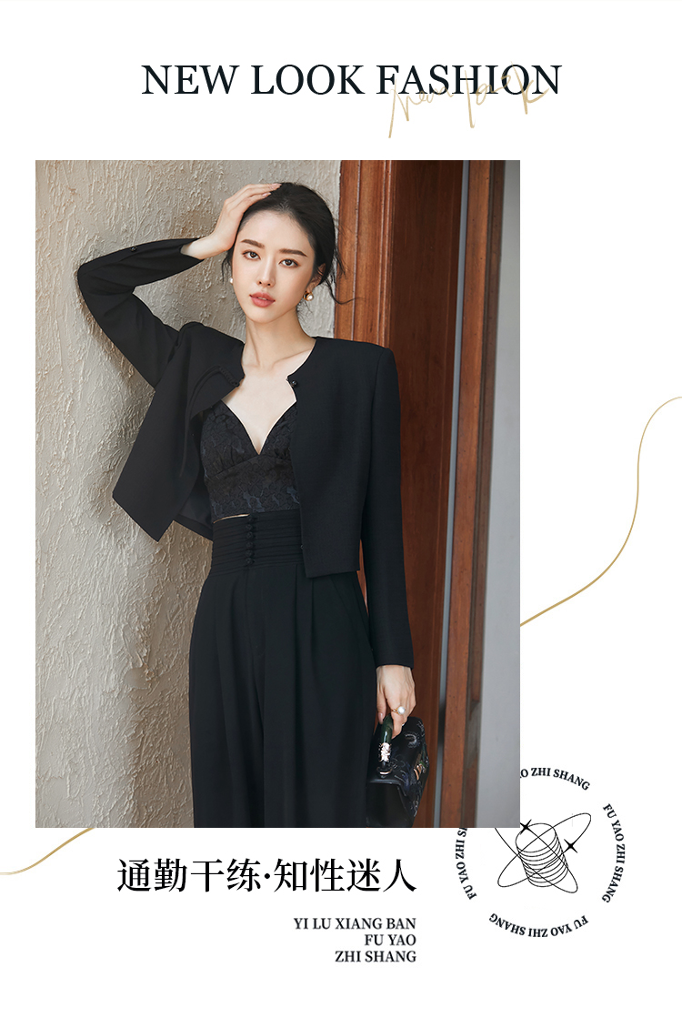 IWY/扶摇系列 秋季设计感国风盘扣短外套高腰宽松阔腿裤 FYC205+FYP205