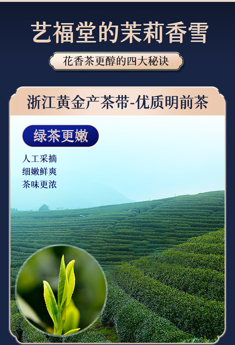 艺福堂茶叶 茉莉香雪浓香茶250g*2窨制茶叶