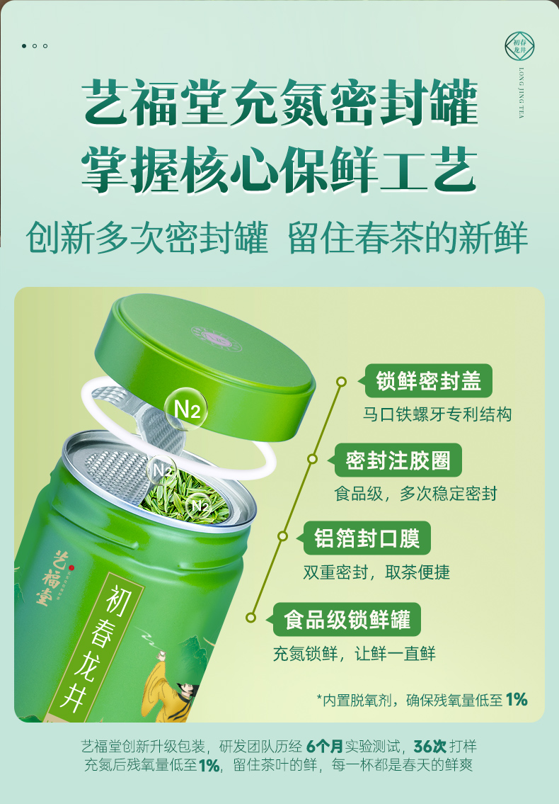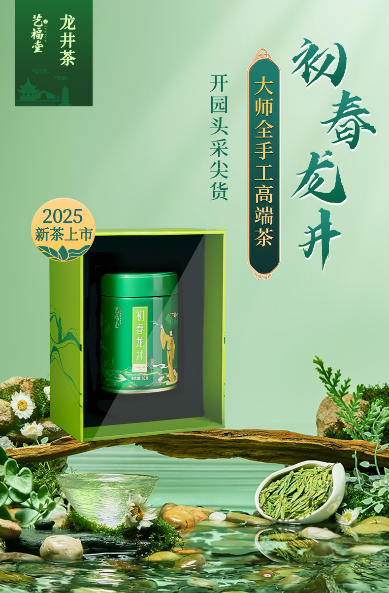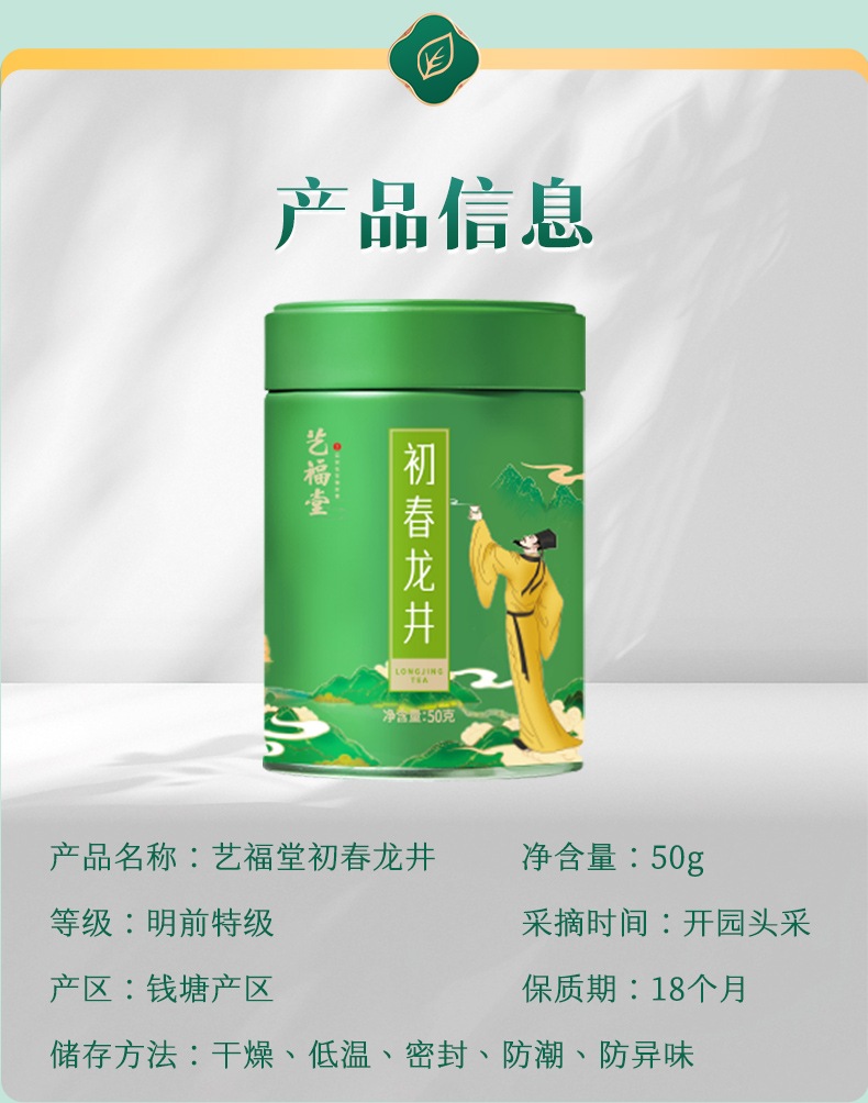 【新茶上市 买就送水晶杯+手提袋】艺福堂2025新茶初春龙井茶50g/罐EFU18+明前头采特级 钱塘龙井茶