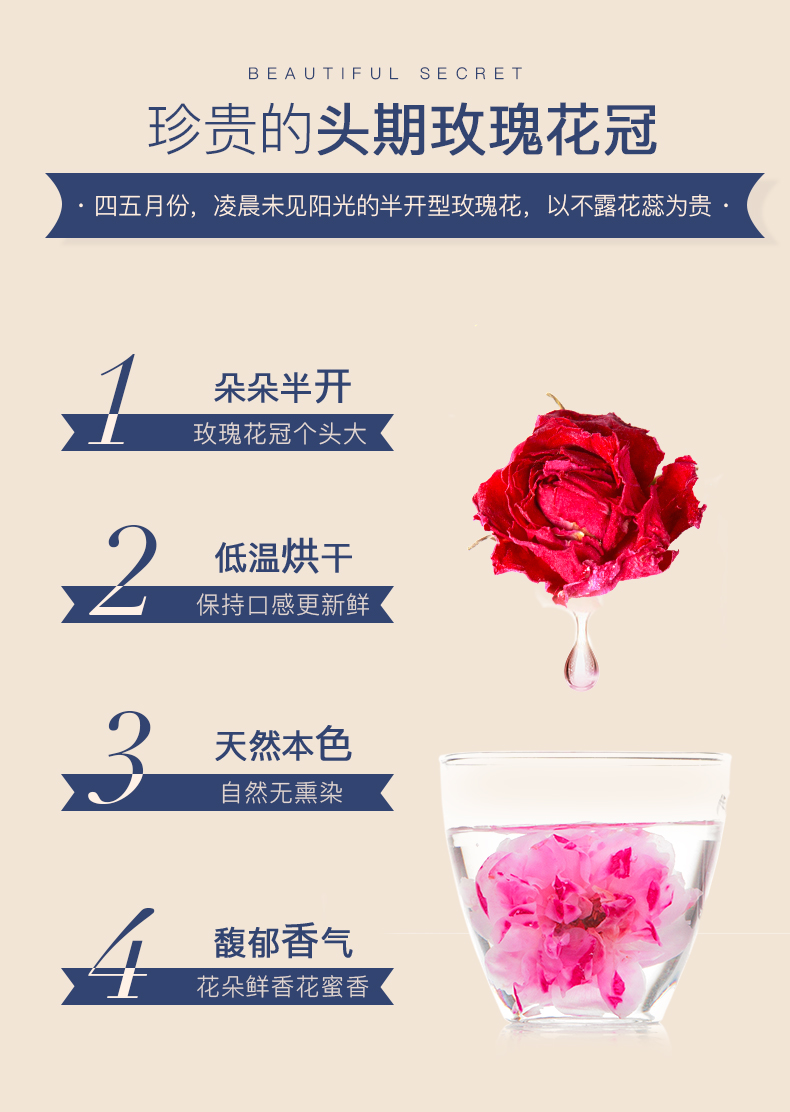 【专区3件83折】艺福堂 玫瑰花冠茶 特级大朵花茶 重瓣红玫瑰 40g/盒