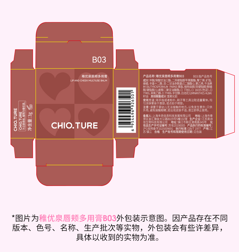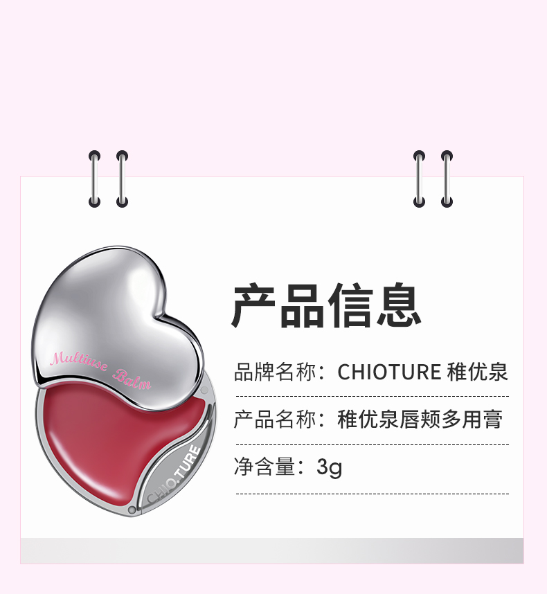 稚优泉(CHIOTURE)爱心唇颊多用膏一膏成妆凝冻慕斯嘭润双颊