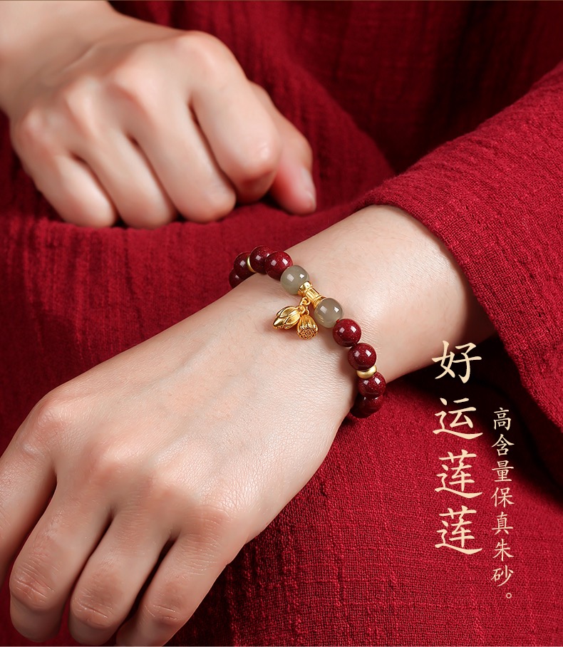 BAOFANDI宝梵迪和田玉福莲桃花步步高升竹节两世欢福禄高保真朱砂手链(买一送一!)