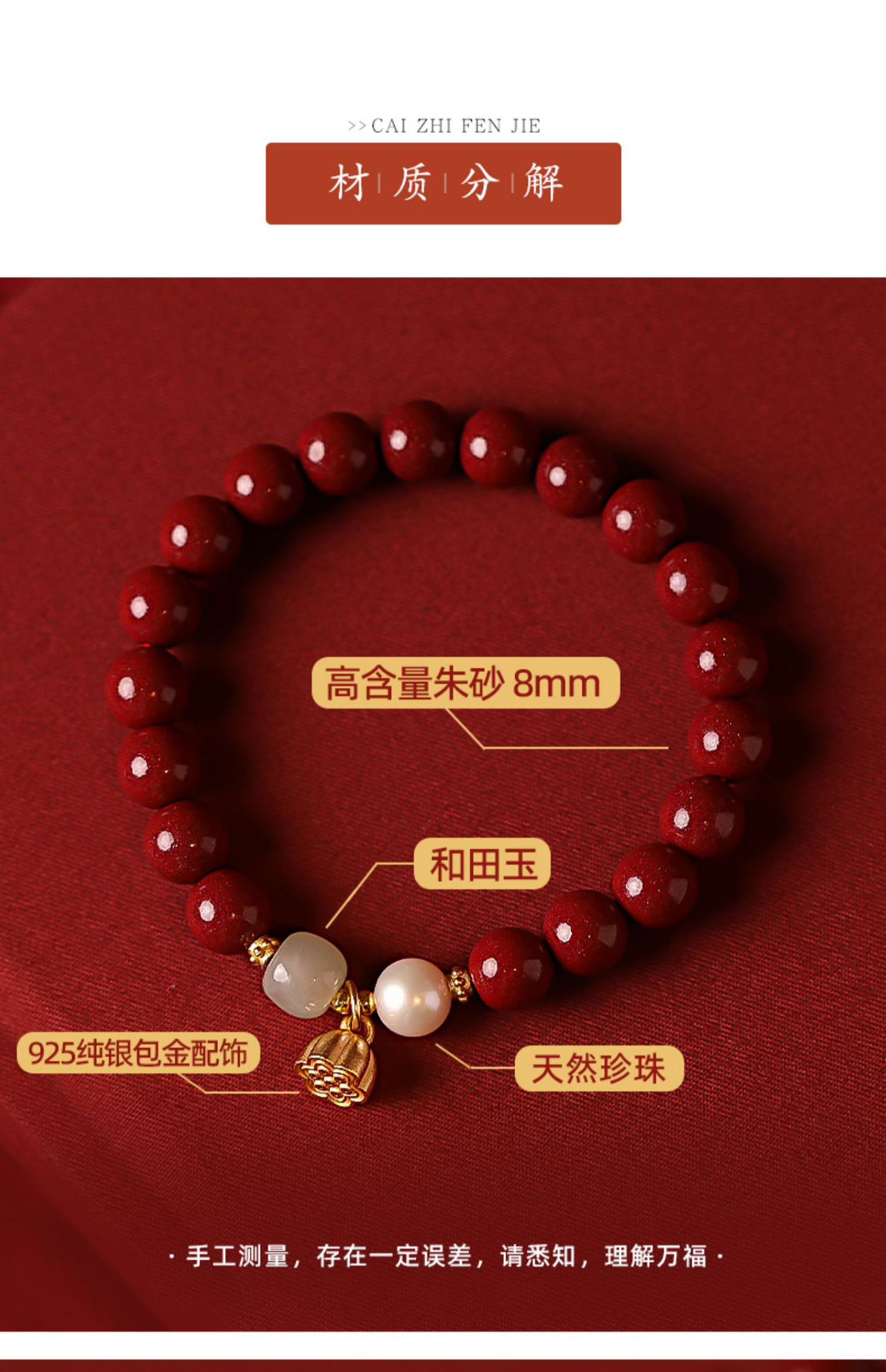 材质:朱砂-和田玉-合金配件