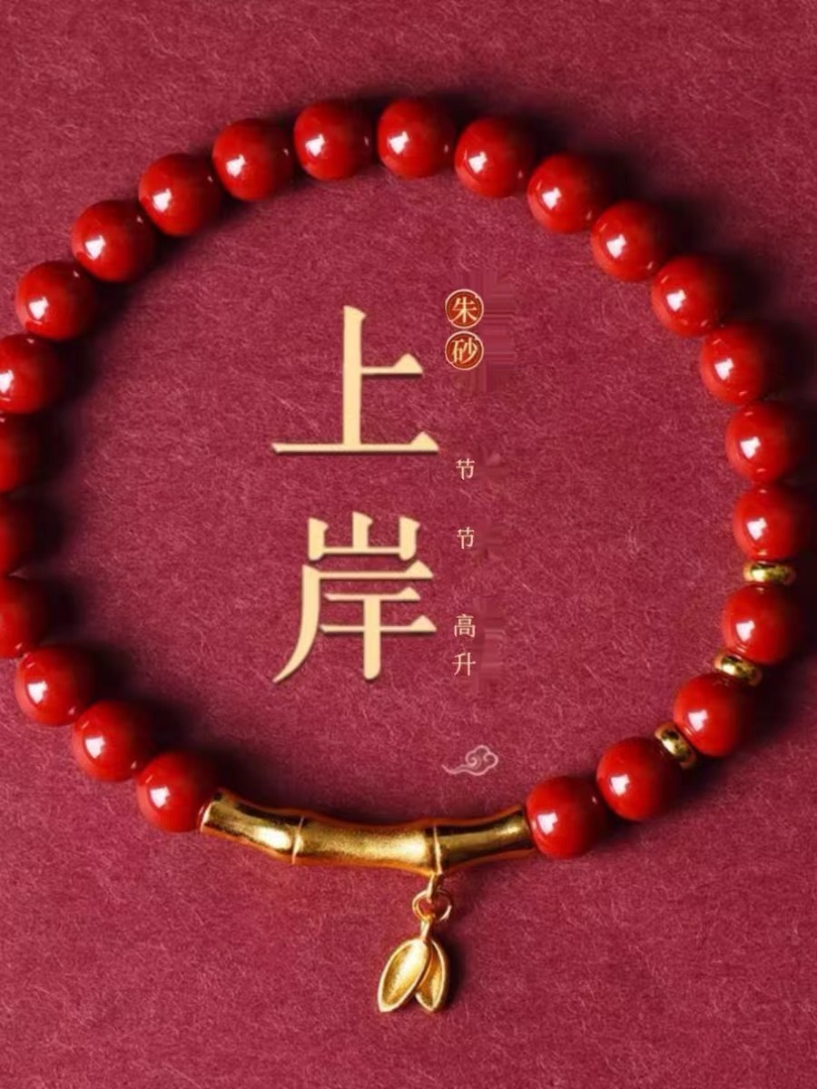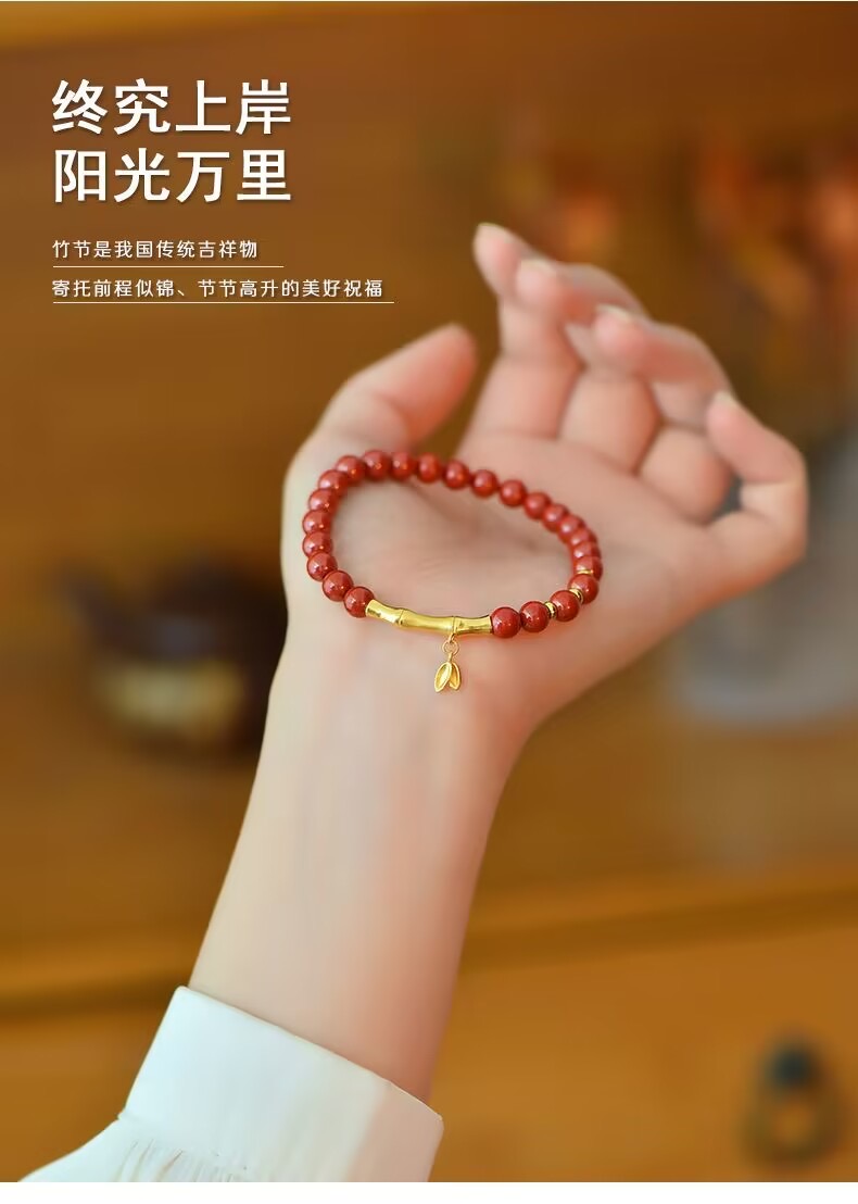 步步高升竹节朱砂手链,珠子直径约为6mm左右 链长约16cm左右