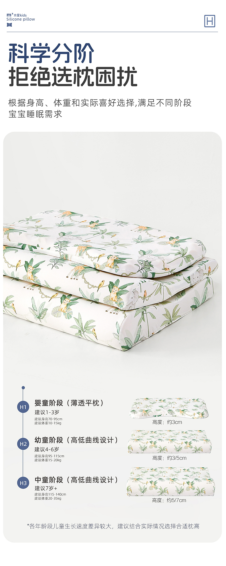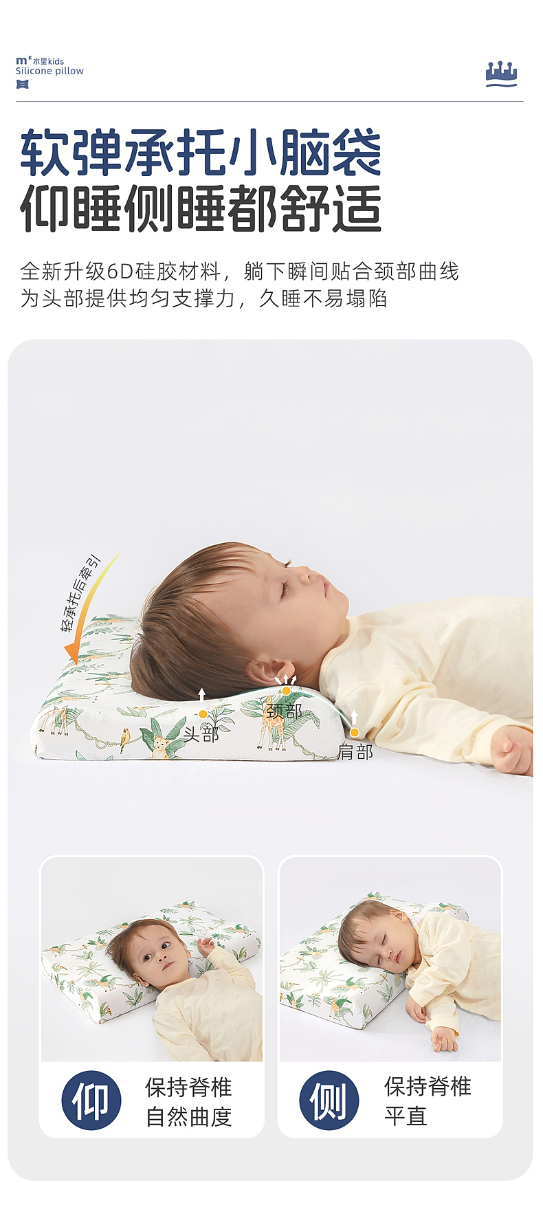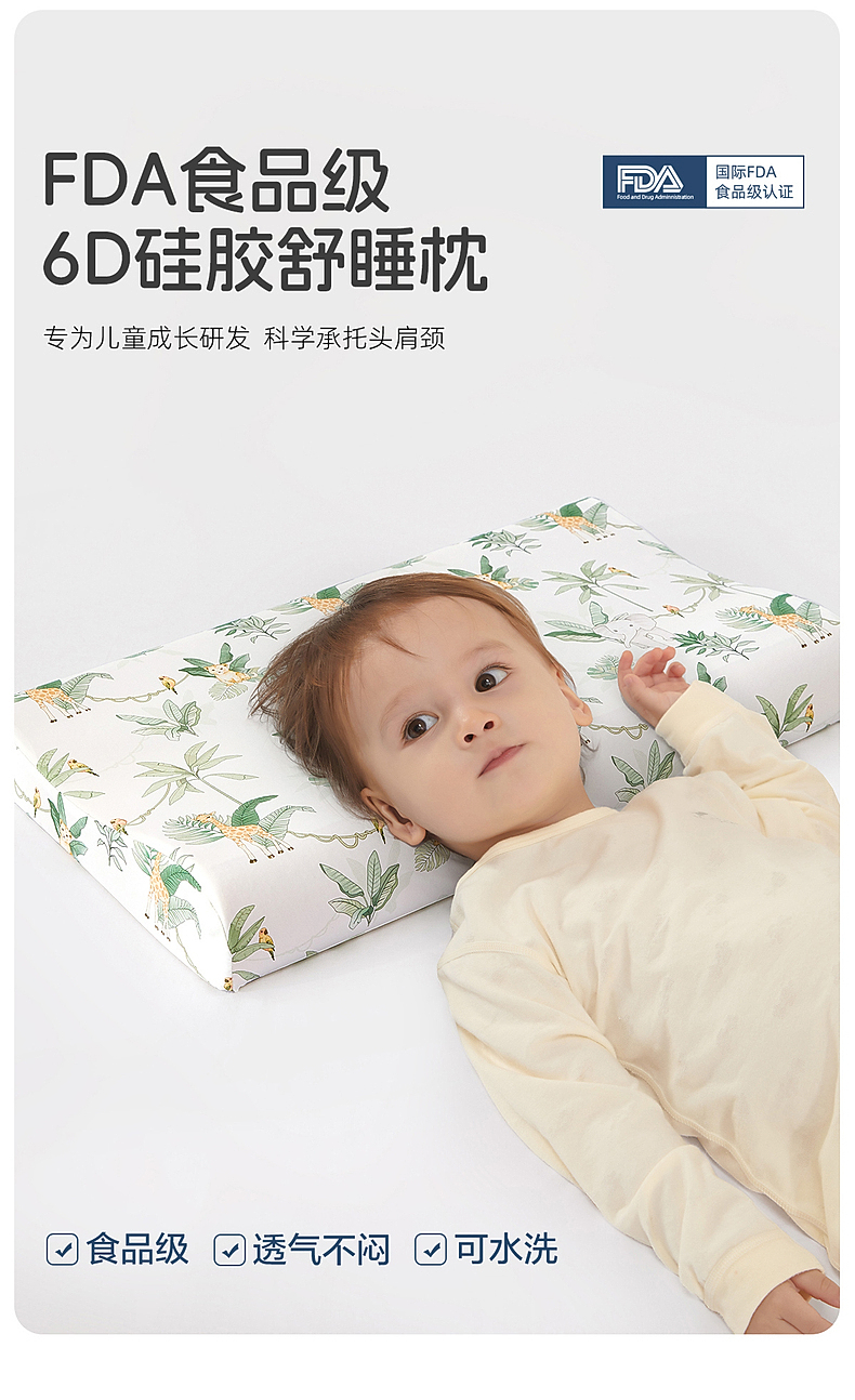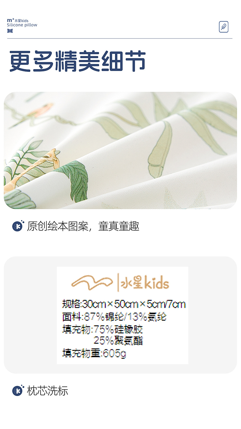 水星家纺儿童硅胶枕头