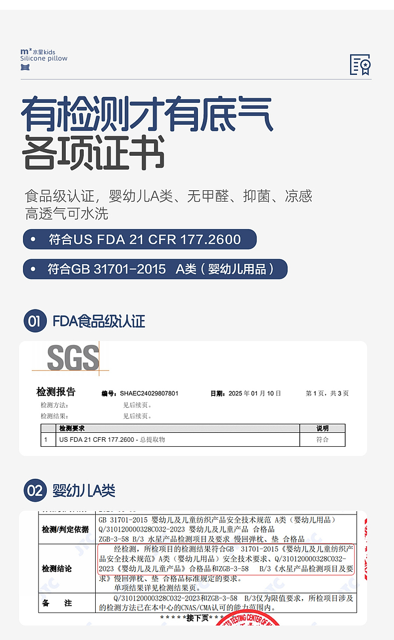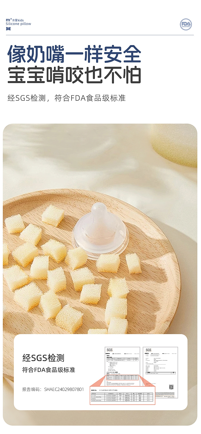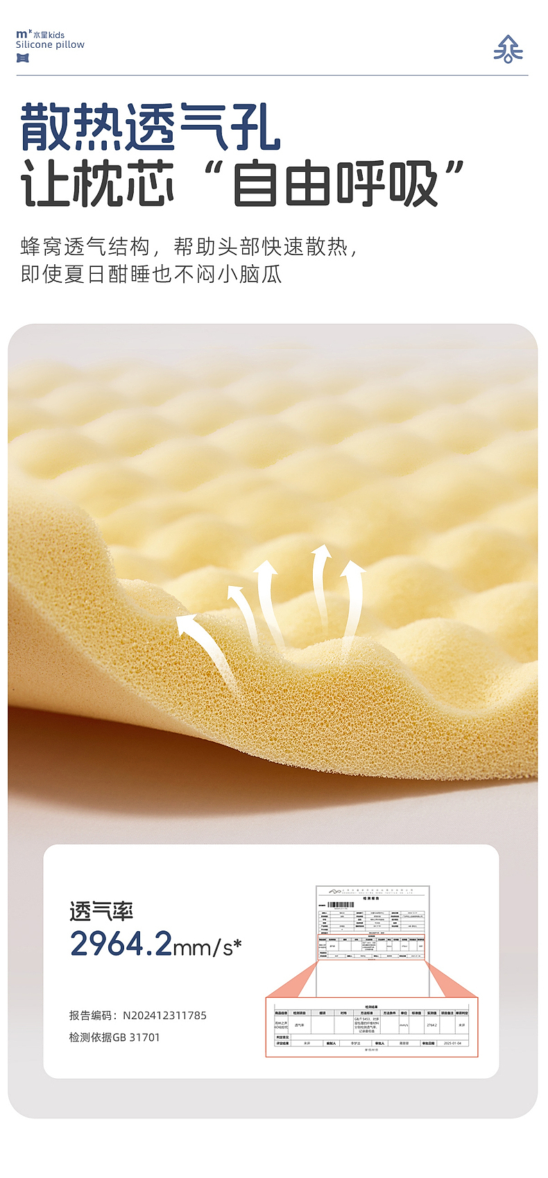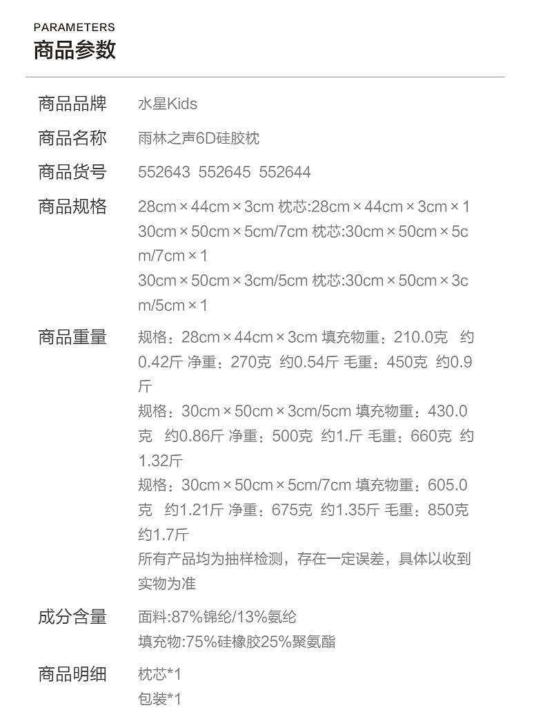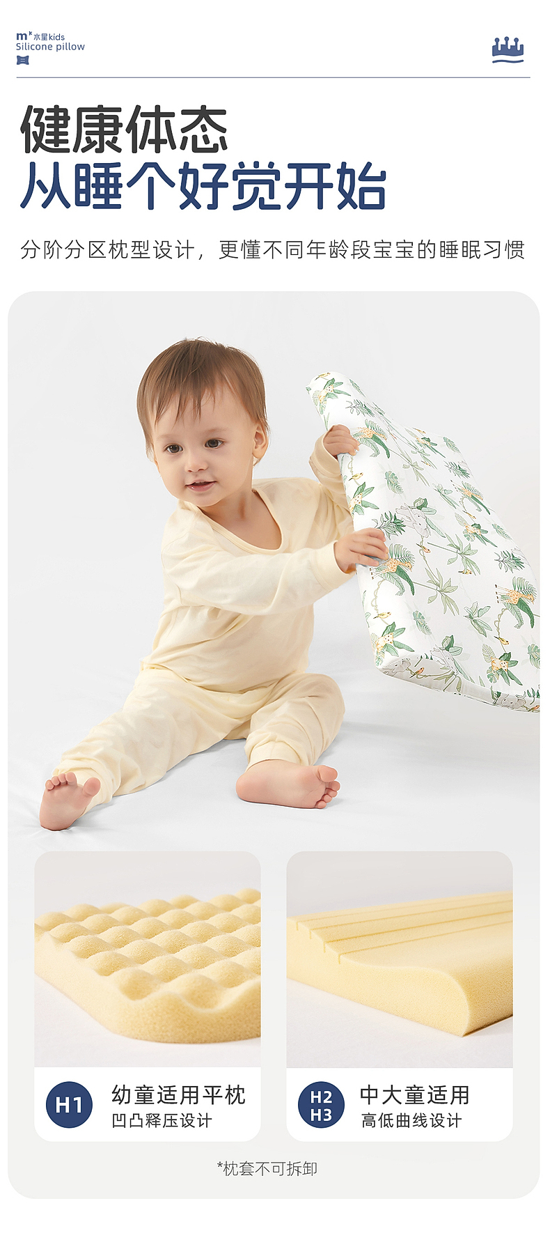 水星家纺儿童硅胶枕头