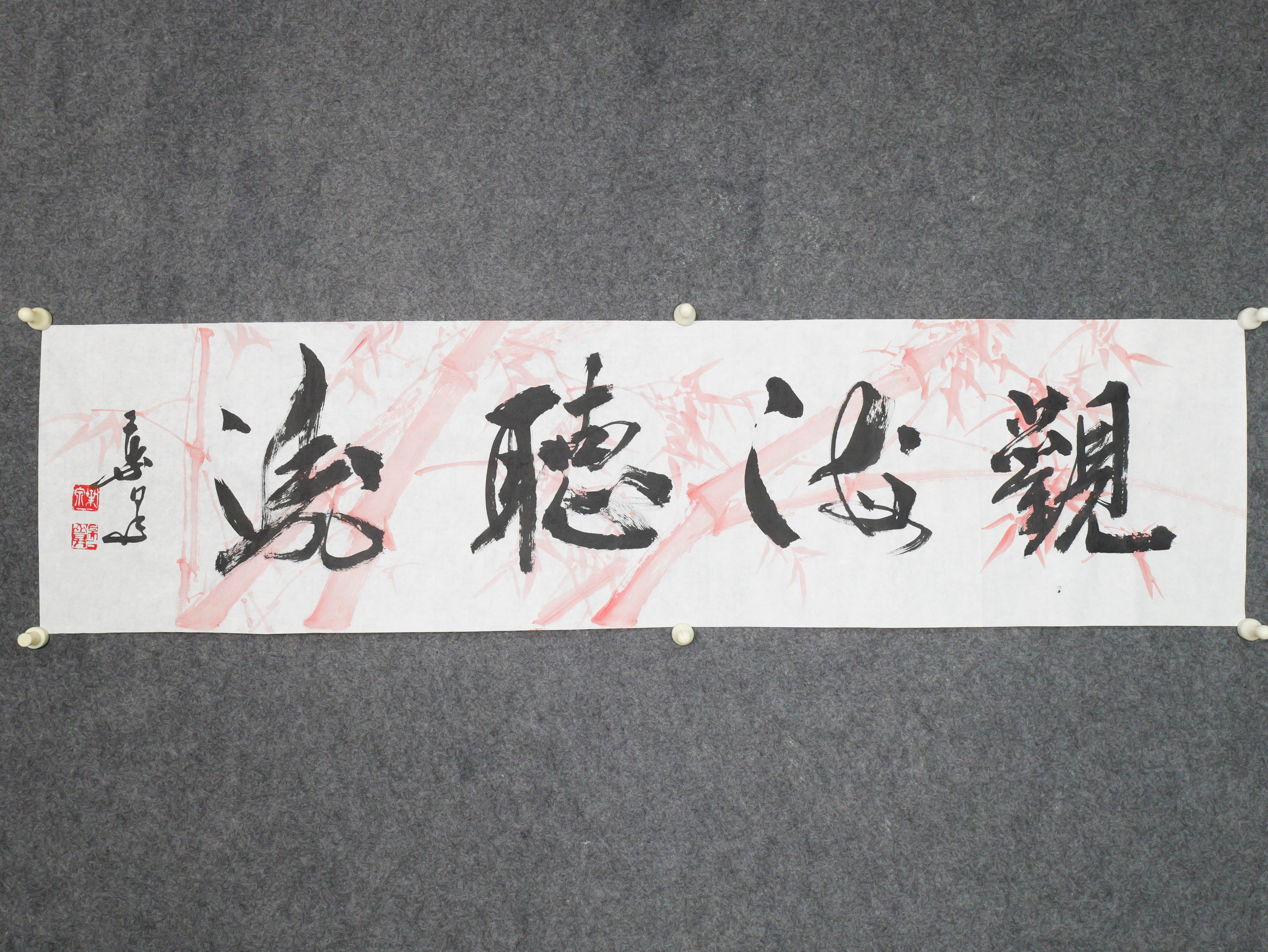 叶泉《观海听涛》书法原作35CM*138CM 手写宣纸四字吉语作品
