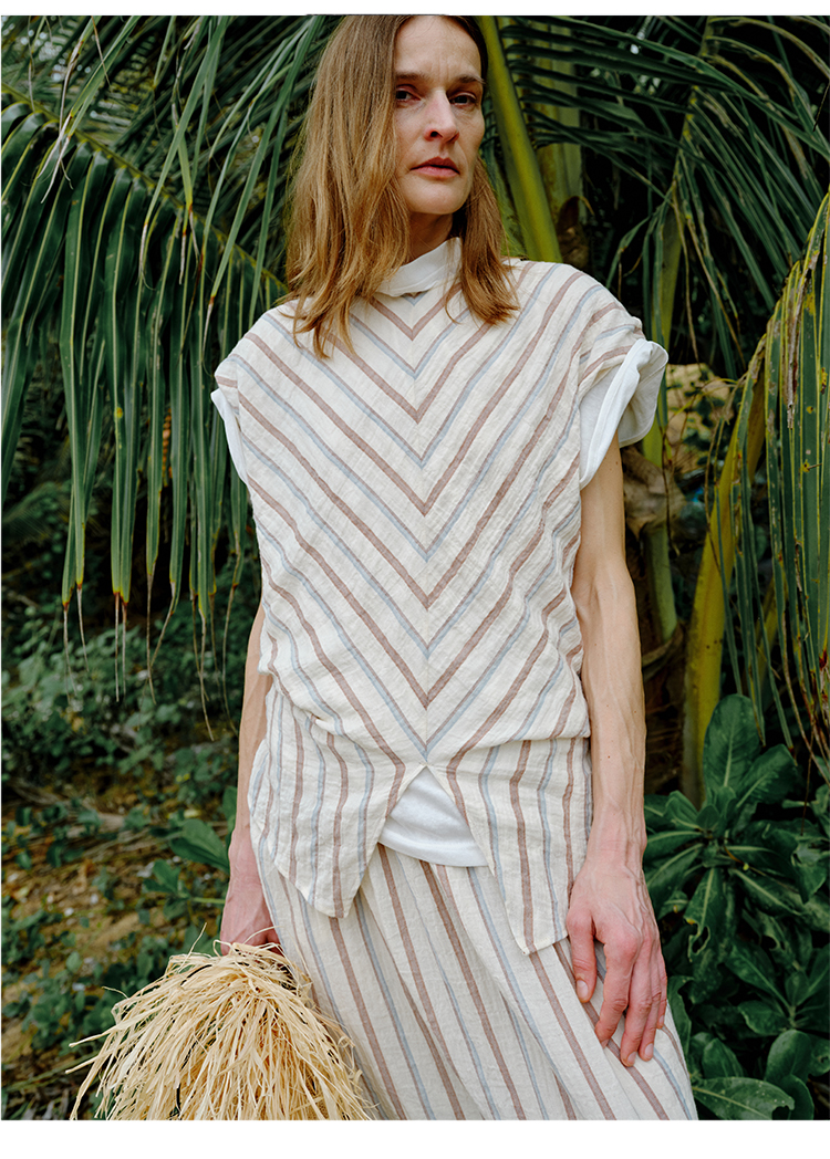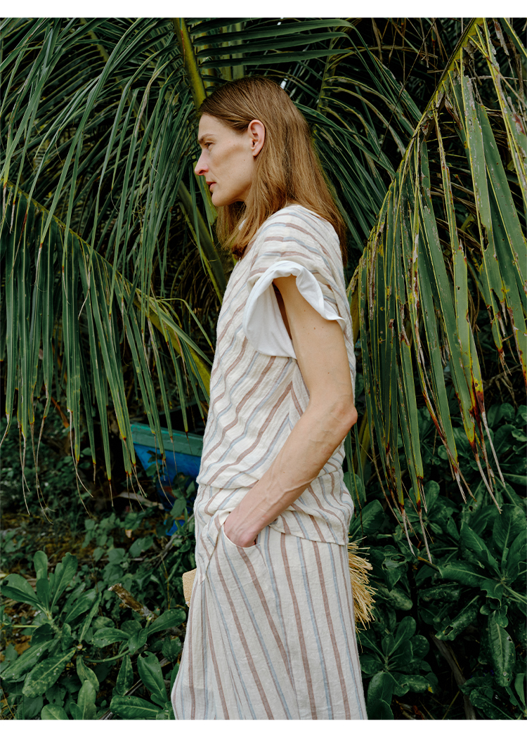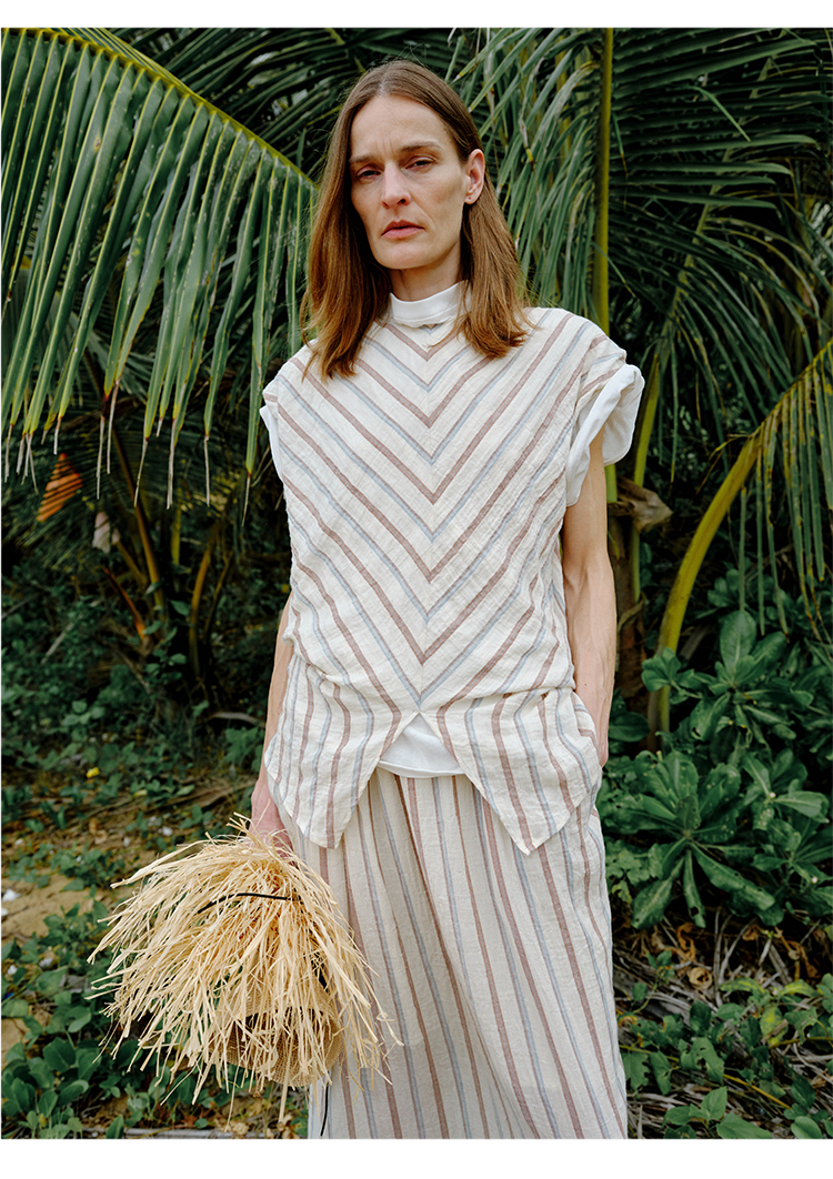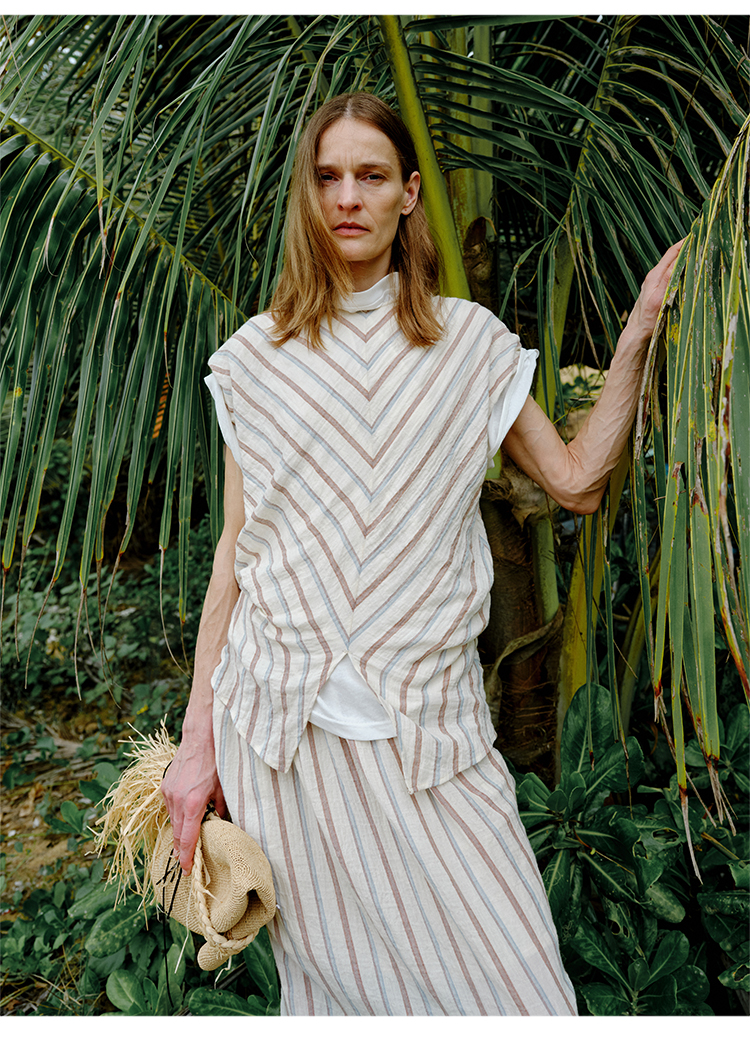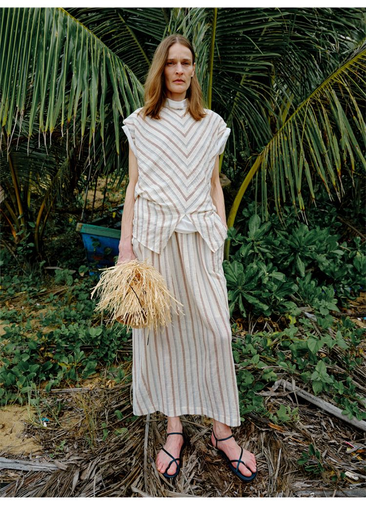 HIDEMI 度假系列水洗超柔软婴儿感色织条纹立体设计感套装 上衣/半裙