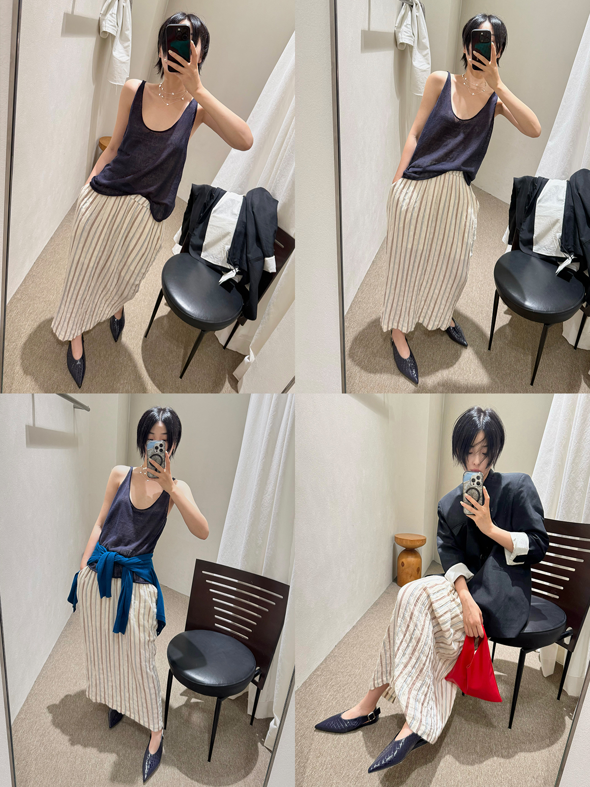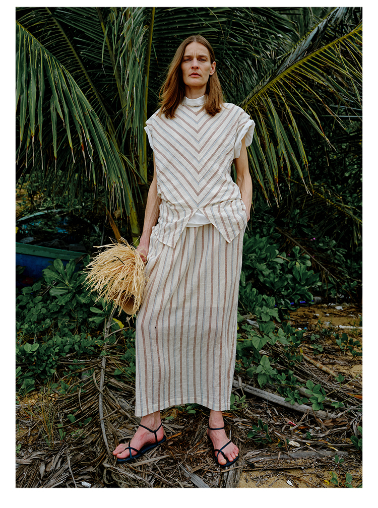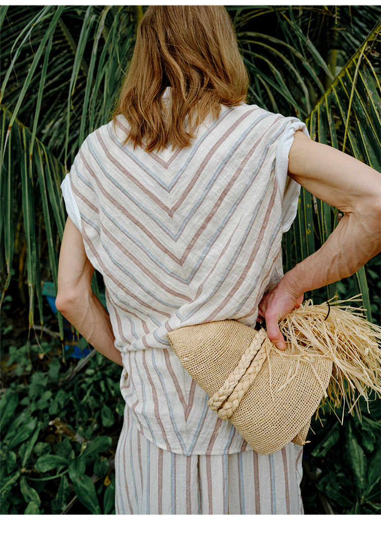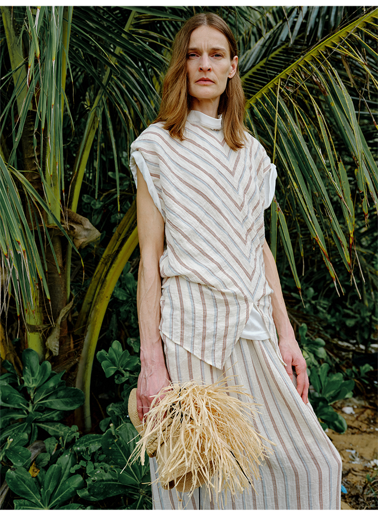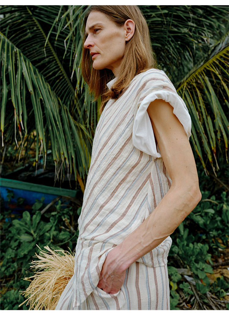 HIDEMI 度假系列水洗超柔软婴儿感色织条纹立体设计感套装 上衣/半裙