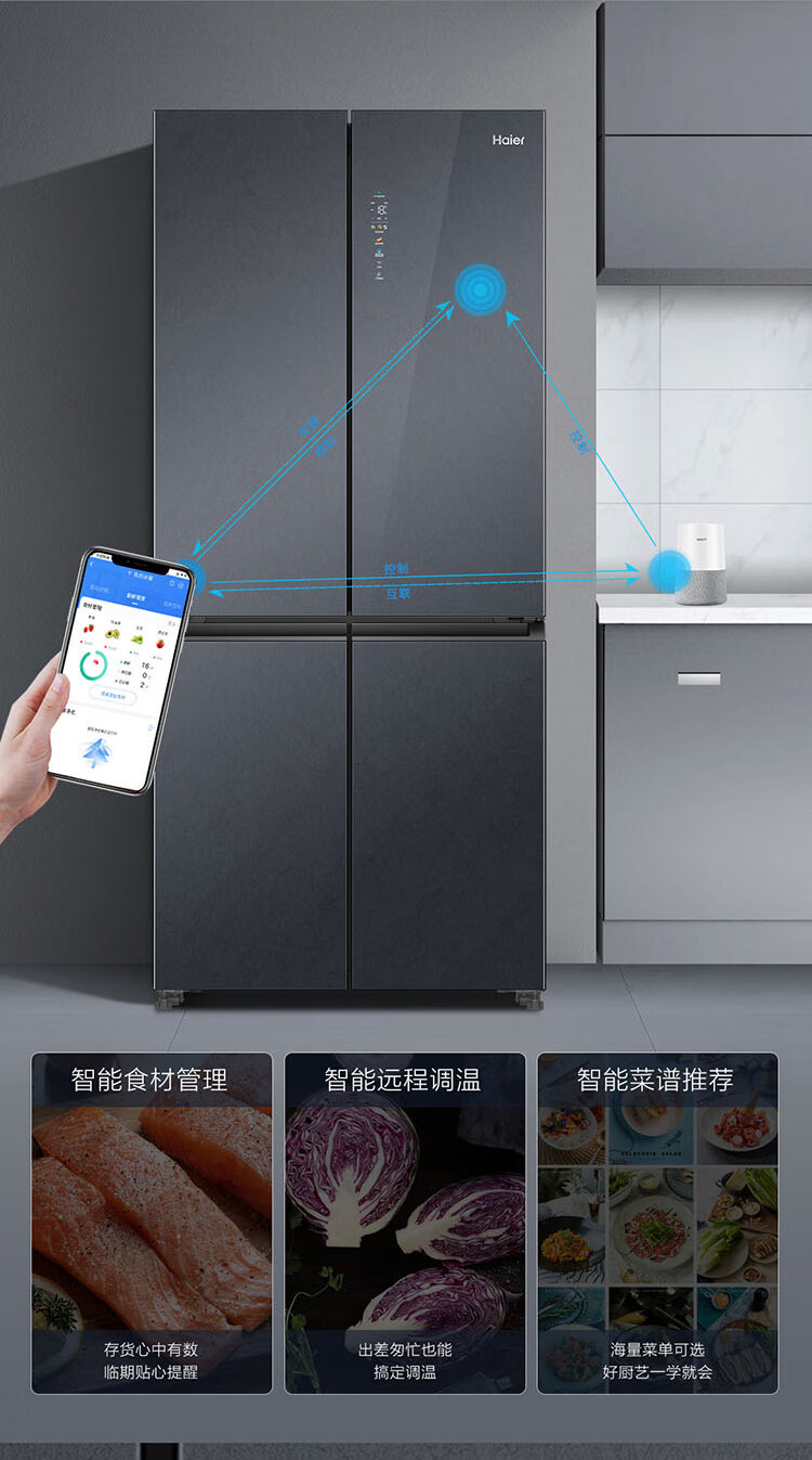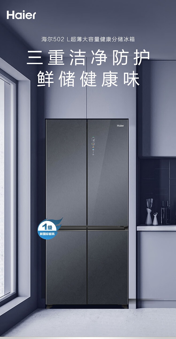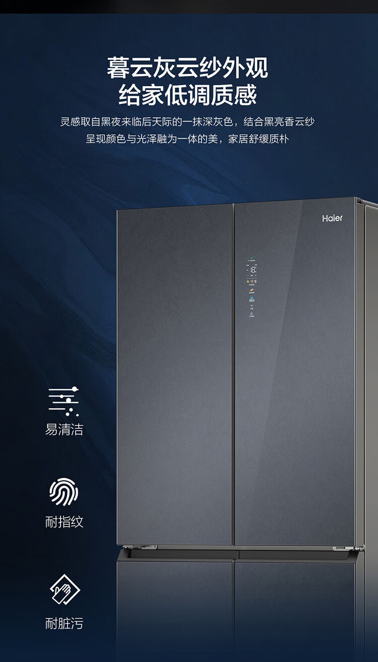 海尔冰箱502升十字对开门四开门母婴三档变温阻氧干湿分储EPP净味除菌一级双变频风冷无霜智能超薄冰箱 502L暮云灰+全域除菌净味+干湿分储+三档变温