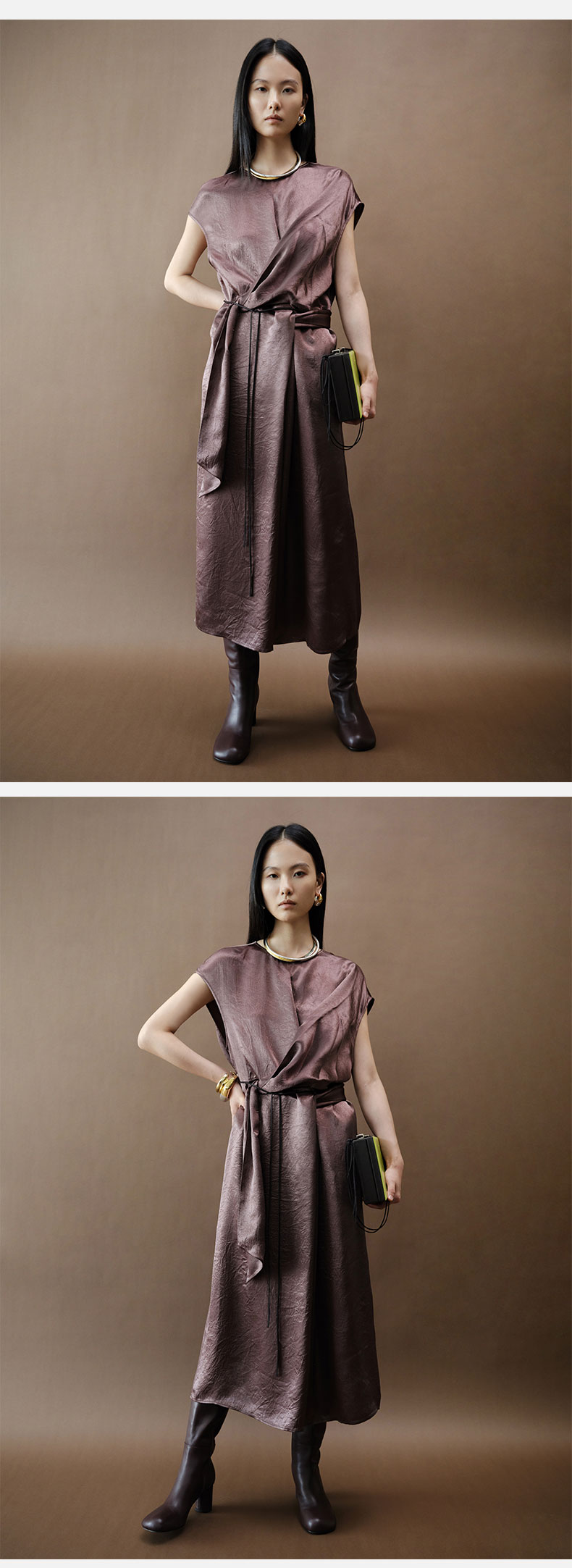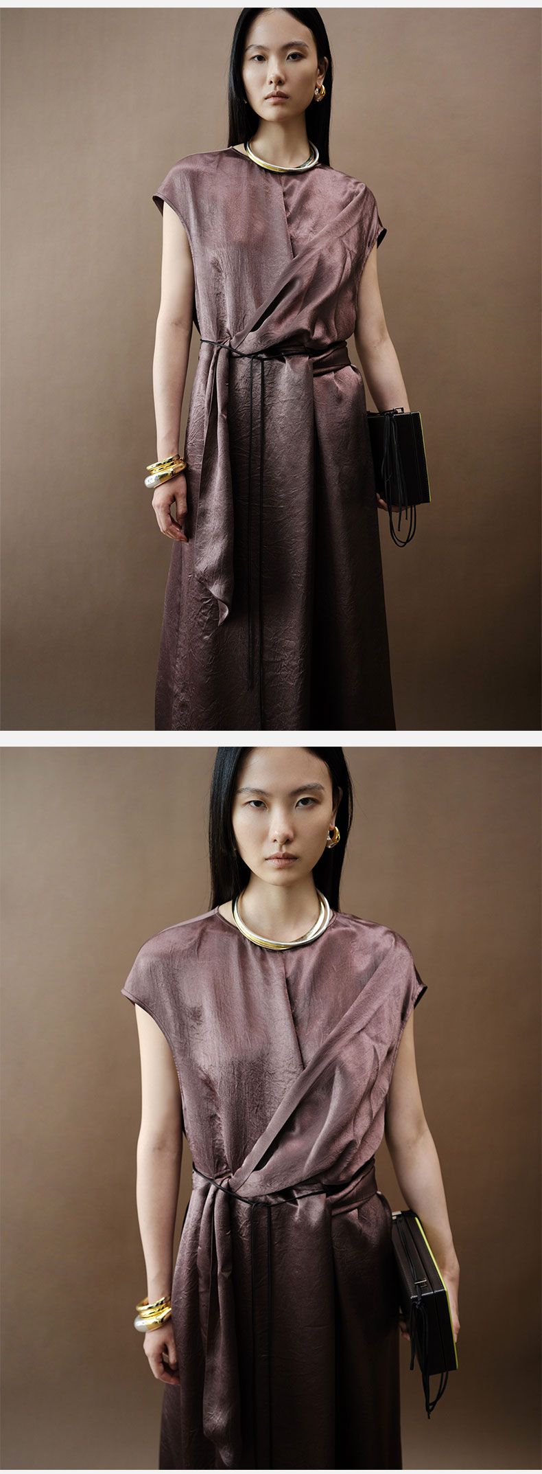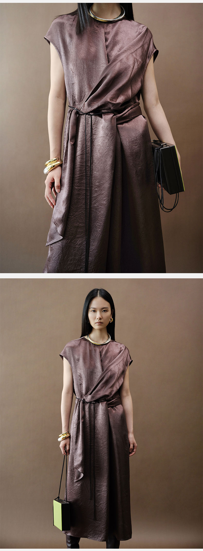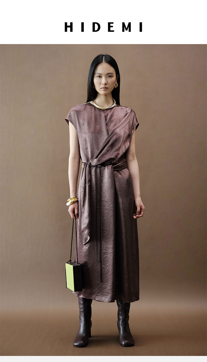 HIDEMI 波纹微褶醋酸绑带设计感连衣裙