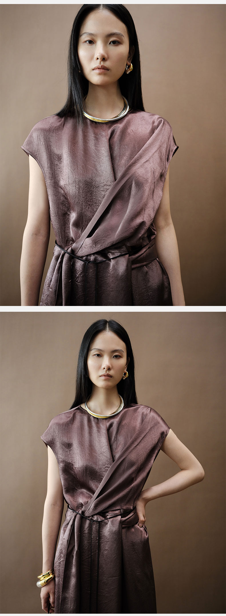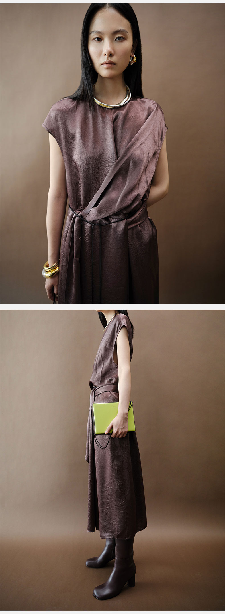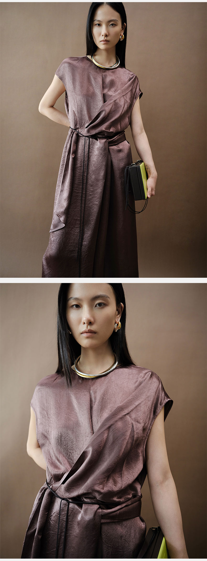 HIDEMI 波纹微褶醋酸绑带设计感连衣裙