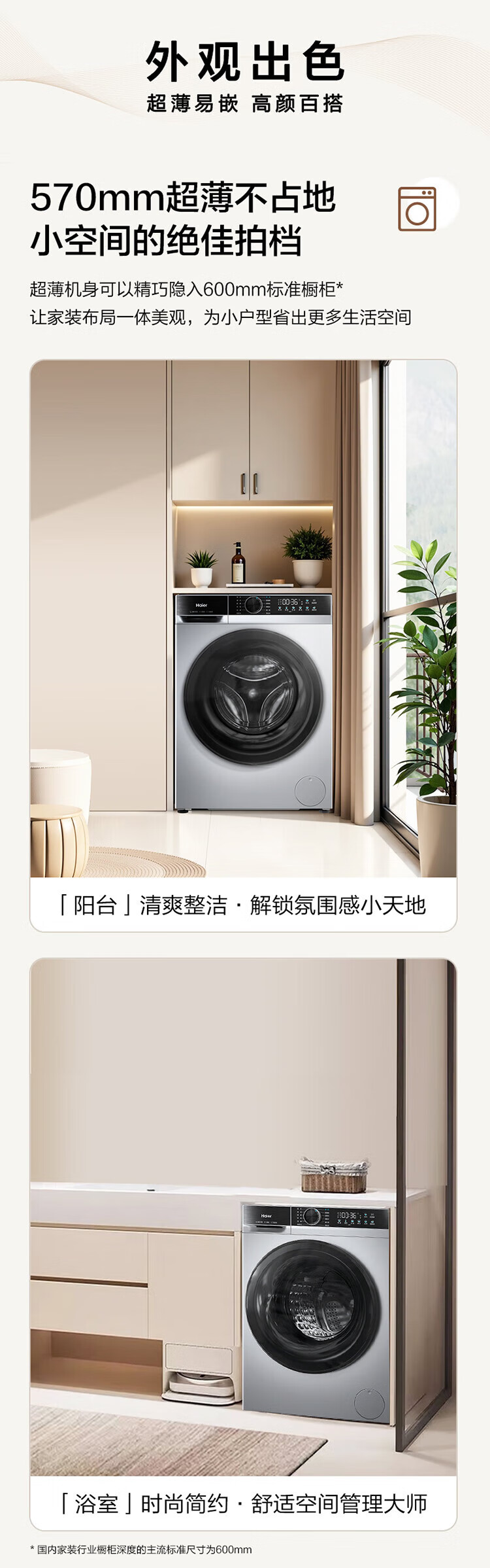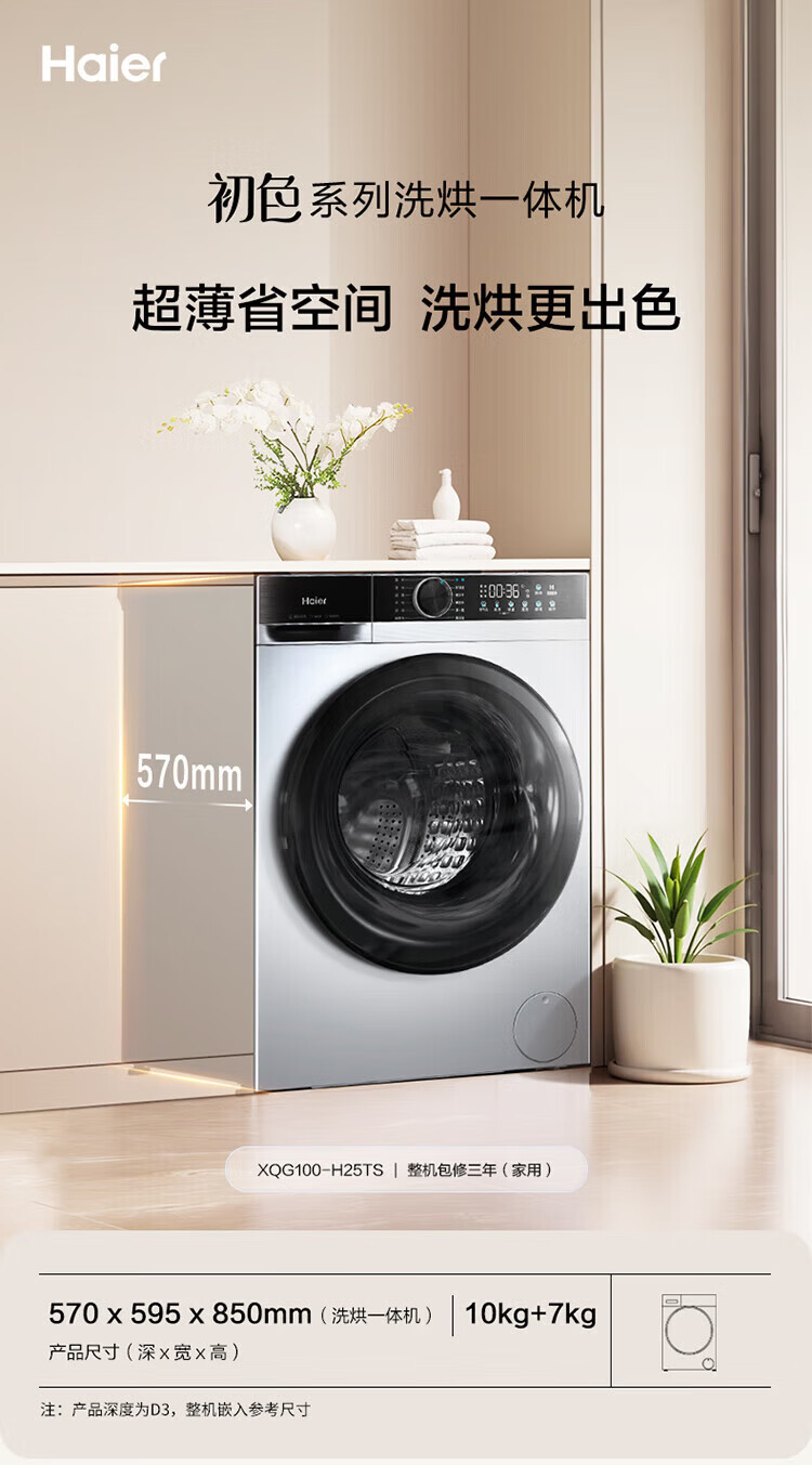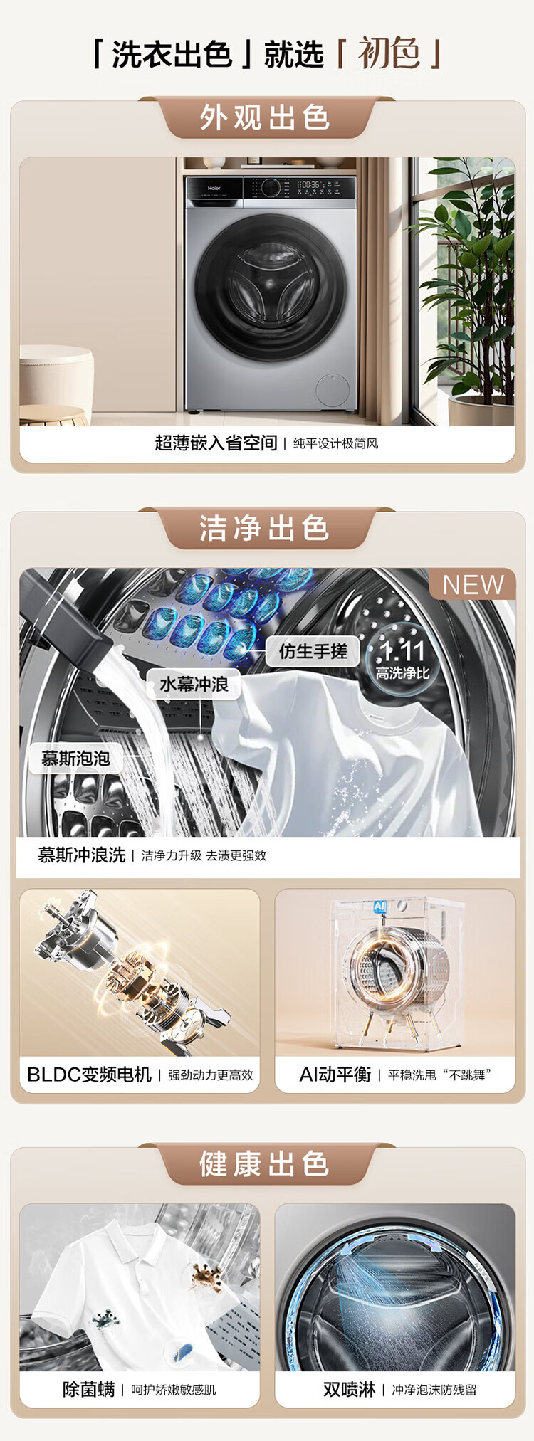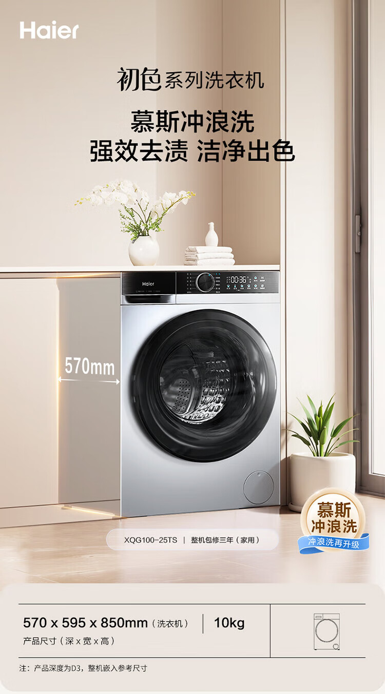 海尔(Haier)初色 滚筒洗衣机全自动 10公斤懒人超薄家用大容量一级能效冲浪洗 以旧换新家电换新补贴25TS 25TS|10KG 滚筒单洗