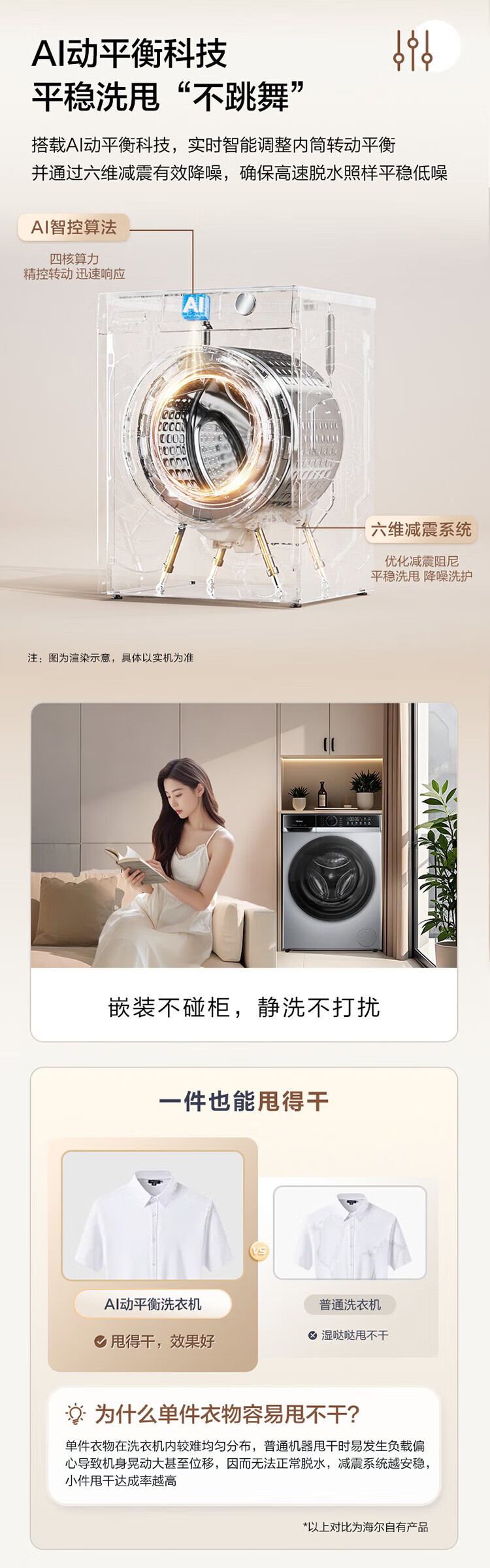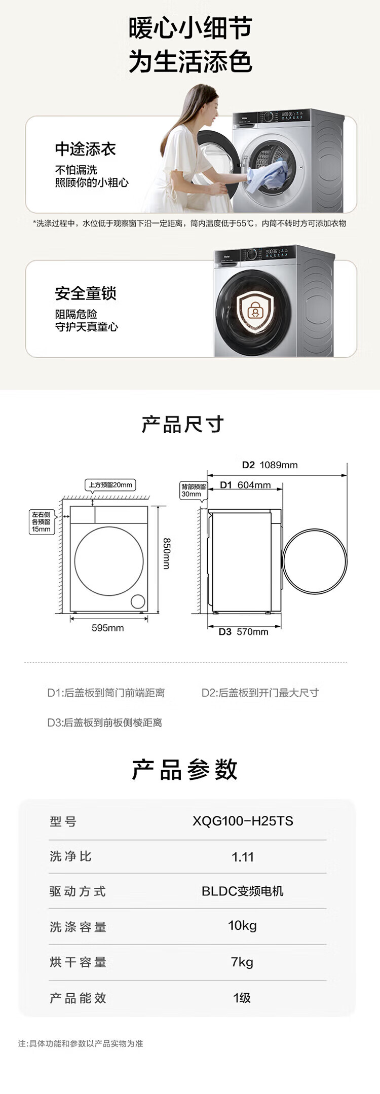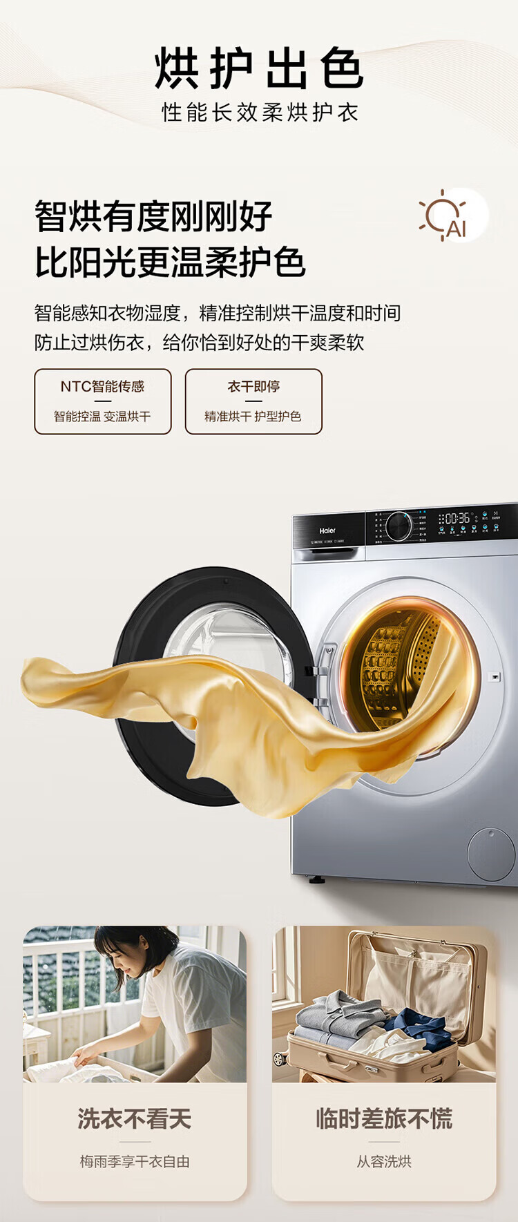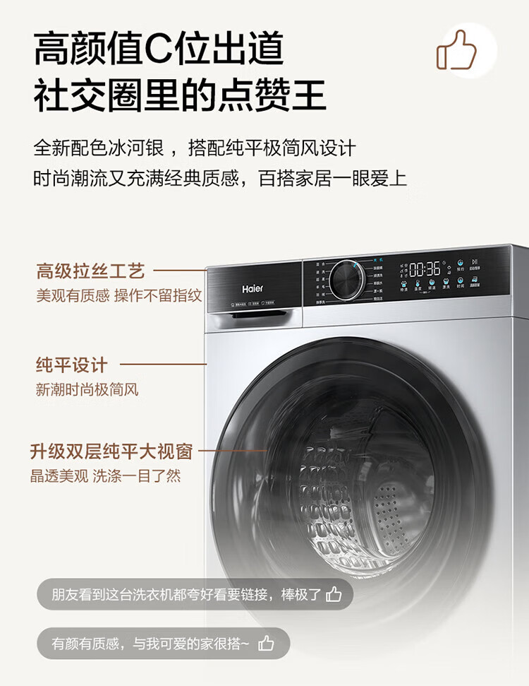 海尔(Haier)初色 滚筒洗衣机全自动 10公斤懒人超薄家用大容量一级能效冲浪洗 以旧换新家电换新补贴25TS 25TS|10KG 滚筒单洗