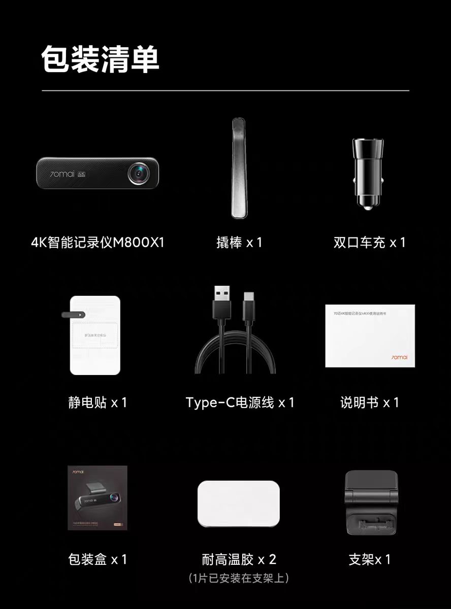 70迈4K超高清行车记录仪M800(顺丰发货)