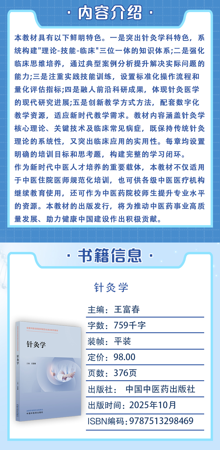 书名:针灸学 全国中医住院医师规范化培训系列教材