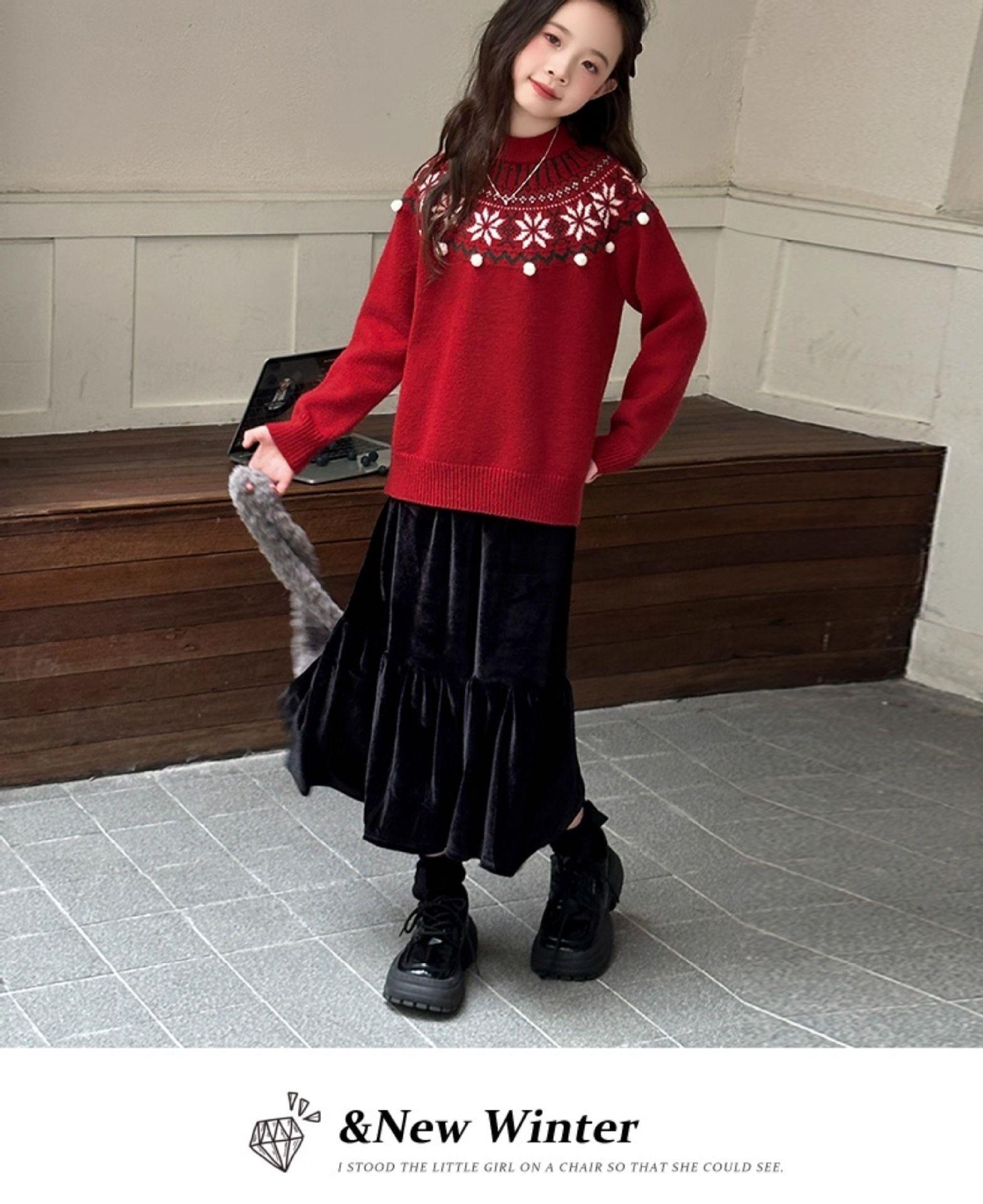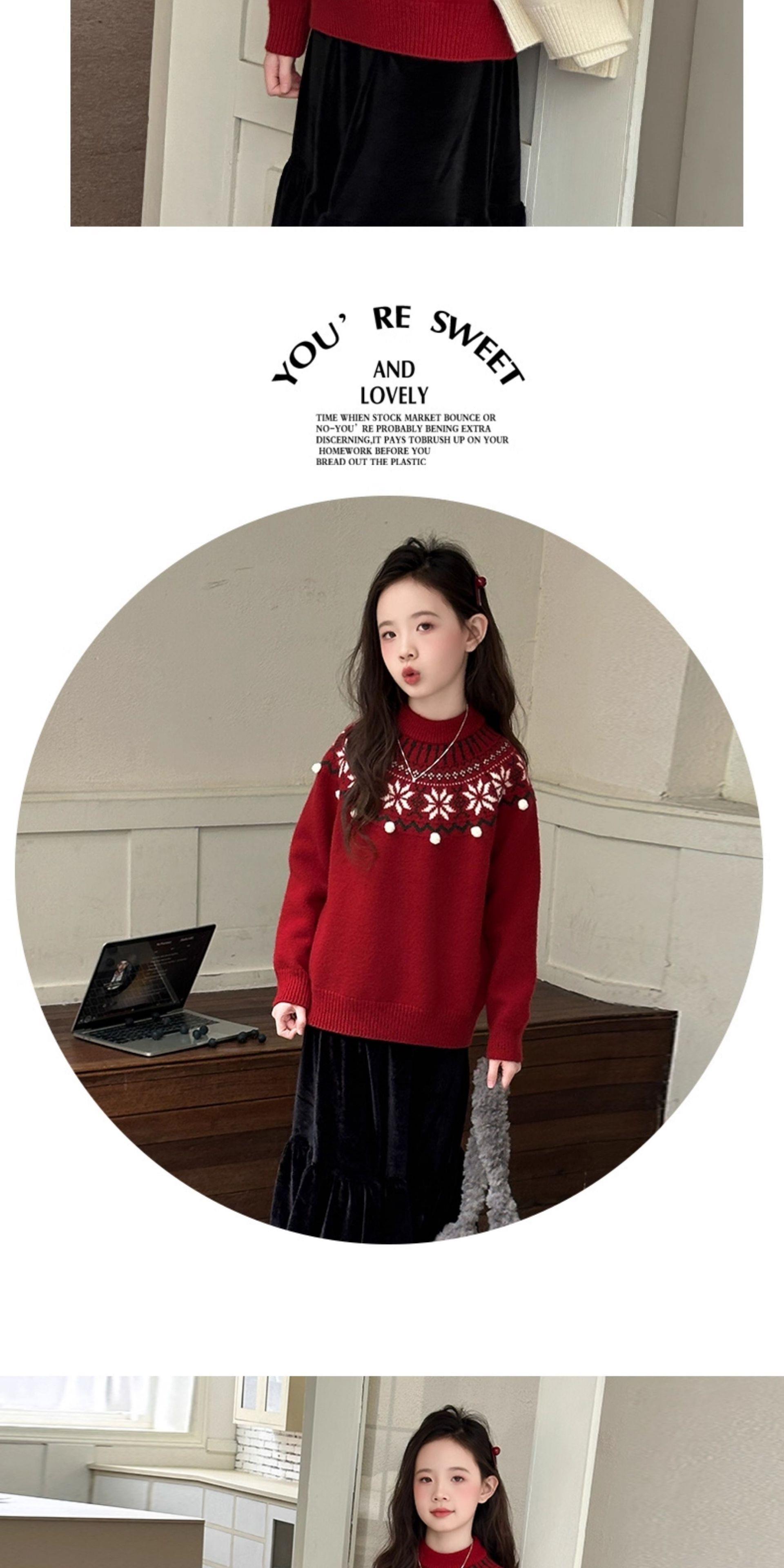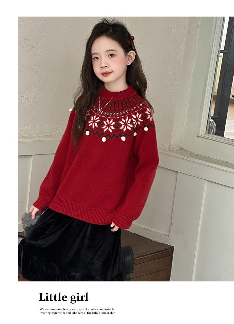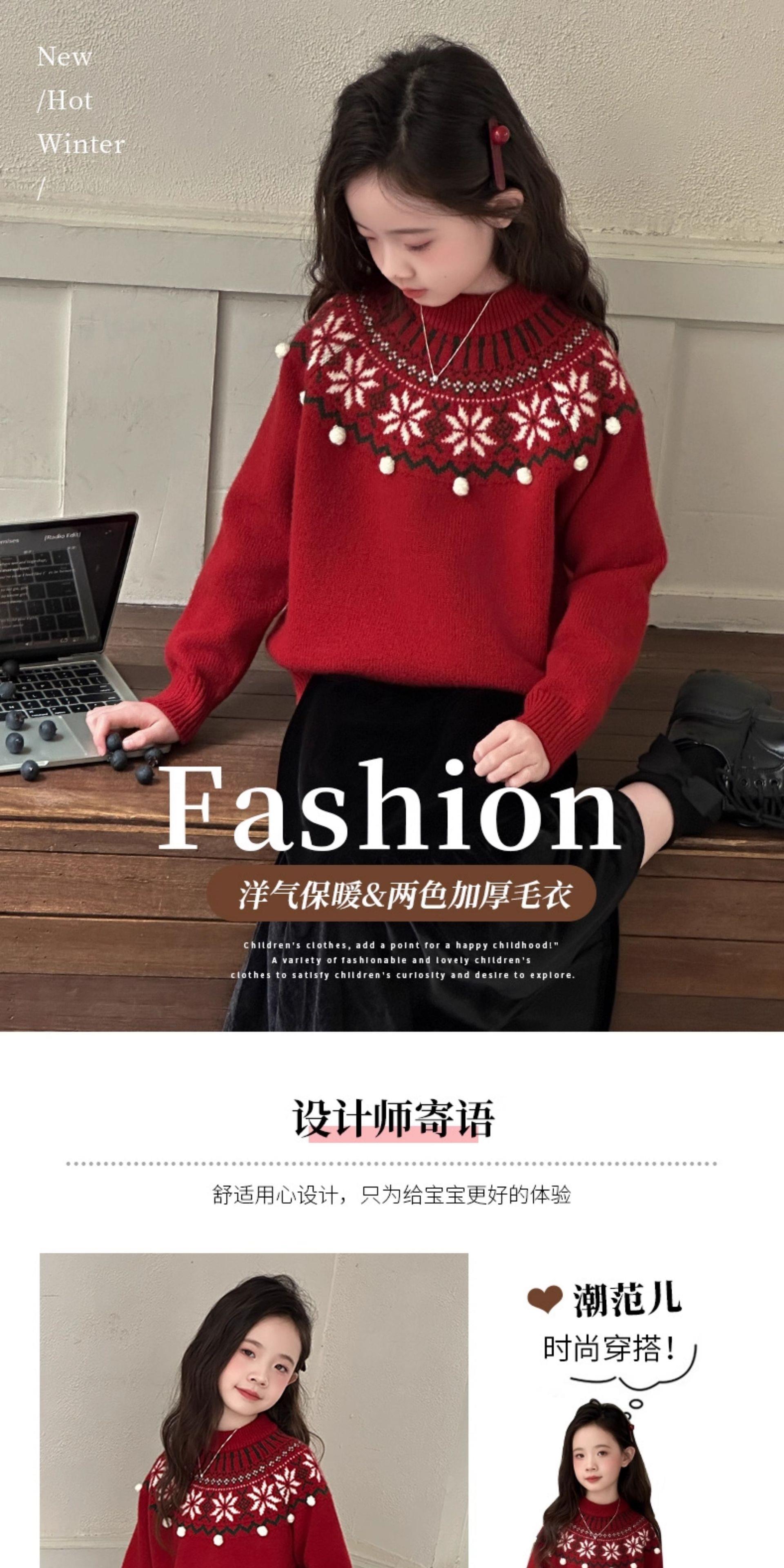 女童毛衣秋冬新款儿童圆领红色打底衫中大童百搭保暖套头针织衫潮
