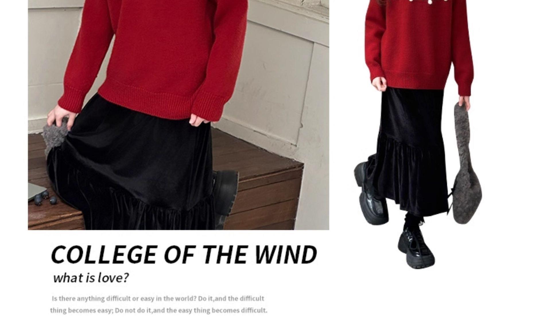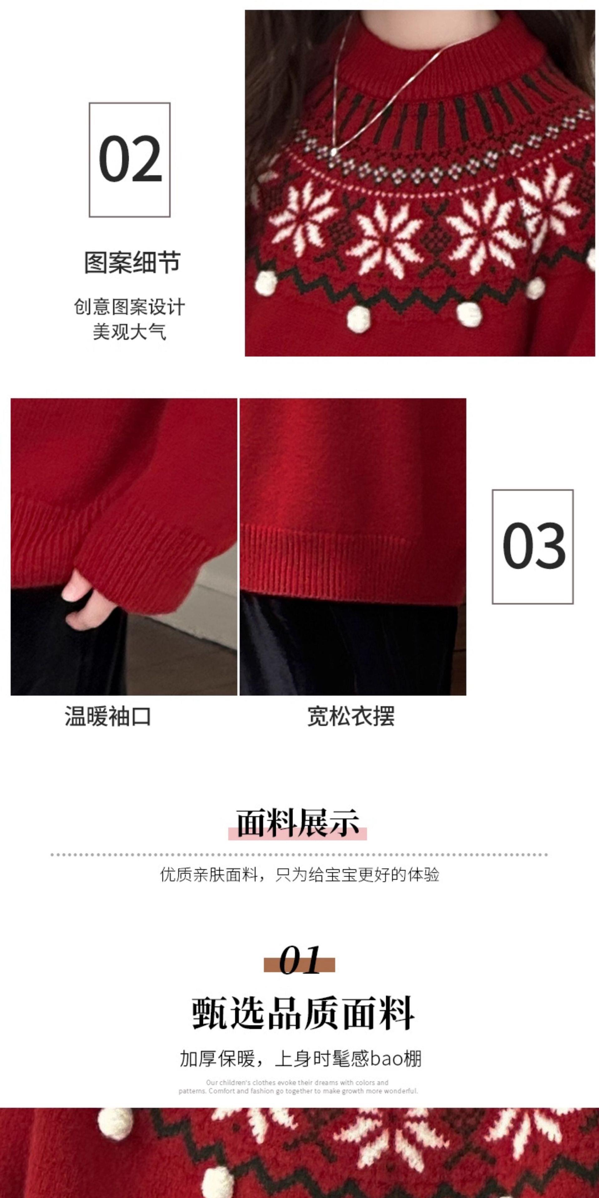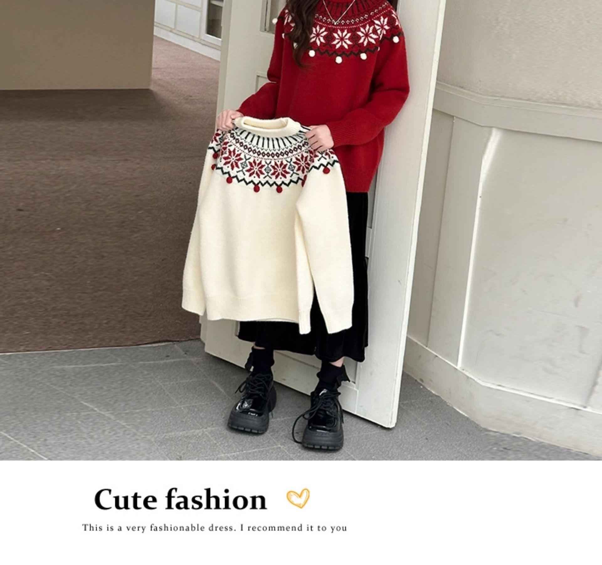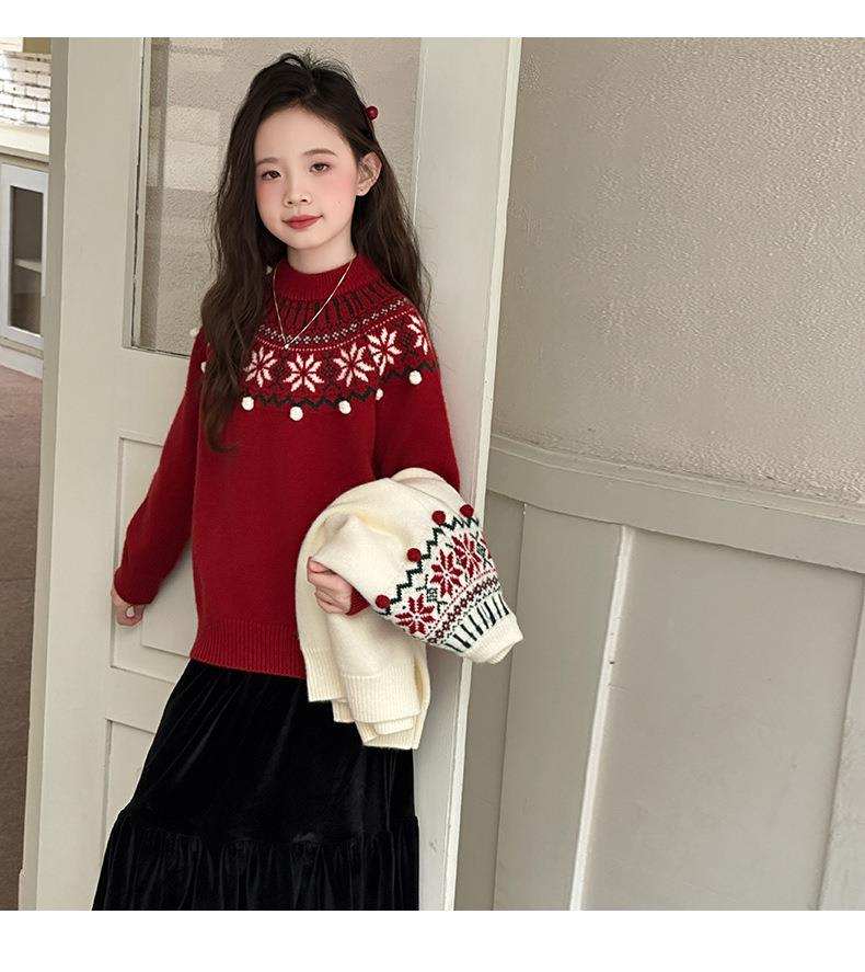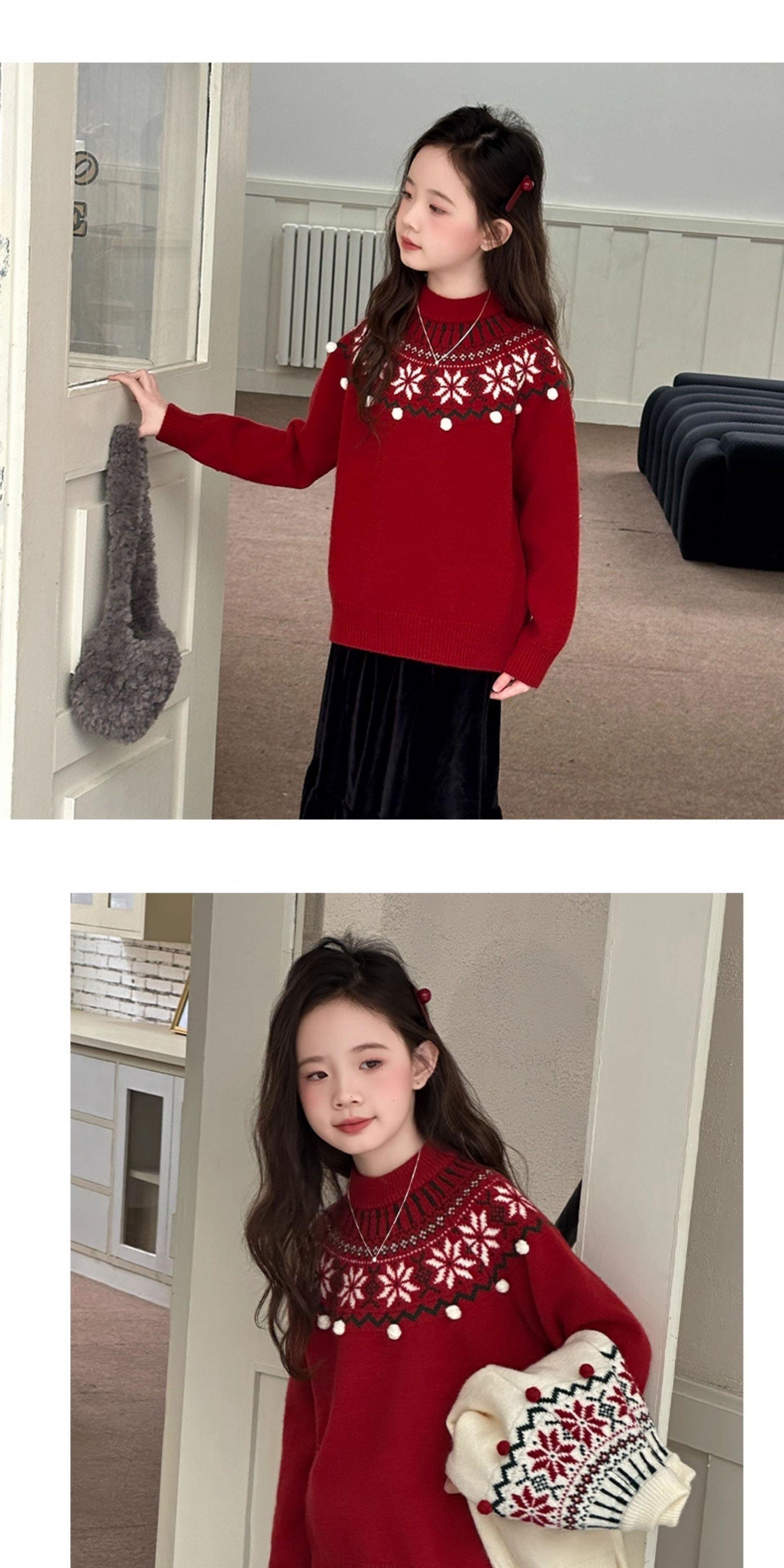 女童毛衣秋冬新款儿童圆领红色打底衫中大童百搭保暖套头针织衫潮