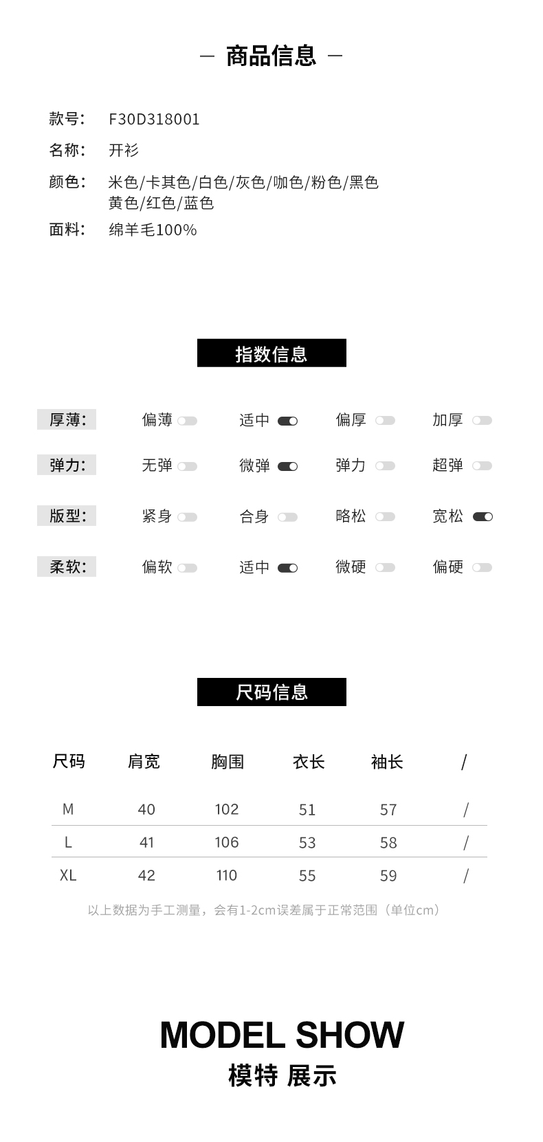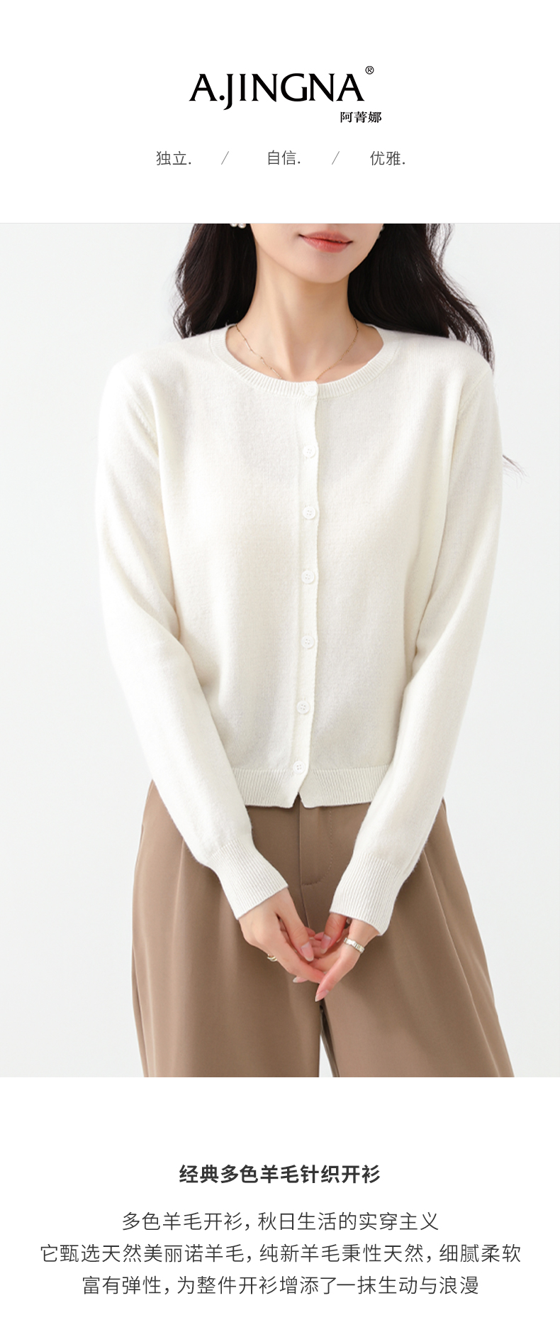 【经典多色】阿菁娜经典多色羊毛针织开衫F30D318001