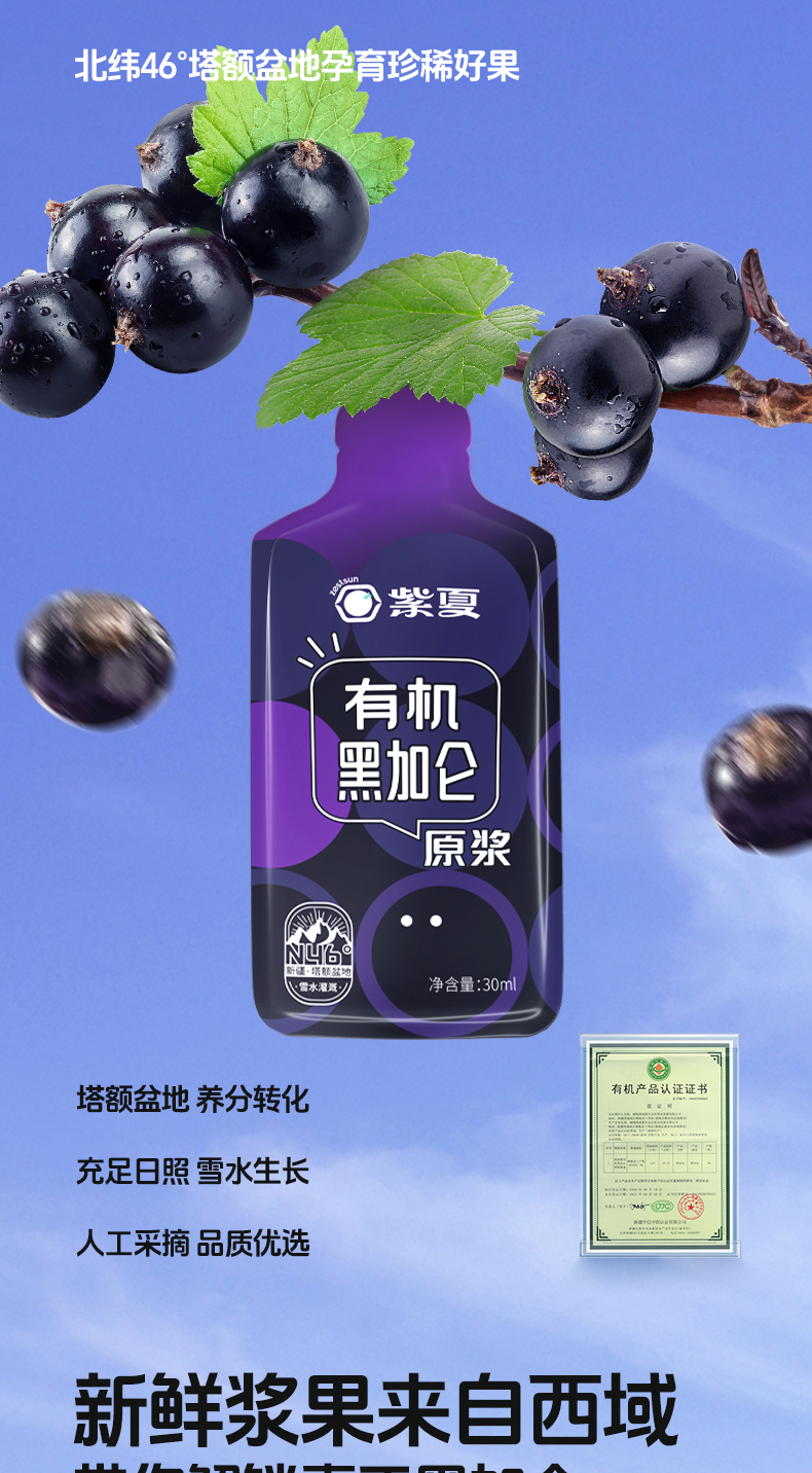 紫夏有机黑加仑原浆饮品300ml/盒