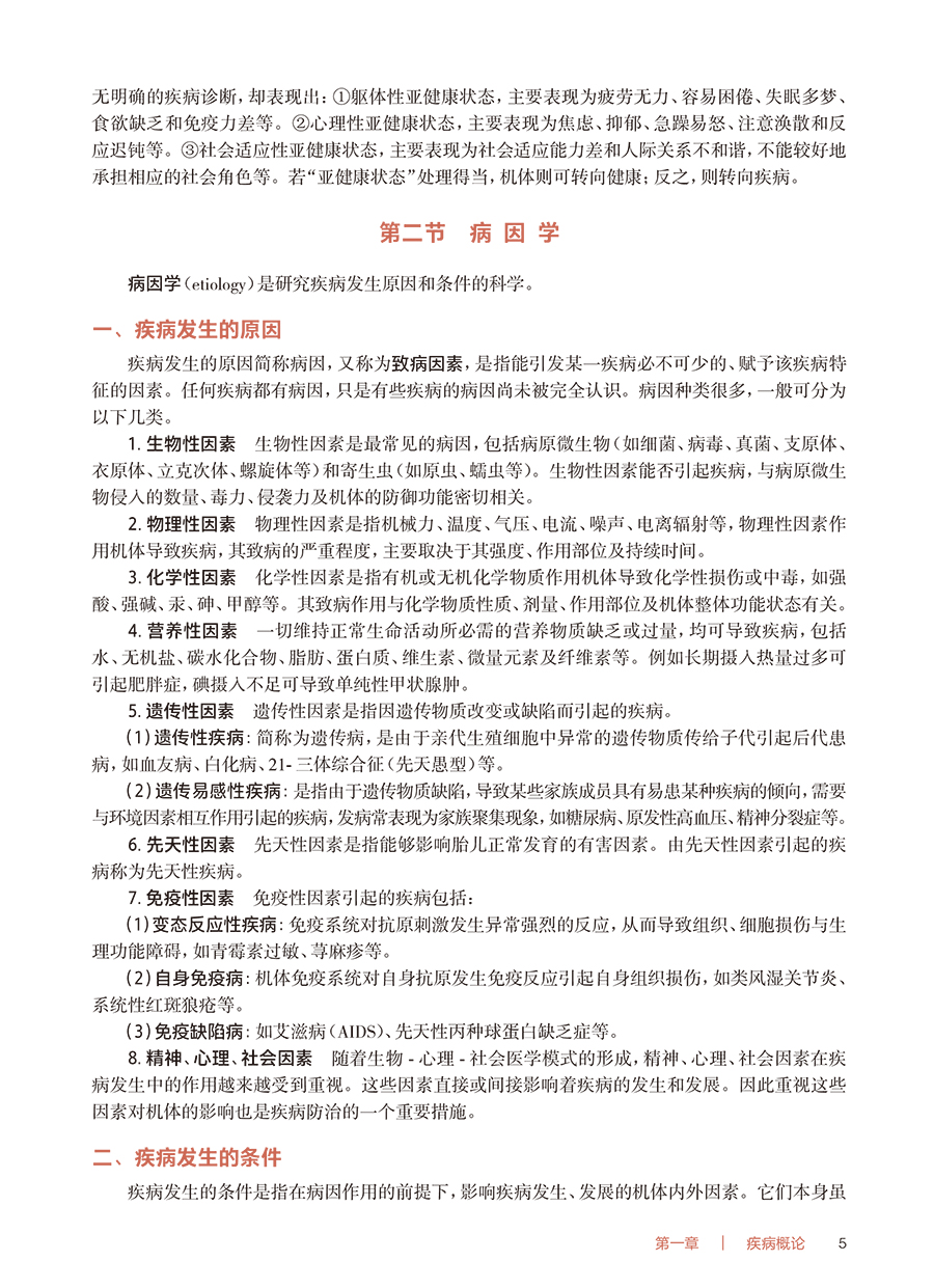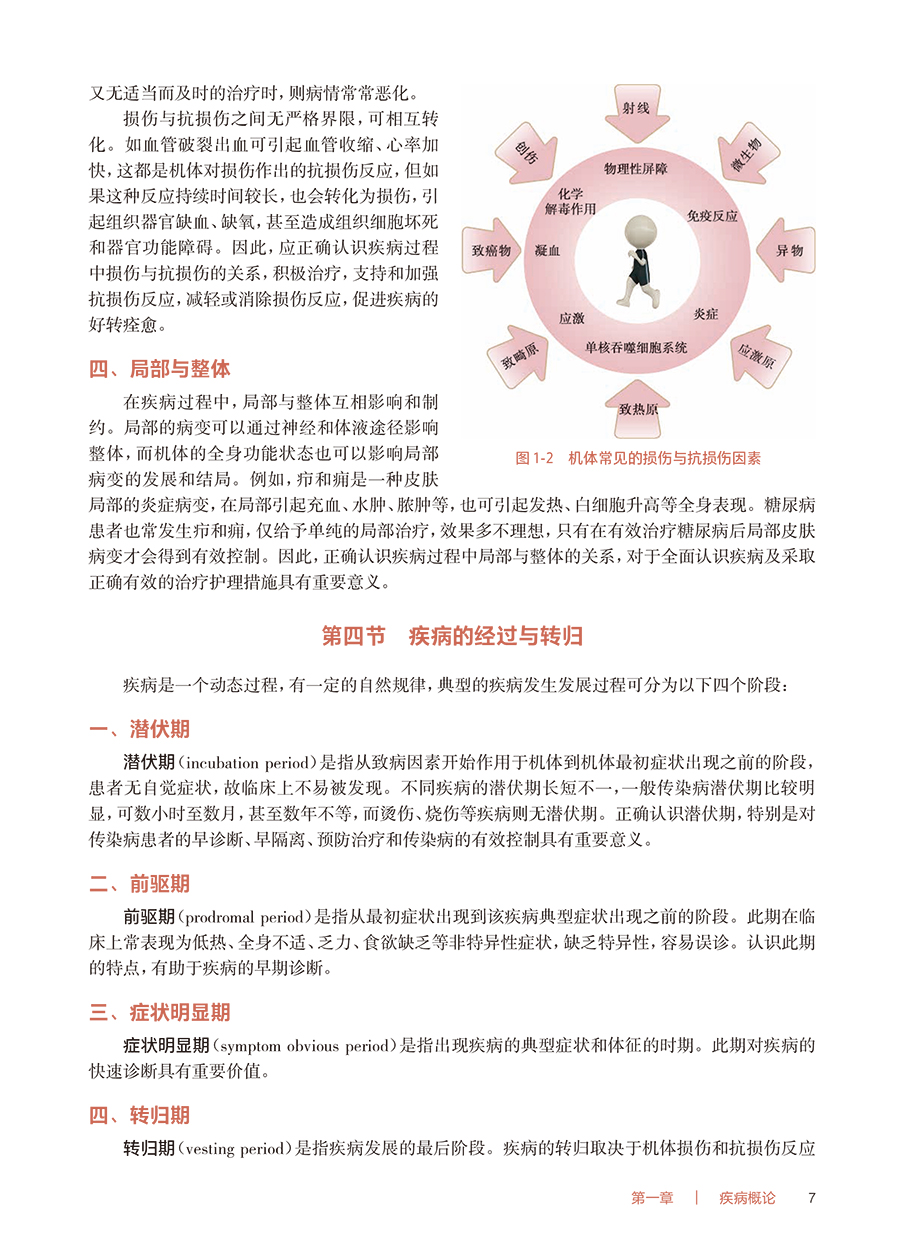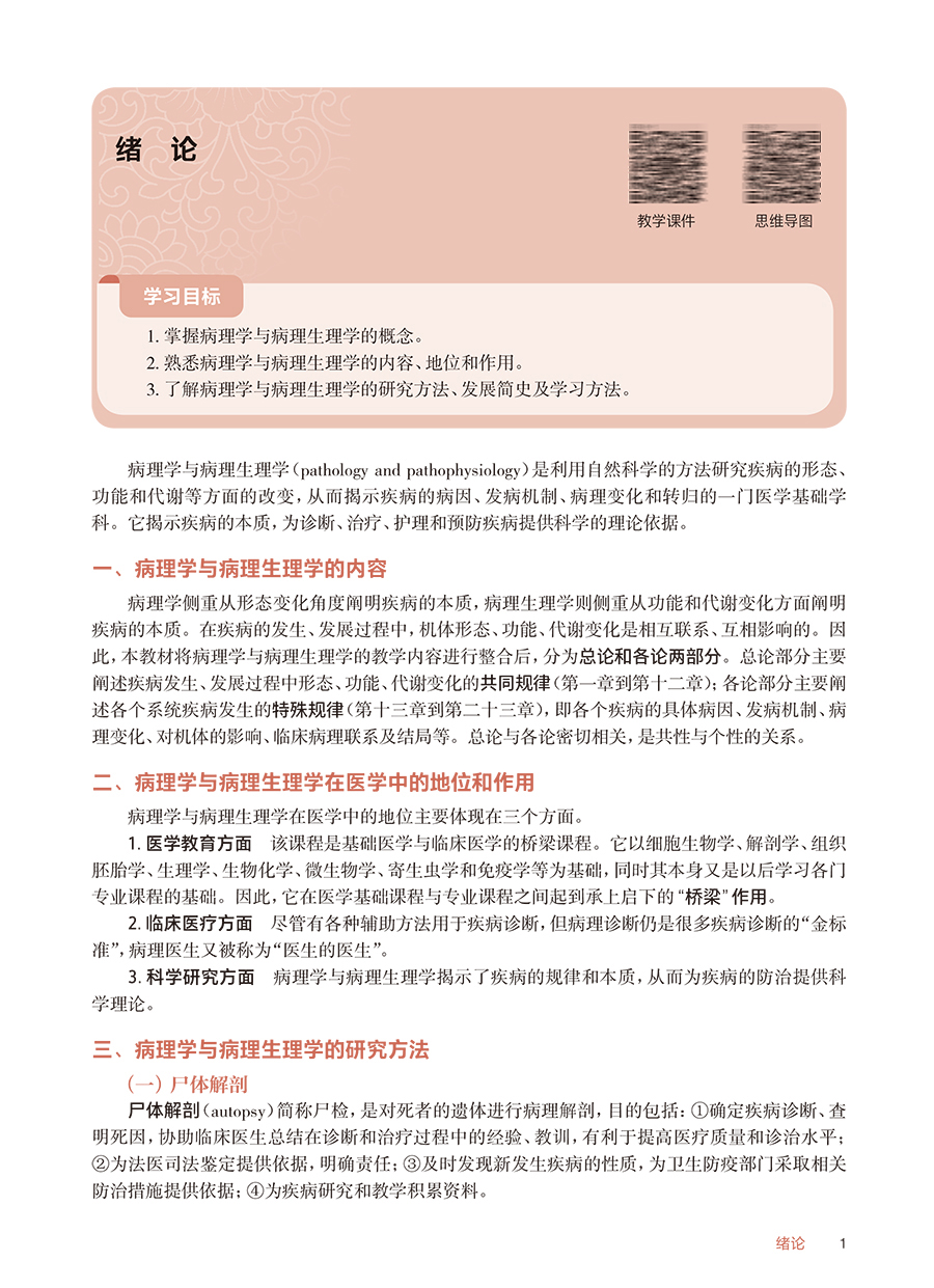 绪论/1 一、病理学与病理生理学的内容/1 二、病理学与病理生理学在医学中的地位和 作用/1 三、病理学与病理生理学的研究方法/1 四、病理学与病理生理学的学习方法/3 第一章疾病概论/4 第一节健康与疾病/4 一、健康/4 二、疾病/4 三、亚健康/4 第二节病因学/5 一、疾病发生的原因/5 二、疾病发生的条件/5 第三节发病学/6 一、自稳调节紊乱/6 二、因果转化/6 三、损伤与抗损伤/6 四、局部与整体/7 第四节疾病的经过与转归/7 一、潜伏期/7 二、前驱期/7 三、症状明显期/7 四、转归期/7 第二章应激/9 第一节概述/9 一、应激/9 二、应激原/10 第二节应激的基本表现/10 一、神经内分泌反应/10 二、细胞体液反应/11 三、机体的代谢和功能变化/12 第三节应激与疾病/13 一、应激性溃疡/13 二、免疫功能障碍/13 三、心血管疾病/13 四、心理、精神障碍/13 第四节应激的防护原则/14 一、预防原则/14 二、护理原则/14 第三章缺氧/15 第一节常用的血氧指标及其意义/15 第二节缺氧的原因及类型/16 一、低张性缺氧/16 二、血液性缺氧/17 三、循环性缺氧/18 四、组织性缺氧/18 第三节缺氧时机体的功能及代谢变化/19 一、呼吸系统的变化/19 二、循环系统的变化/19 三、中枢神经系统的变化/20 四、血液系统的变化/20 五、组织细胞的变化/20 第四节影响机体对缺氧耐受性的因素/21 第五节防护原则/21 第四章细胞、组织的适应、损伤与修复/22 第一节细胞、组织的适应/22 一、萎缩/23 二、肥大/24 三、增生/25 四、化生/25 第二节细胞、组织的损伤/26 一、可逆性损伤/26 二、不可逆性损伤/28 第三节损伤的修复/32 一、再生/32 二、纤维性修复/34 三、创伤愈合/36 四、影响再生修复的因素/37 第四节防护原则/38 第五章局部血液循环障碍/39 第一节充血和淤血/39 一、充血/39 二、淤血/40 第二节出血/42 一、原因和类型/42 二、病理变化/43 三、后果及结局/43 第三节血栓形成/43 一、血栓形成的原因、条件及机制/43 二、血栓形成的过程及血栓的形态/44 三、血栓的结局/45 四、血栓对机体的影响/46 第四节栓塞/47 一、栓子运行途径/47 二、栓塞的类型及其对机体的影响/47 第五节梗死/49 一、梗死的原因和条件/49 二、梗死的病理变化及类型/50 三、梗死对机体的影响及结局/52 第六节防护原则/52 第六章水、电解质代谢紊乱/54 第一节水、钠代谢紊乱/54 一、脱水/55 二、水肿/57 三、水中毒/58 第二节钾代谢紊乱/58 一、低钾血症/59 二、高钾血症/60 第三节防护原则/61 第七章酸碱平衡紊乱/62 第一节概述/62 一、机体中酸碱物质的来源/62 二、机体对酸碱平衡的调节/63 第二节酸碱平衡的常用指标及其意义/64 一、酸碱度(pH)/64 二、动脉血CO2分压/64 三、标准碳酸氢盐和实际碳酸氢盐/65 四、缓冲碱/65 五、碱剩余/65 六、阴离子间隙/65 第三节单纯型酸碱平衡紊乱/66 一、代谢性酸中毒/66 二、呼吸性酸中毒/68 三、代谢性碱中毒/70 四、呼吸性碱中毒/71 第四节混合型酸碱平衡紊乱/71 一、酸碱一致型酸碱平衡紊乱/72 二、酸碱混合型酸碱平衡紊乱/72 三、三重混合型酸碱平衡紊乱/72 第五节防护原则/72 第八章发热/73 第一节发热的原因和机制/74 一、发热的原因/74 二、发热的机制/75 第二节发热的分期/76 一、体温上升期/76 二、高温持续期/76 三、体温下降期/76 第三节发热时机体的代谢和功能变化/76 一、代谢变化/76 二、功能变化/77 第四节防护原则/77 第九章炎症/79 第一节炎症的原因/79 第二节炎症的基本病理变化/80 一、变质/80 二、渗出/81 三、增生/85 第三节炎症的局部表现和全身反应/85 一、炎症的局部表现/85 二、炎症的全身反应/86 第四节炎症的类型及病理变化/87 一、炎症的临床类型/87 二、炎症的病理类型/87 第五节炎症的结局/93 一、痊愈/93 二、迁延不愈/93 三、蔓延扩散/93 第六节防护原则/94 第十章休克/95 第一节休克的病因与分类/95 一、休克的病因/95 二、休克的分类/96 第二节休克的发展过程与发生机制/96 一、微循环缺血期/97 二、微循环淤血期/98 三、微循环衰竭期/99 第三节休克时机体代谢、细胞损伤和重要器官 功能变化/100 一、机体代谢变化/100 二、细胞损伤/100 三、重要器官功能变化/101 第四节休克的防护原则/101 一、预防原则/101 二、护理原则/101 第十一章弥散性血管内凝血/103 第一节DIC的病因和发生机制/104 一、DIC的病因/104 二、DIC的发生机制/104 第二节影响DIC发生发展的因素/105 一、单核巨噬细胞系统功能障碍/105 二、肝功能严重障碍/105 三、血液的高凝状态/105 四、微循环障碍/105 第三节分期和分型/105 一、分期/105 二、分型/106 第四节临床病理联系/106 一、出血/106 二、休克/107 三、器官功能障碍/107 四、微血管病性溶血性贫血/107 第五节防护原则/107 第十二章肿瘤/109 第一节肿瘤的概念/109 第二节肿瘤的特性/110 一、肿瘤的形态和结构/110 二、肿瘤的异型性/111 三、肿瘤细胞的代谢/112 四、肿瘤的生长/112 五、肿瘤的扩散/113 六、肿瘤的分级和分期/115 第三节肿瘤的命名与分类/115 一、肿瘤的命名/115 二、肿瘤的分类/116 第四节肿瘤对机体的影响/117 一、良性肿瘤对机体的影响/117 二、恶性肿瘤对机体的影响/117 第五节良性肿瘤与恶性肿瘤的区别/117 第六节癌前病变、上皮内瘤变/118 一、癌前病变/118 二、上皮内瘤变/118 第七节肿瘤的病因和发病机制/120 一、肿瘤的病因/120 二、